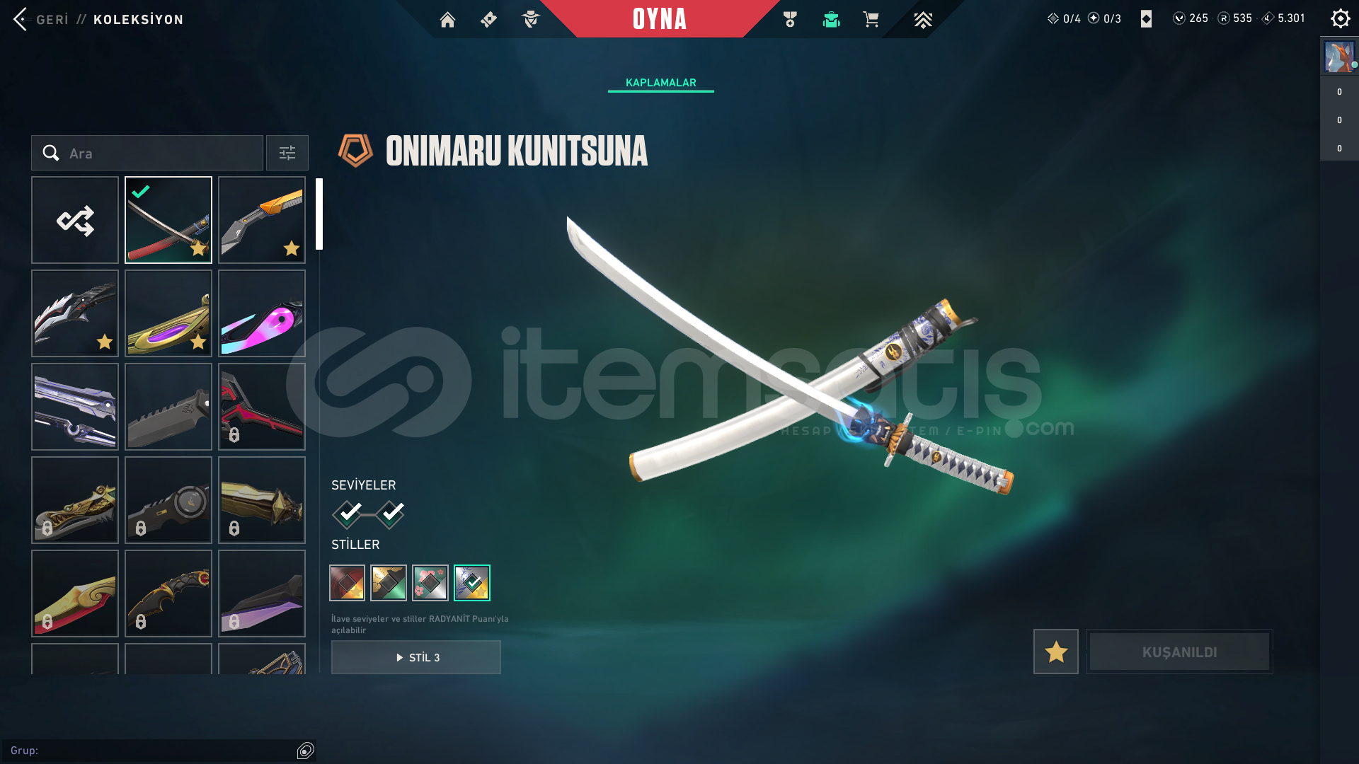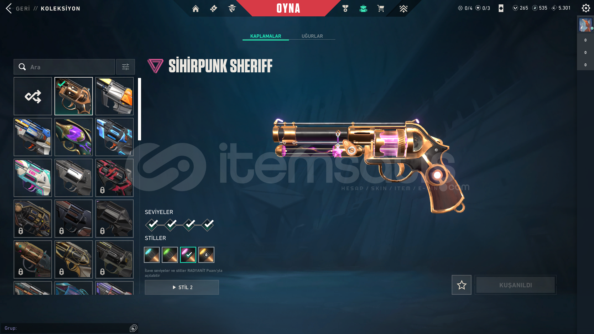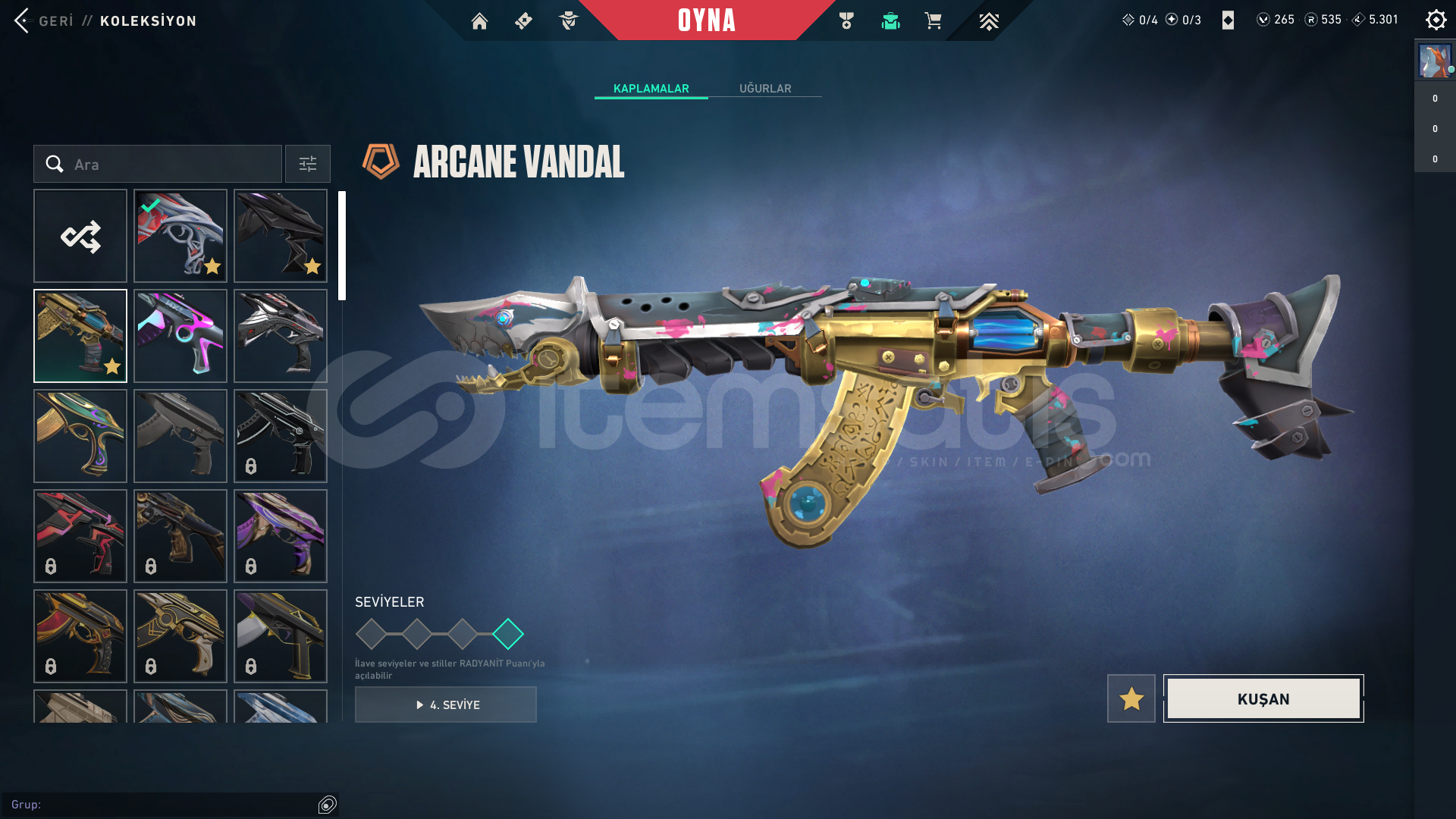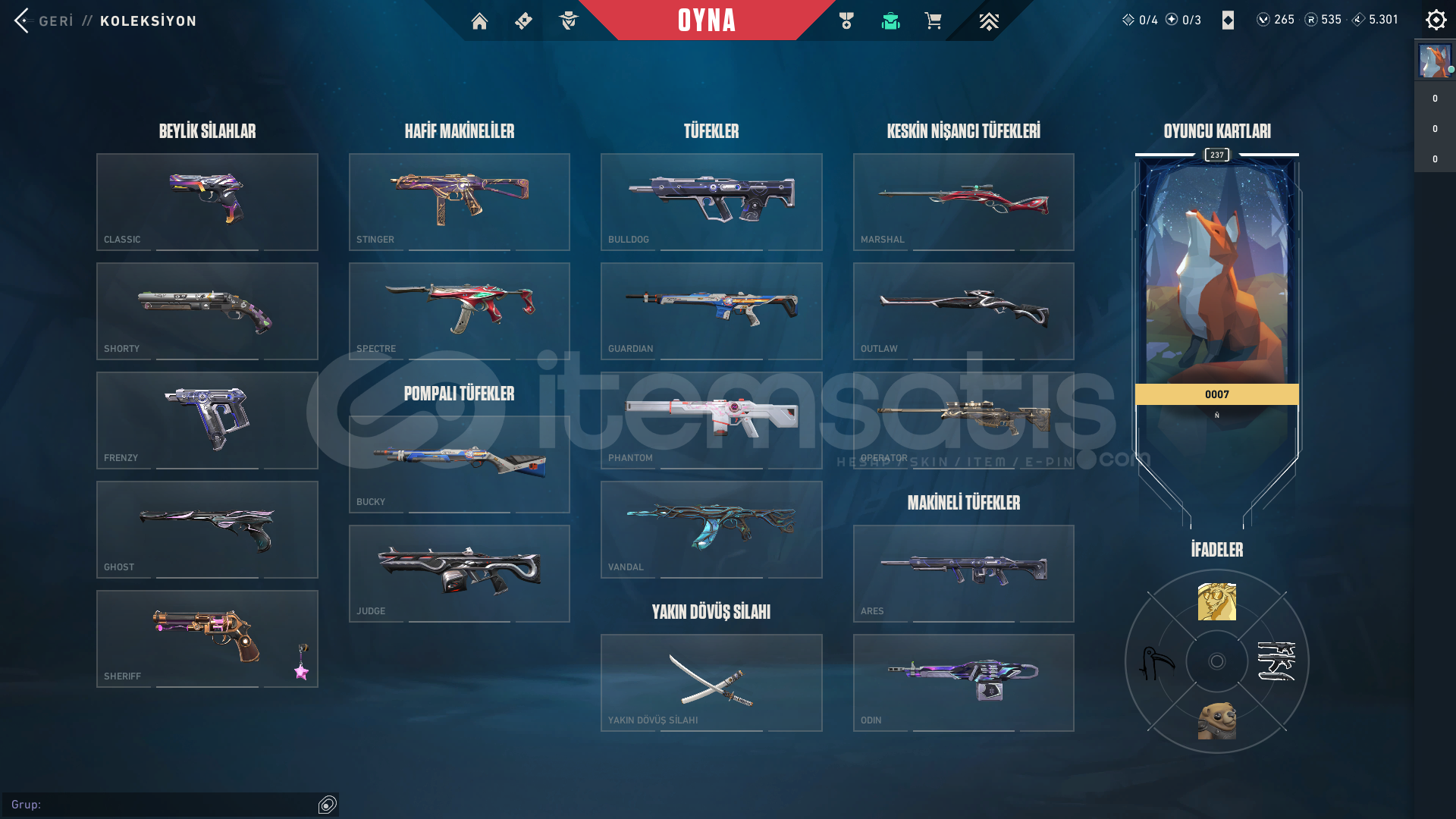 ⭐Realisty Memnuniyetle Sunar!Satın alacağınız ürünle ilgili bilgiler:237 SEVİYE Arcane - Gaia'nın İntikamı - Anomali VANDAL (+3 BP VANDAL)Spectrum PHANTOM (+4 BP PHANTOM)Sihirpunk SHERİFF (+5 BP SHERİFF)Fatih GHOST (+6 BP GHOST)Onimaru Kunitsuna BIÇAK (+5 BP BIÇAK)265 VP - 535 RP mevcut .Özel koleksiyon kartları mevcut.Tüm skin geliştirmeleri ve renkleri açık...