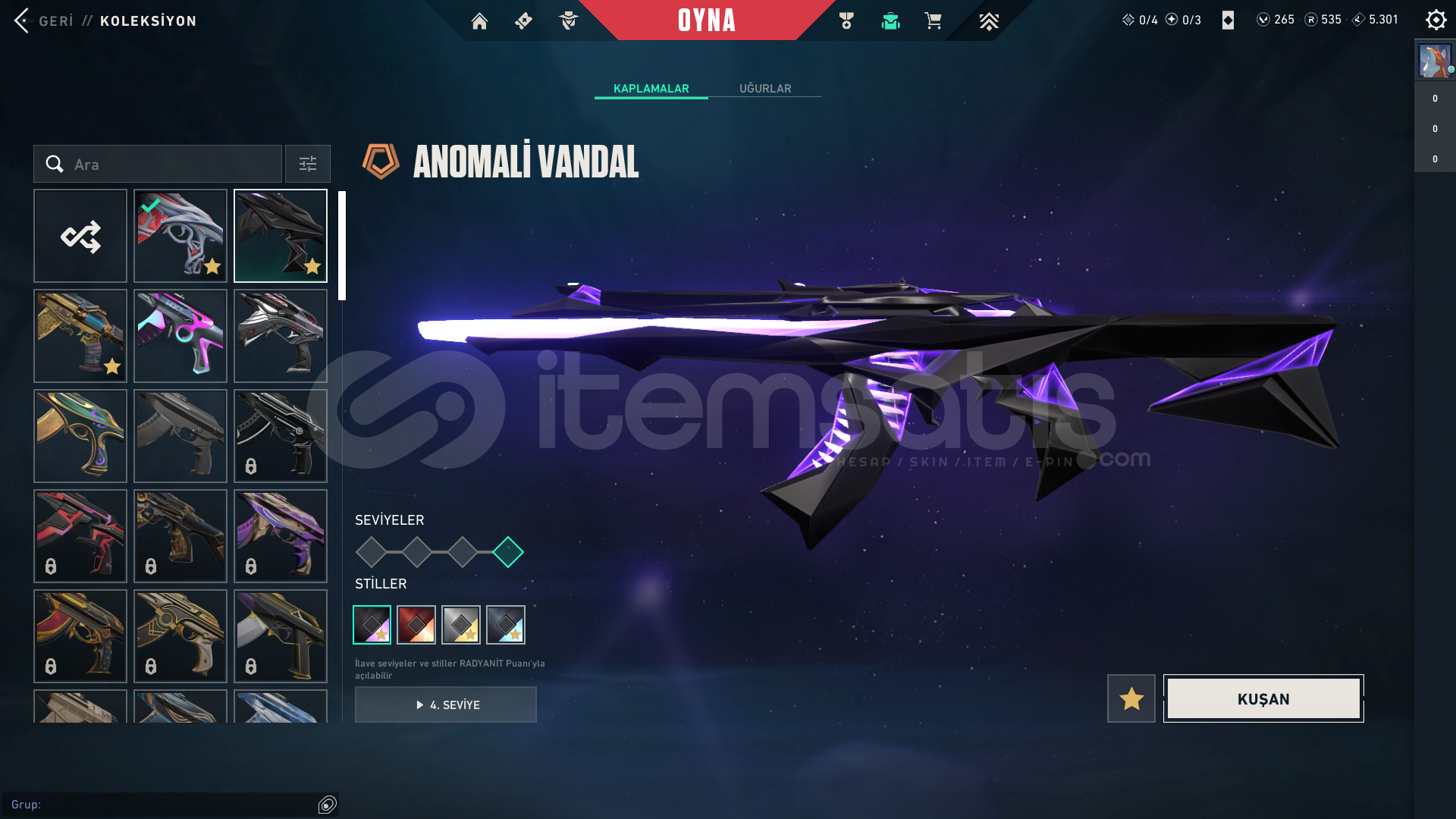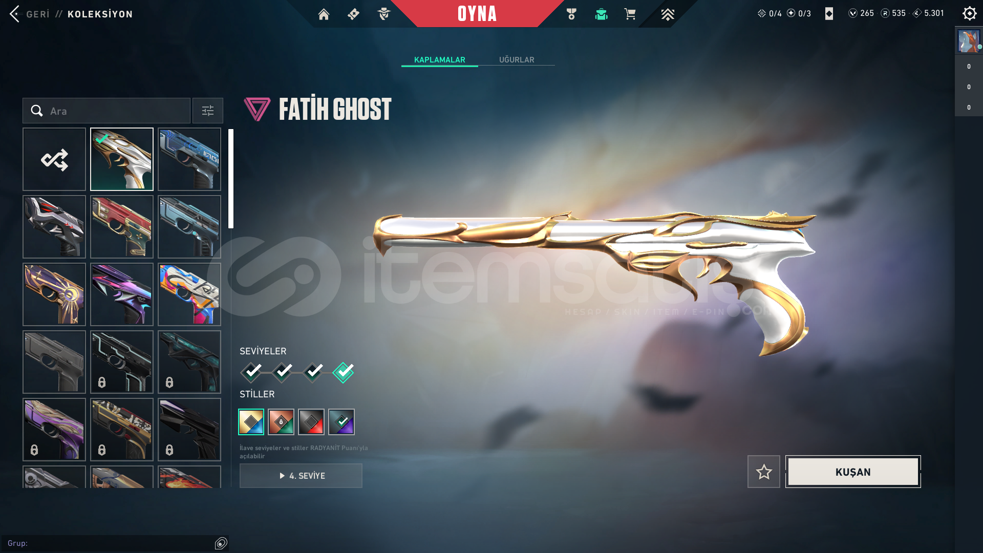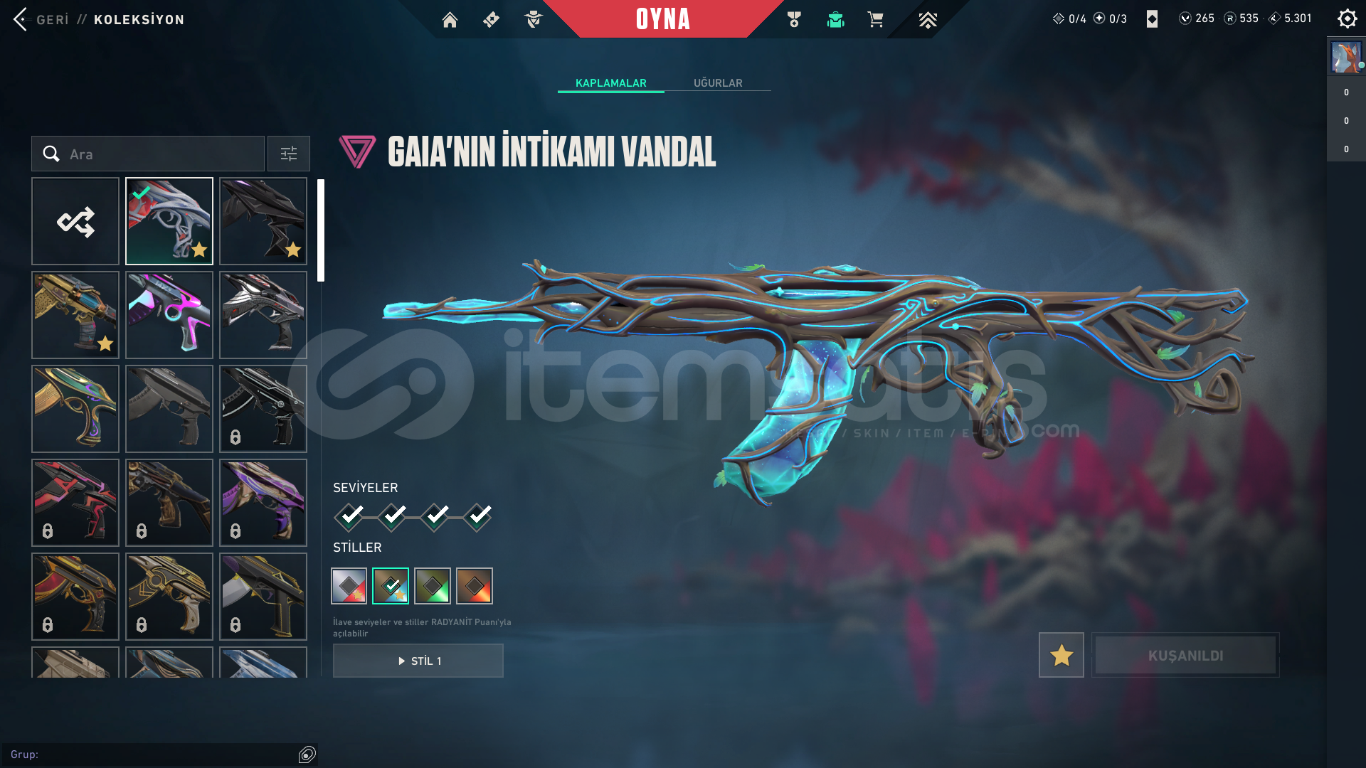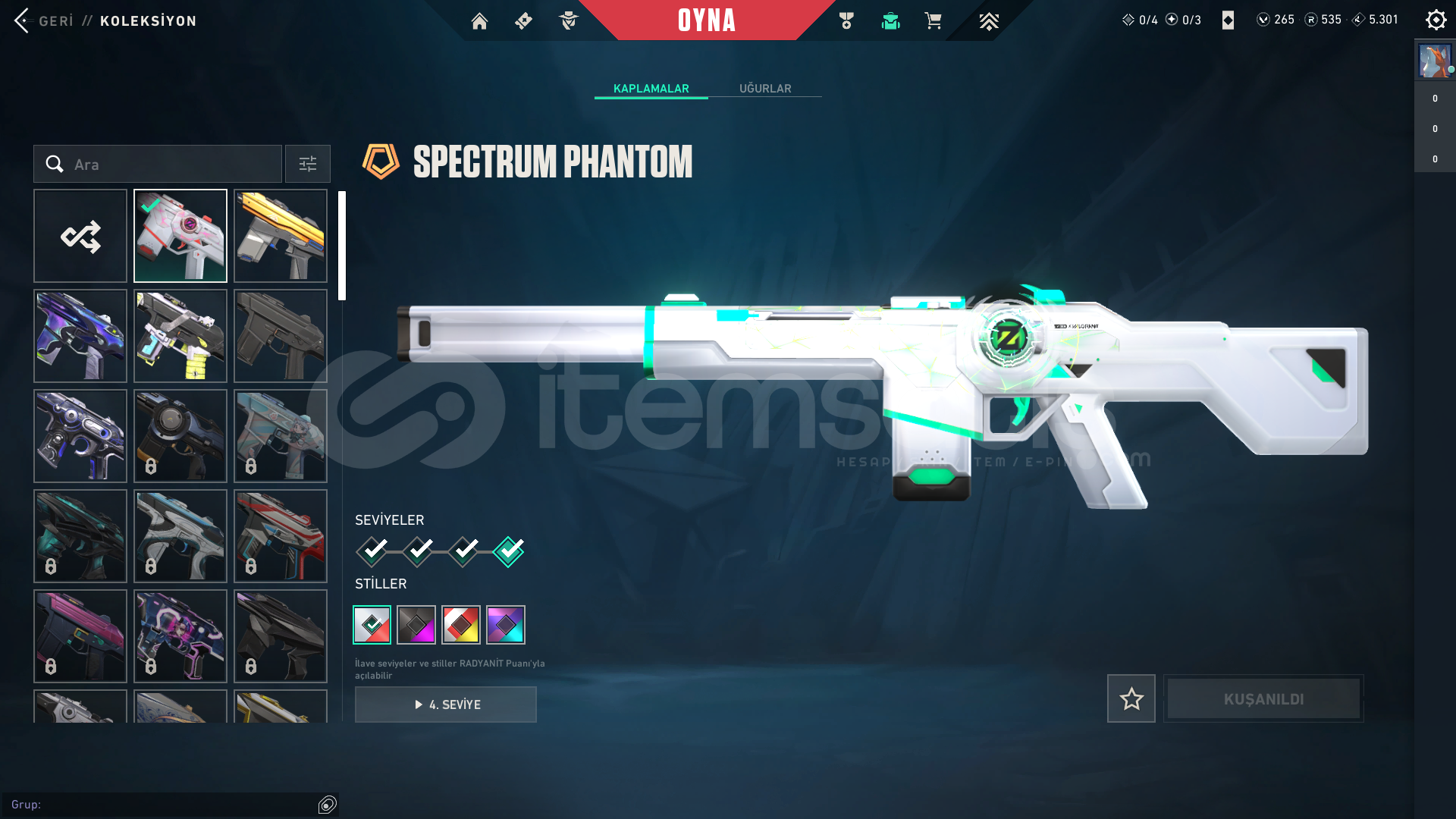 ⭐Realisty Memnuniyetle Sunar!Satın alacağınız ürünle ilgili bilgiler:237 SEVİYE Arcane - Gaia'nın İntikamı - Anomali VANDAL (+3 BP VANDAL)Spectrum PHANTOM (+4 BP PHANTOM)Sihirpunk SHERİFF (+5 BP SHERİFF)Fatih GHOST (+6 BP GHOST)Onimaru Kunitsuna BIÇAK (+5 BP BIÇAK)265 VP - 535 RP mevcut .Özel koleksiyon kartları mevcut.Tüm skin geliştirmeleri ve renkleri açık...