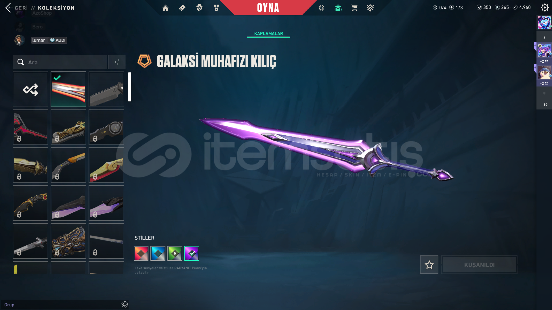 Hesapta hiç karakter skini yoktu sadece kazma vb