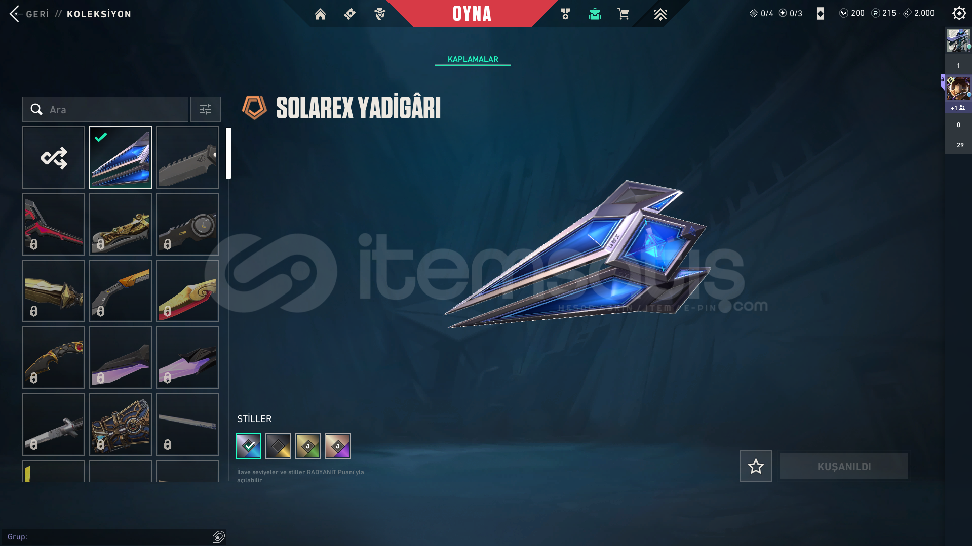 • HESAPTA DEĞERLİ SKİNLER VARDIR