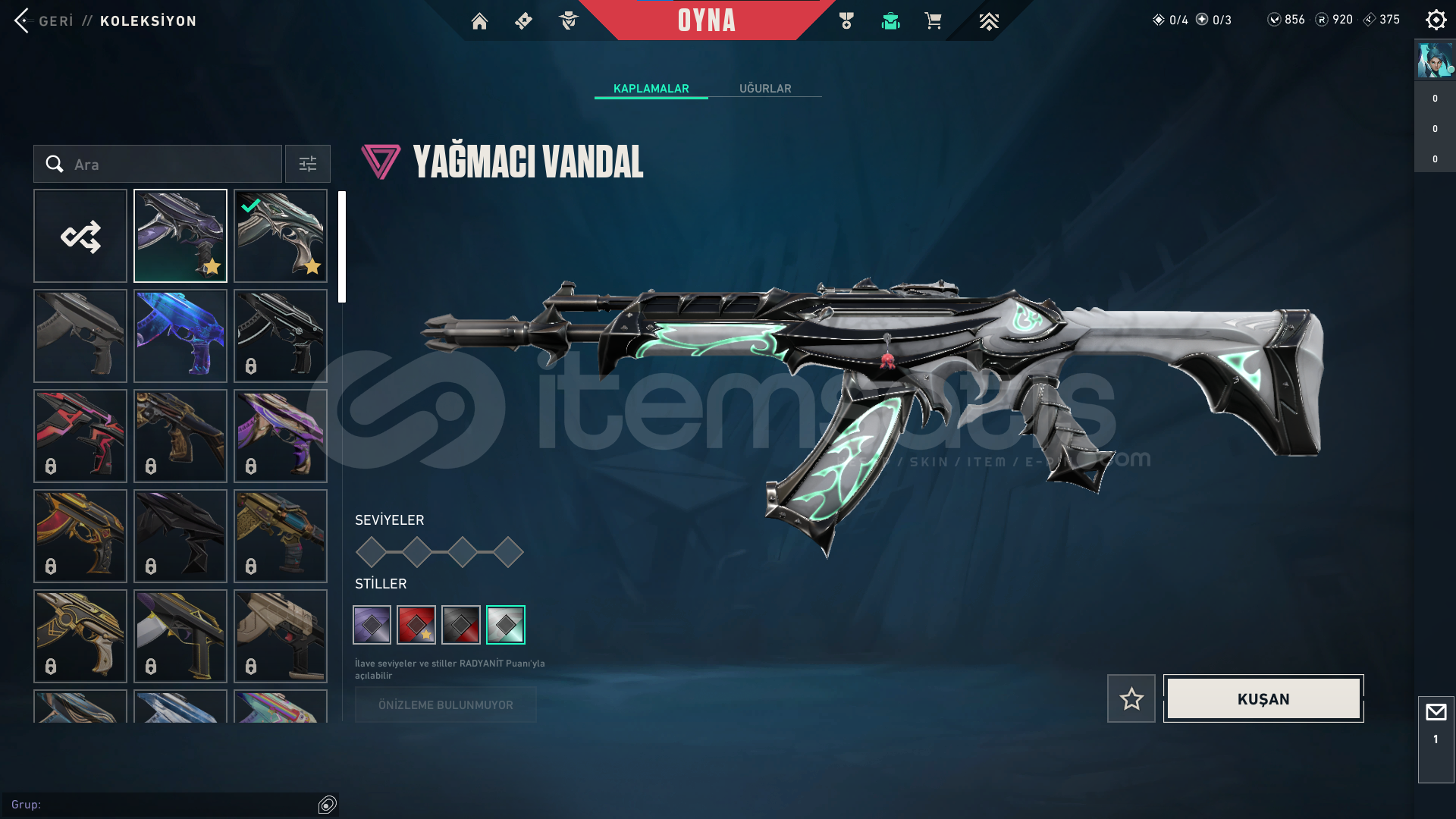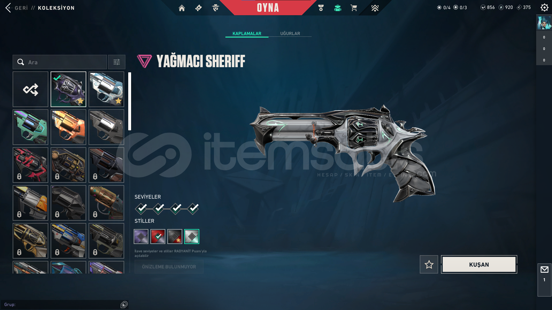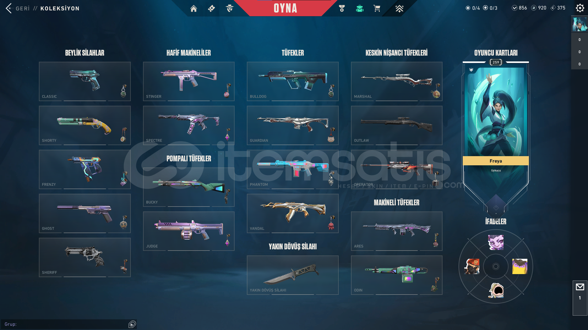 Rank : UnrankedSkin Sayısı : 4+ birsuru bp skinleri.Hesap Seviyesi: 259Vp : 856 (250 tl değerinde) +920 Radyanit.Mail değişecektir.İsim değişme hakkı mevcut.Satın alırken video kaydı alınız. [Önemli]