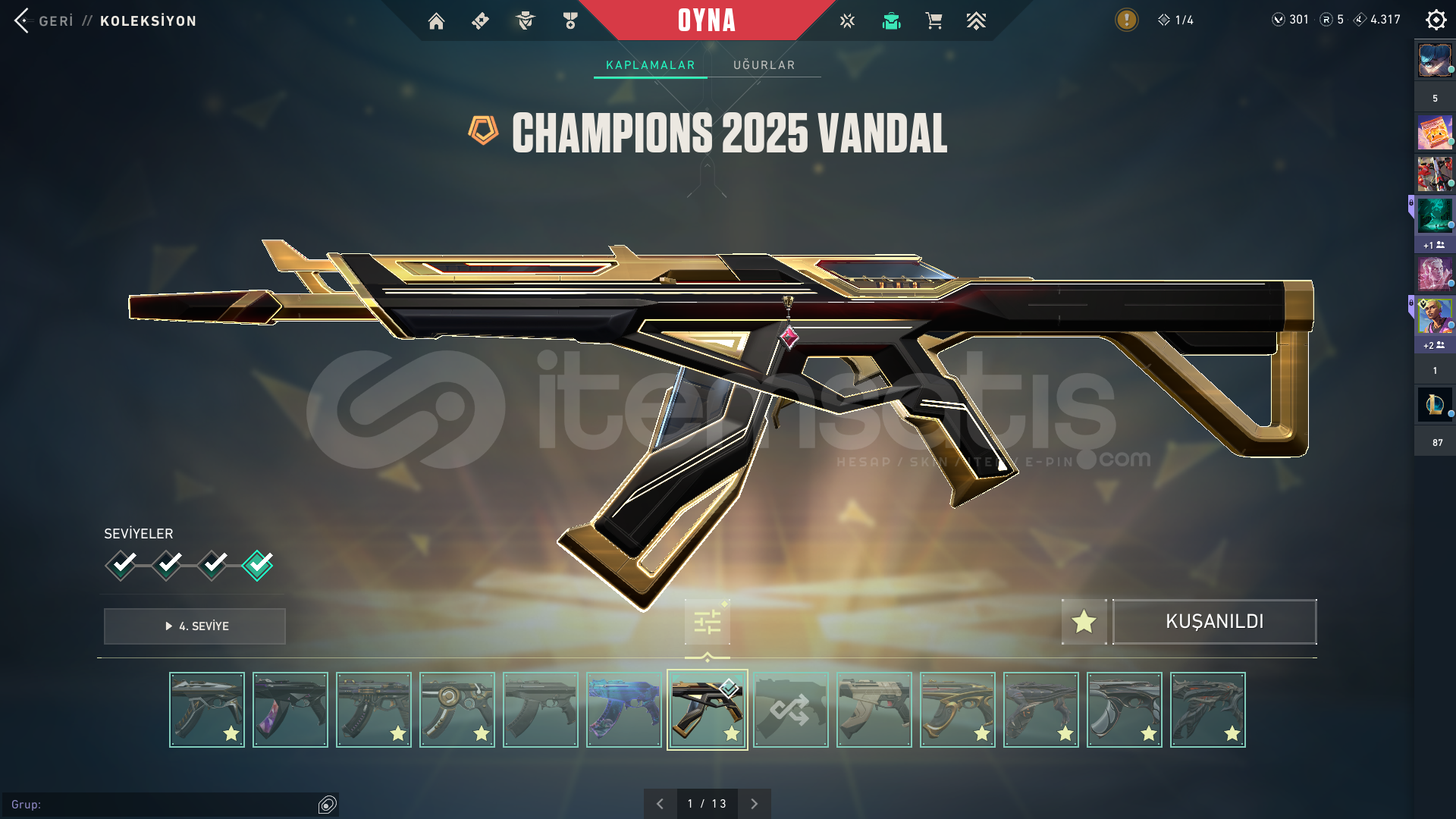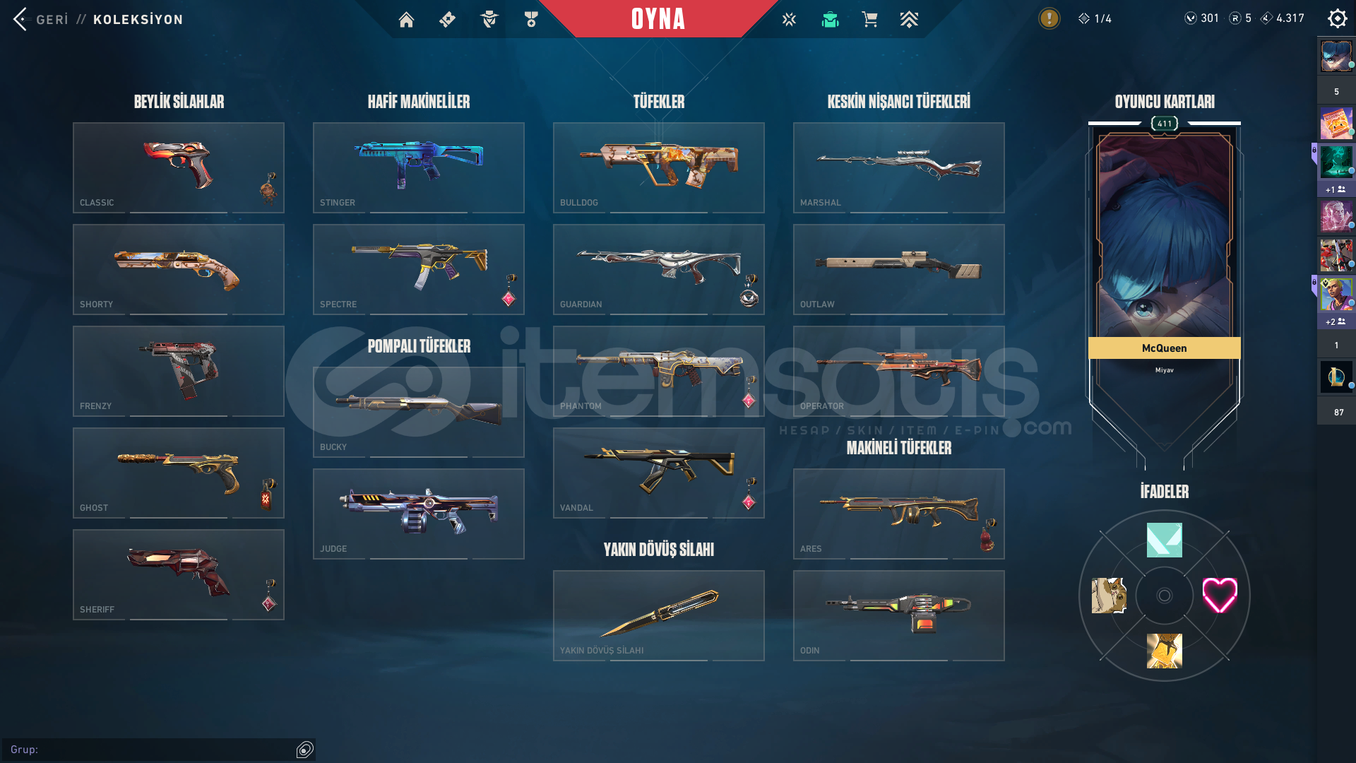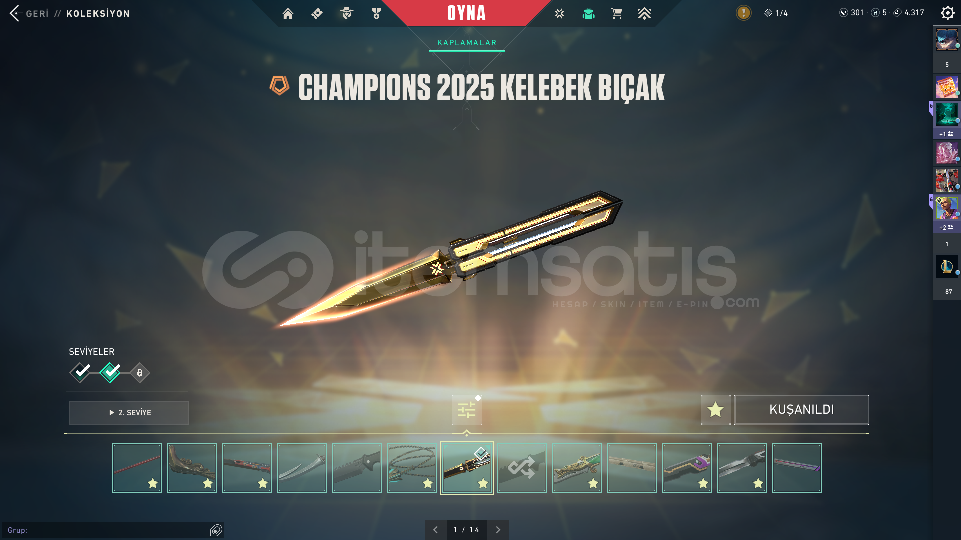 Beta hesabıdır bp bıçakları hariç 9 bıçak var bp vandalları hariç 8 vandal var 2 phantom var geri kalanları kapak fotoğrafında olanlar sezon 3,7,8 de immo bitirmiştir