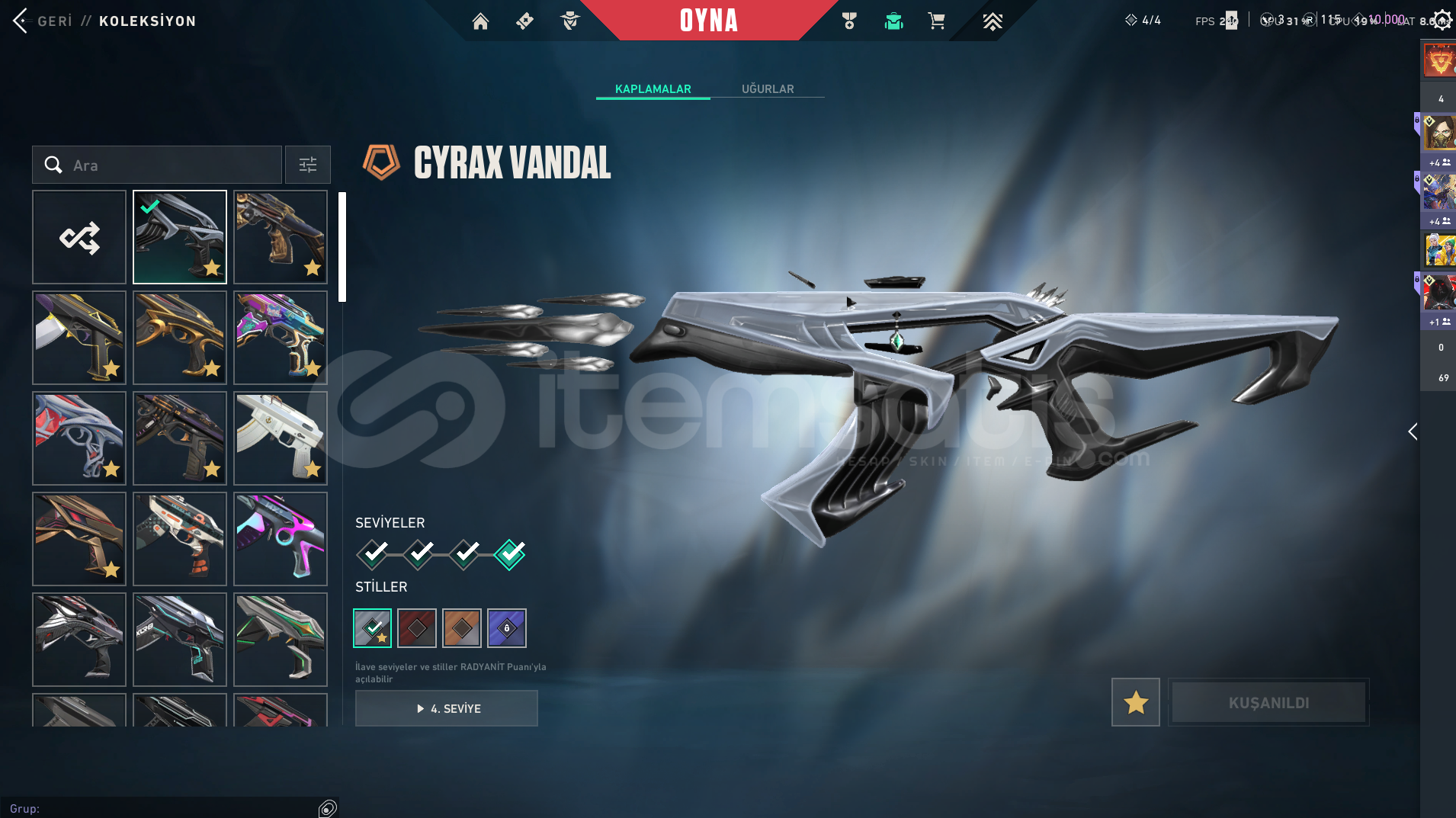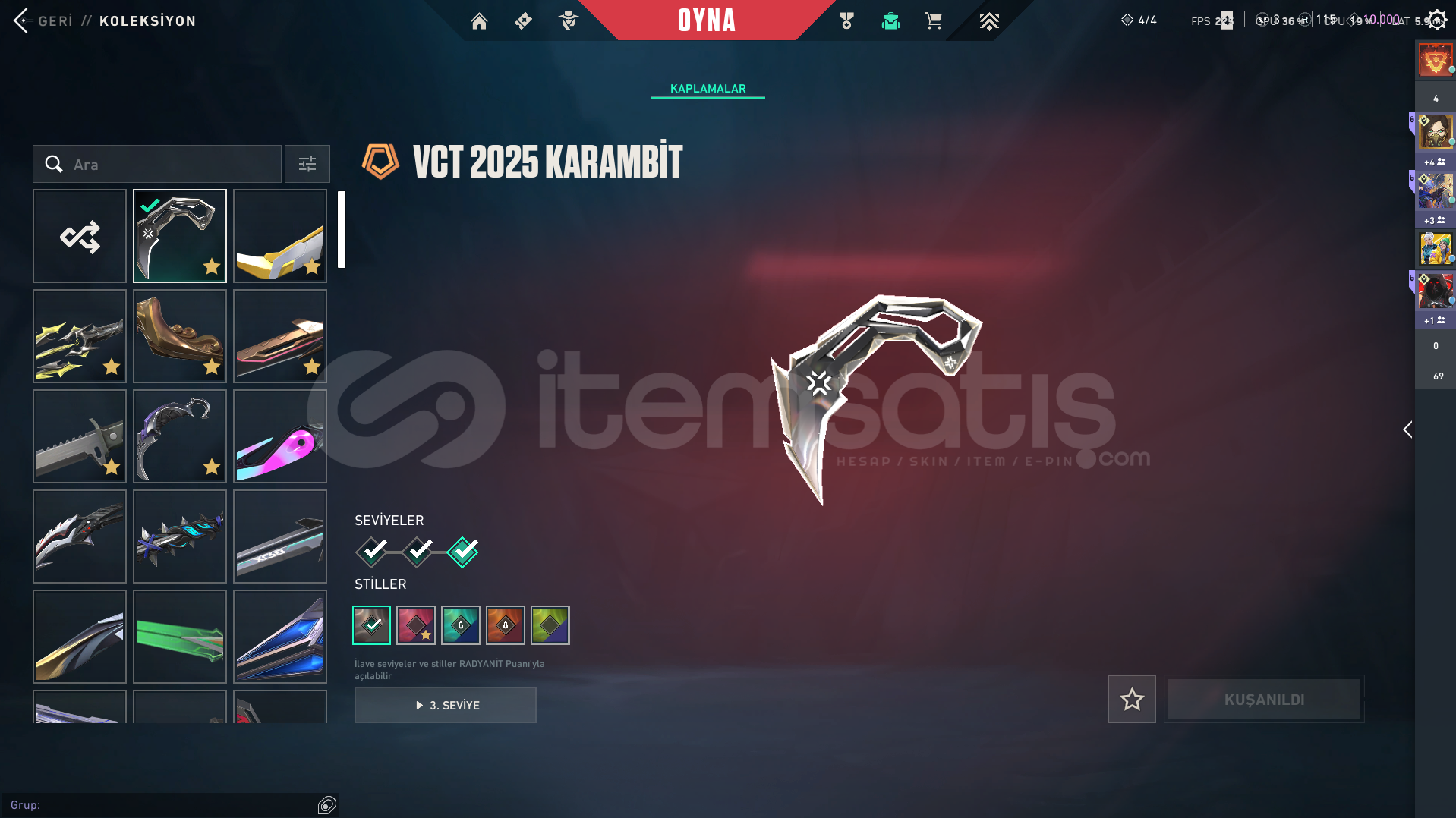 BIÇAK:asil karambityağmacı karambitvct karambitsemavi yelpazeulupençe bıçakuzaylı avcısı bıçağımakarasına demirdiken topuzCLASSİC:neptünrgxyitikGHOST:ulupençeözel harekatevoriSHERİFF:yağmacıkuronamiSPECTRE:anomaliVANDAL:aemondirasilcesur yürekkaosdelipopgaianeptünulupençecyraxPHANTOM:radiant entertainment systemasilözel harekatiyononiGUARDİAN:cyraxBULLDOG:...