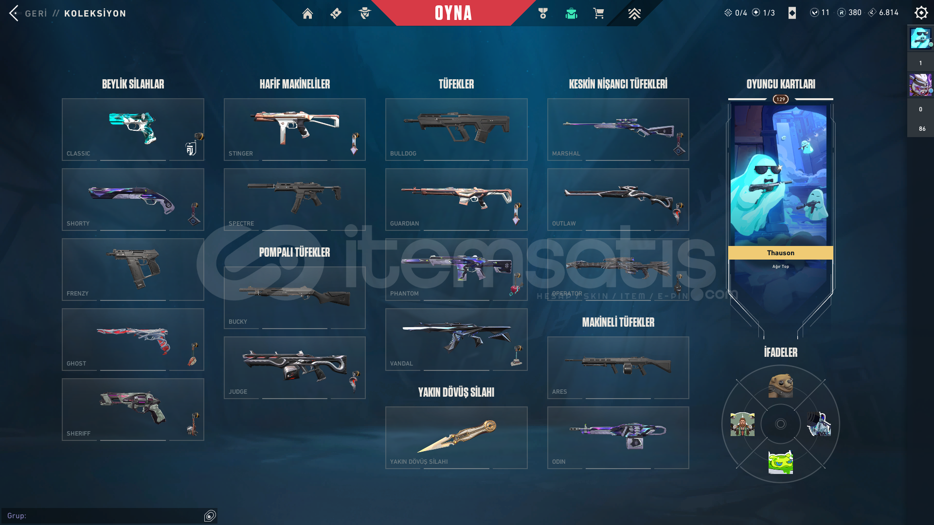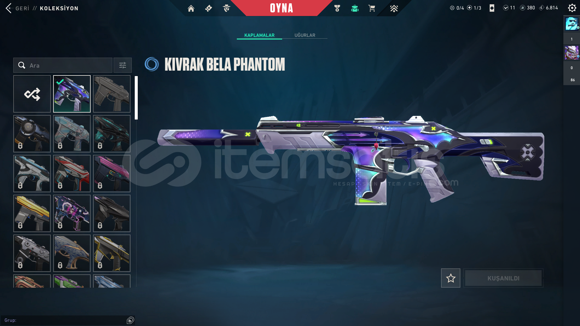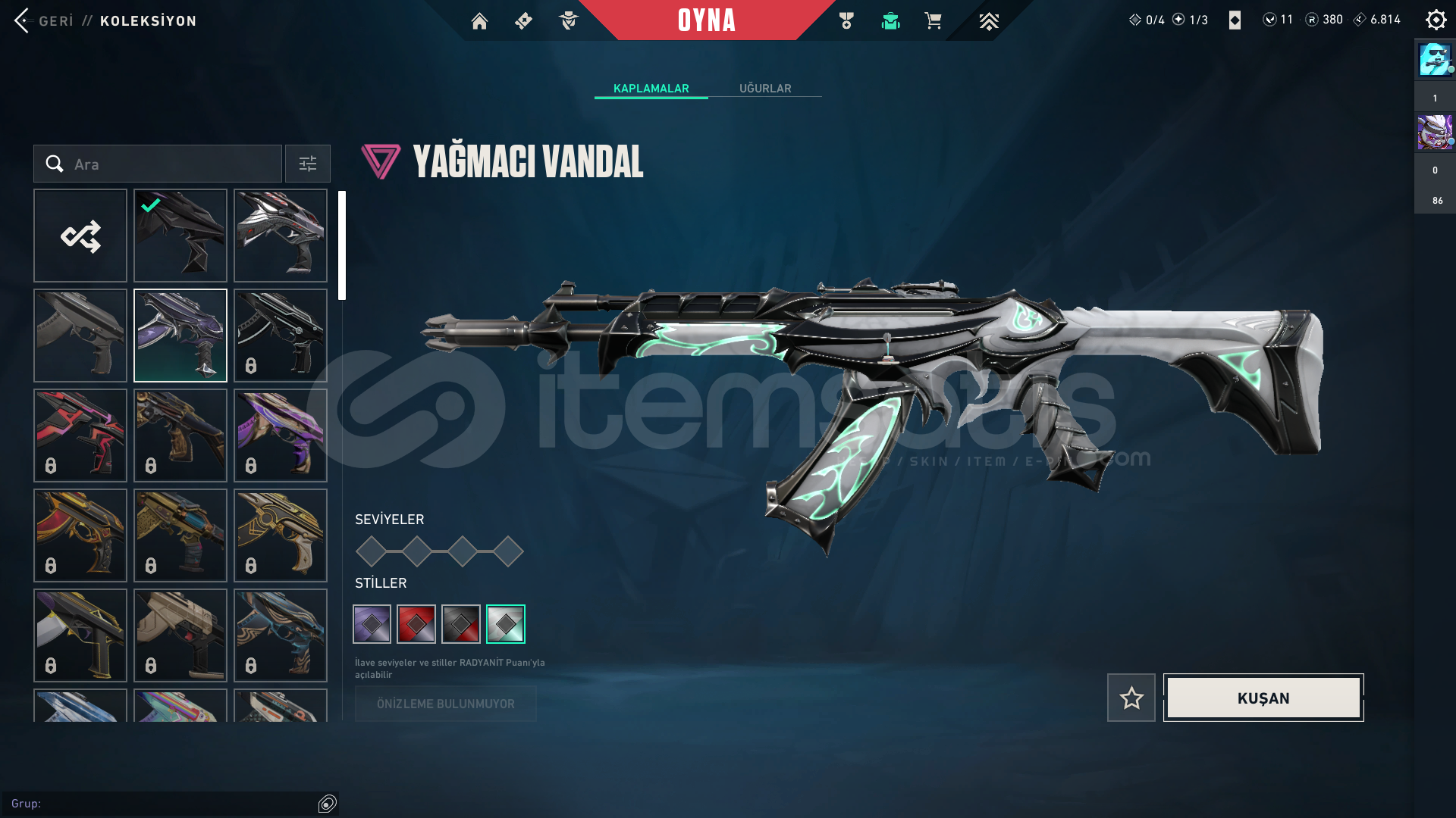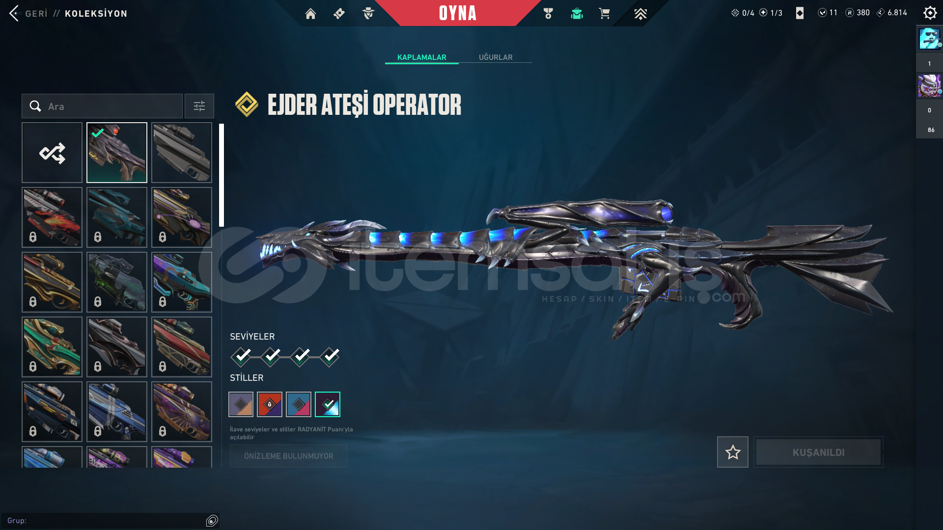 skinler fotoğrafdaki gibidir ve fazlasıda vardır bol emek vardır hesabın ilk sahibiyimdir alana hayırlı olsun-sihir çakı-ejder operator-yağmacı vandal-anomali vandal-protokol sherrif-gaia ghost ve fazlası.....