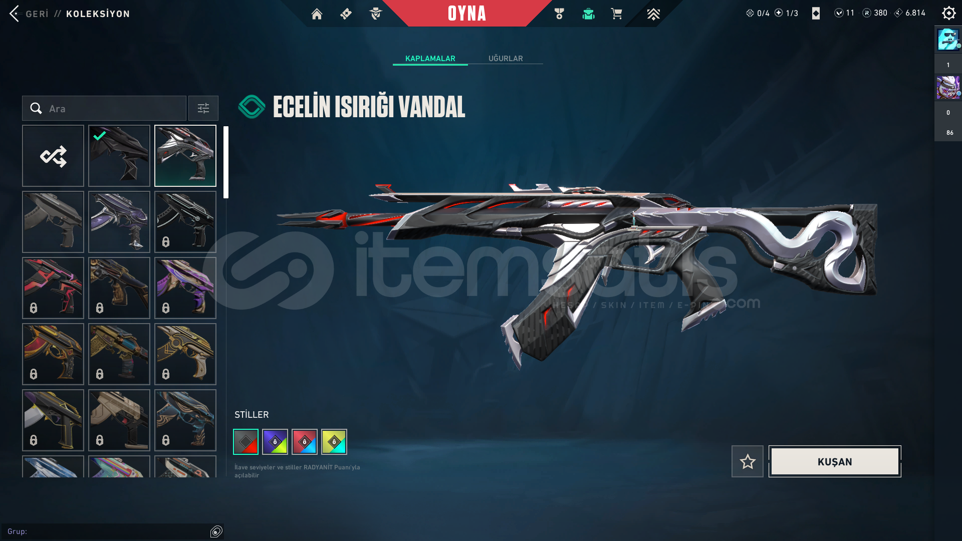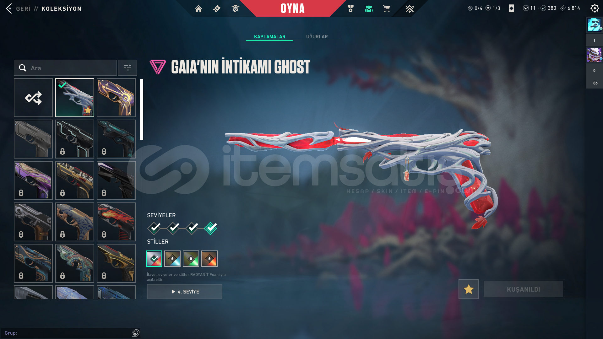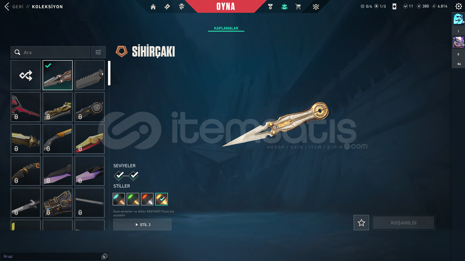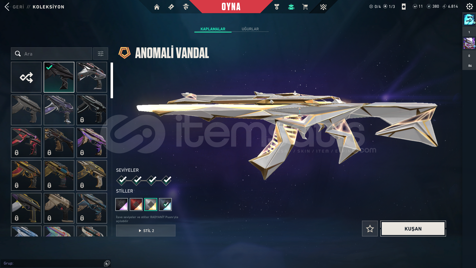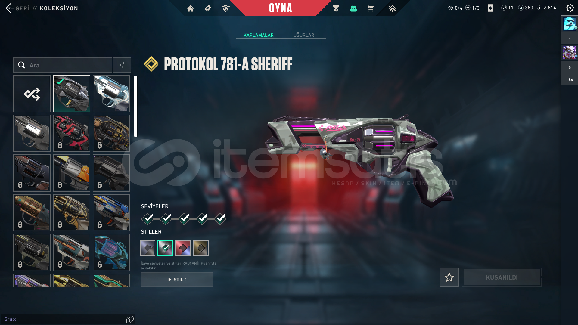 skinler fotoğrafdaki gibidir ve fazlasıda vardır bol emek vardır hesabın ilk sahibiyimdir alana hayırlı olsun-sihir çakı-ejder operator-yağmacı vandal-anomali vandal-protokol sherrif-gaia ghost ve fazlası.....