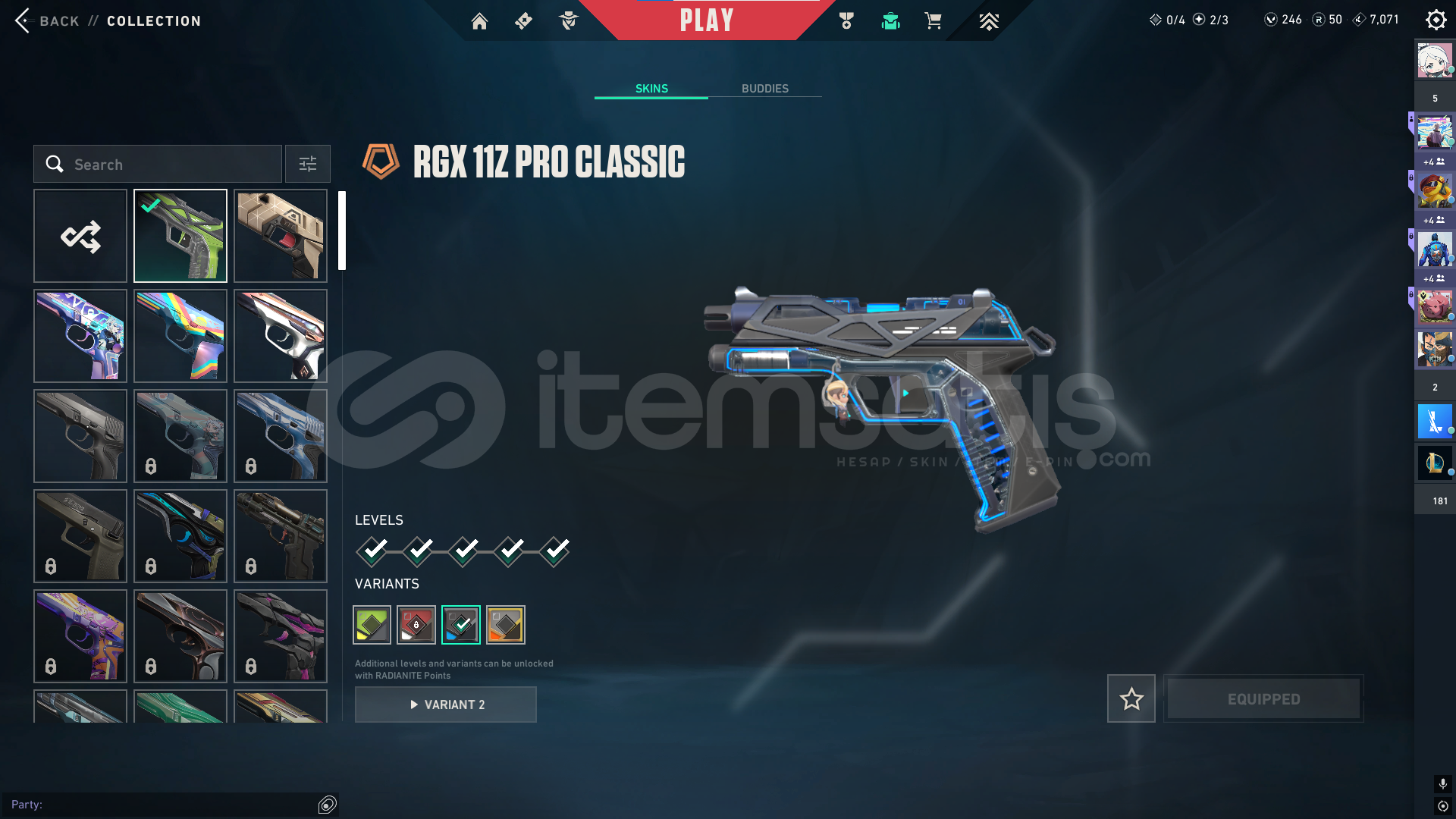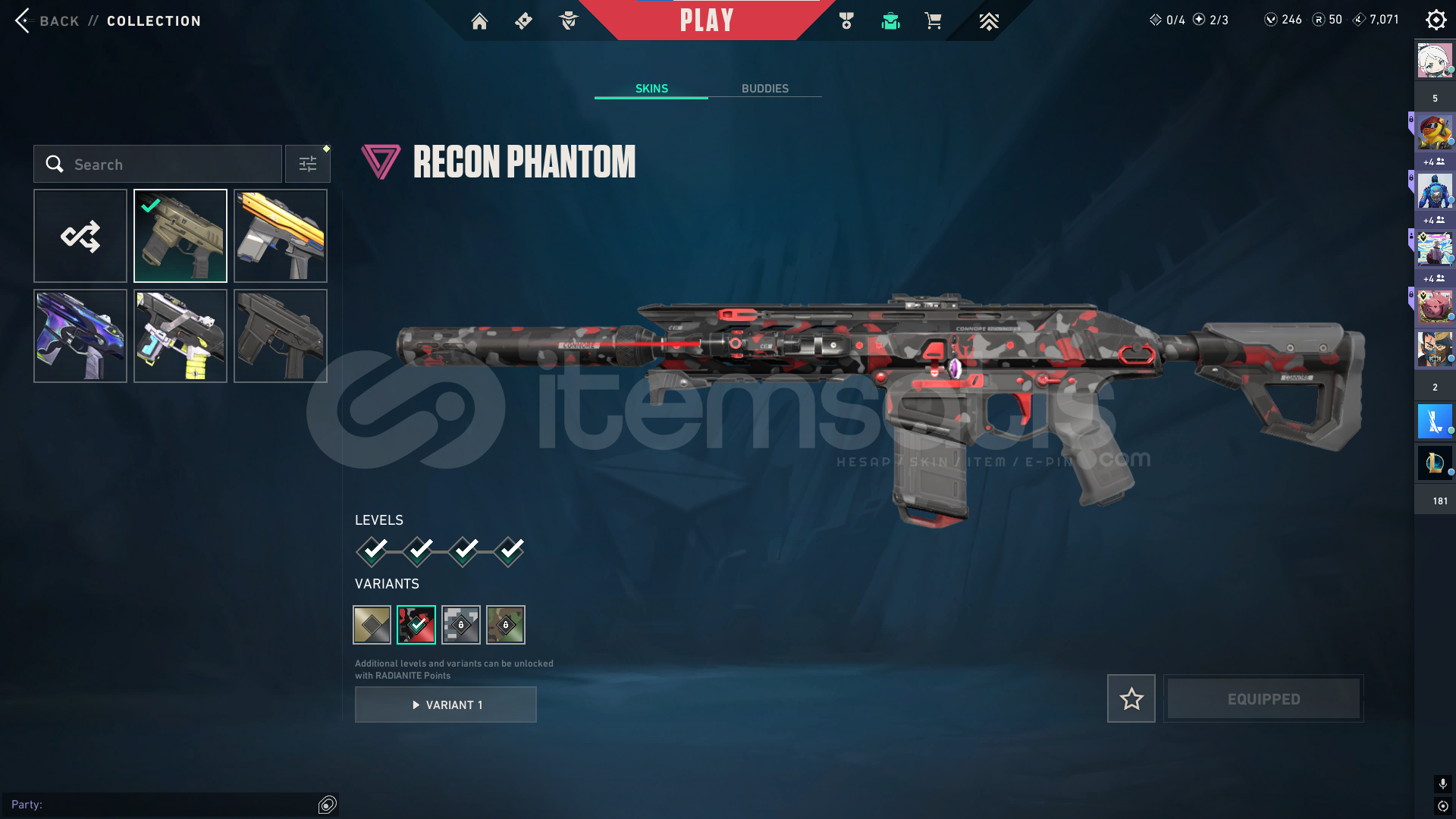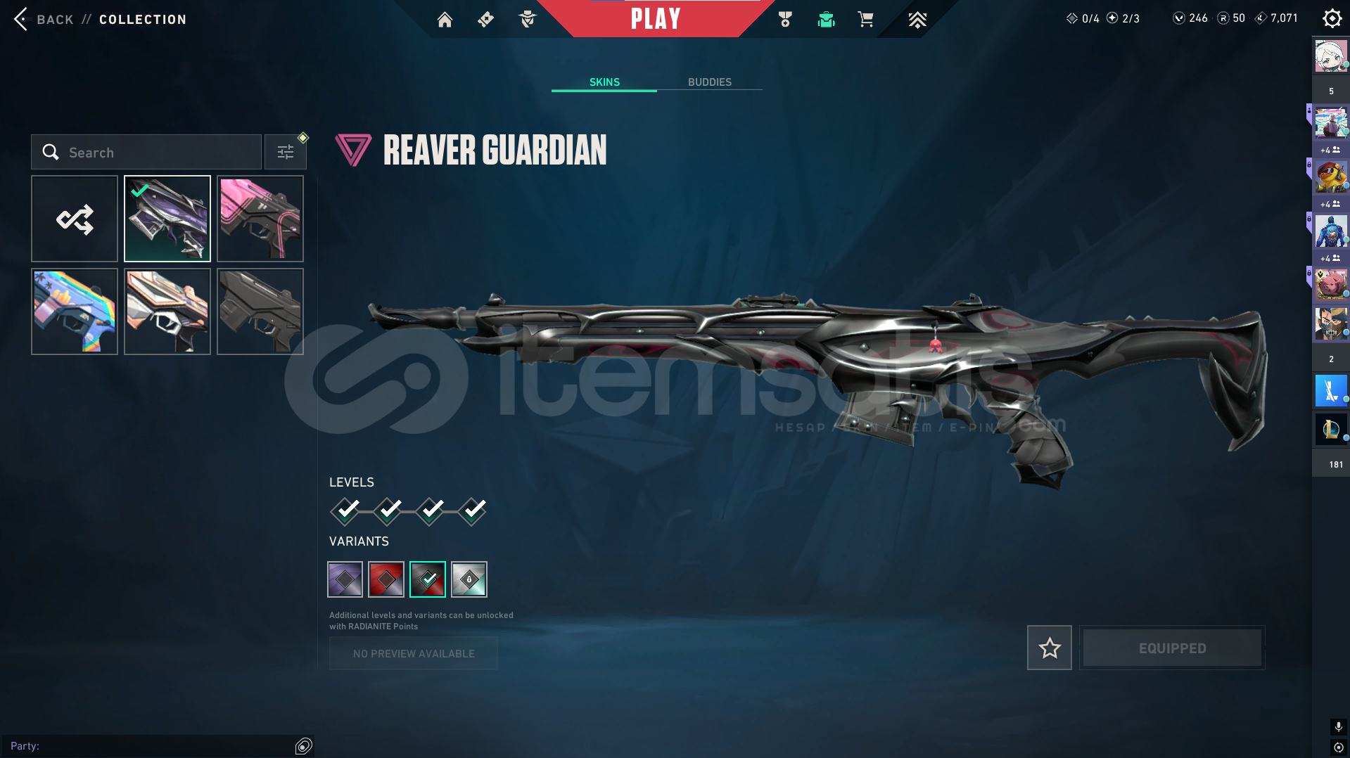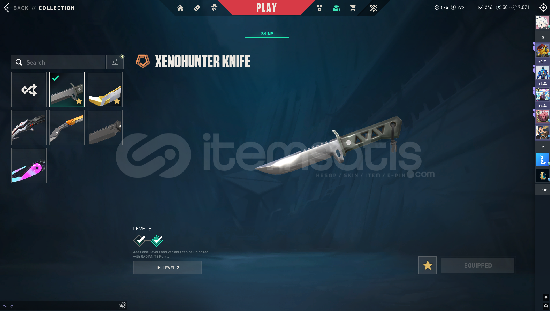 70 skin vardır16 yükseltilebilir skin bulunmaktaClassics-Rgx 11Z Pro ClassicGhosts-Xerofang GhostSheriffs-Exo sherrif-Mystbloom sherrif-Ion sherrifGuardians-Reaver GuradianPhantoms-Recon PhantomVandals-Gaia`s Vengeance Vandal-Prime Vandal- Chaos Vandal-Imperium Vandal-Glitchpop Vandal-Kuronomi Vandal-Forsaken VandalOperators-Reaver OperatorKnifes-Xenohunter Knife-Prime 2.0 Karambit
