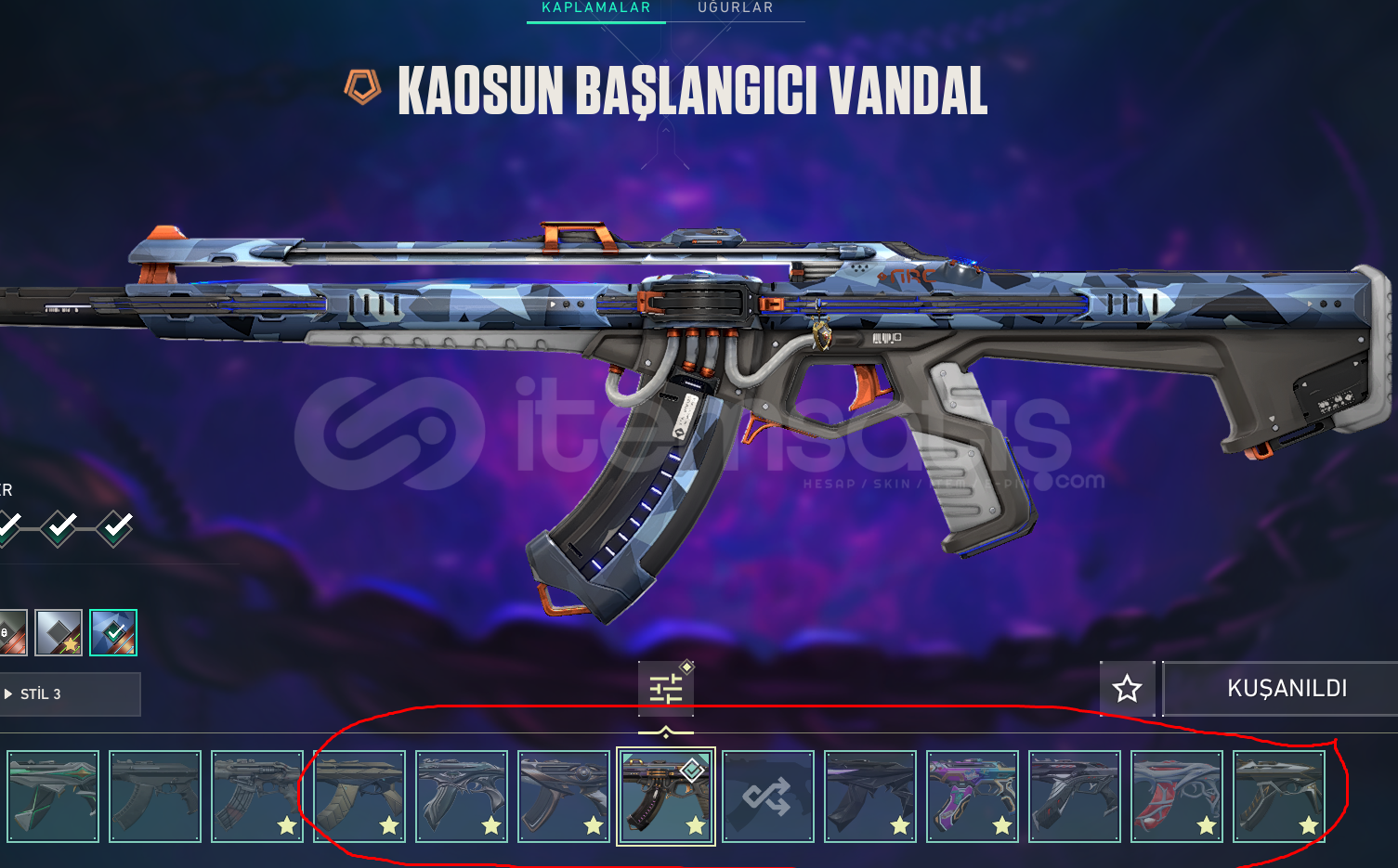 İçindeki Skinler ;Vandla ; Kaos, Yitik, Anomal,i Delipop, Işık Muhafızı, Yıldız Belası, Zamanın Ötes,i GaiaSherif ; Işık Muhafızı , AnomaliPhantom ; Özel Harekat , AnomaliOperator ; Sır Çiçeği , Ejderin Buyruğu , KaosGhost ; Anomali , Mahvolmuş KralGuardian ; RGXSpectre ; Anomali , AsilClassic ; FUTBıçaklar ; VCT Karambit , Yağmacı Karambit , Anomali Kelebek ,...
