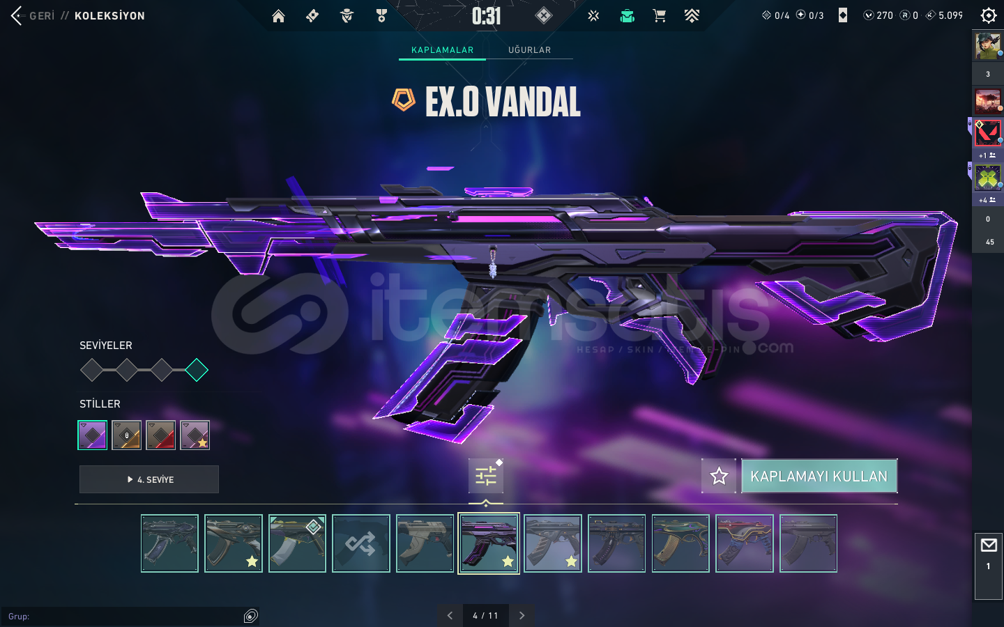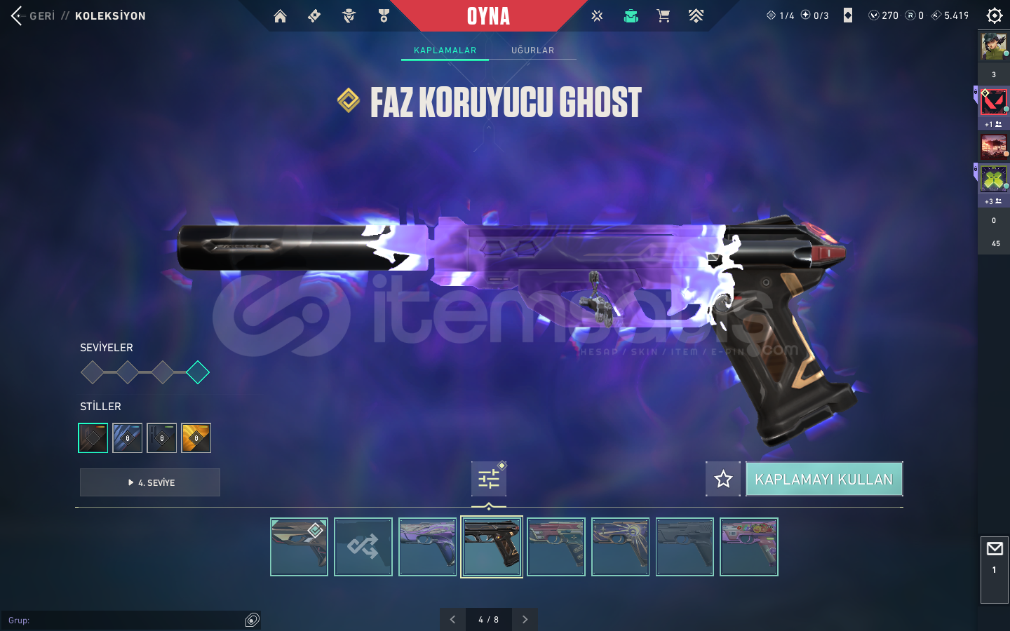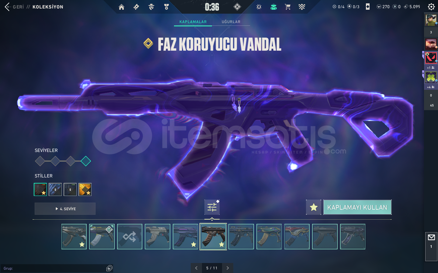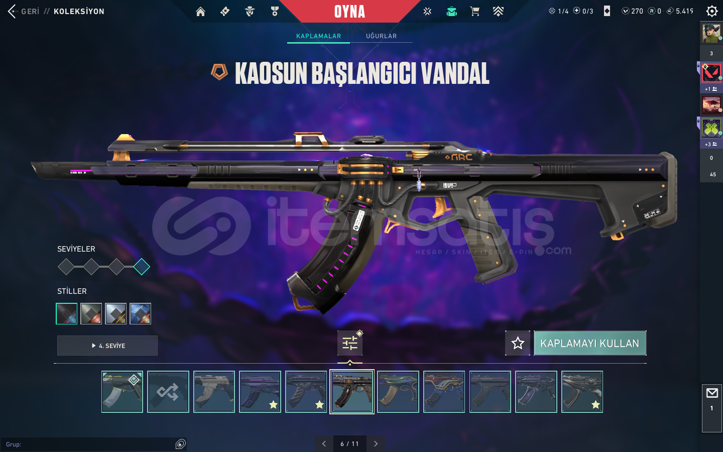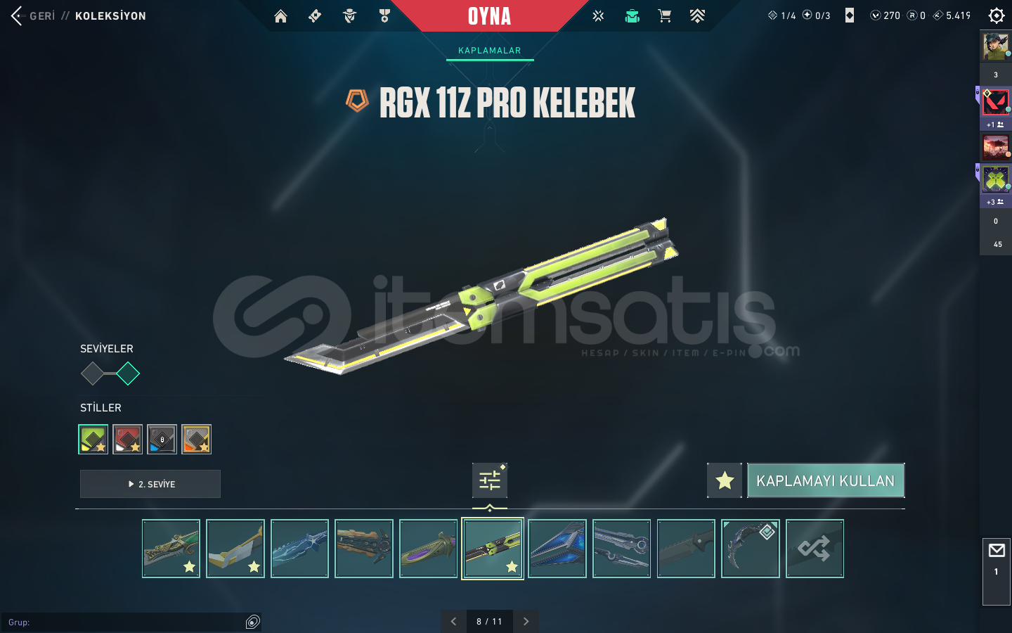 KAOS VANDAL , YAĞMACI VANDAL , ASİL VANDAL , EXO VANDAL , FAZ KORUYUCU VANDAL , YAĞMACI PHANTOM , SERİ TETİK PHANTOM VE SAVAŞ BİLETİ VANDALLARI BULUNMAKTABIÇAK KISMINDA İSE ; YAĞMACI KARAMBİT , ASİL KARAMBİT , RGX KELEBEK , KAOS KILICI , 5.YIL BIÇAĞI VE BİR KAÇ ADET DE SAVAŞ BİLETİ BIÇAĞI BULUNMAKTA.ASİL CLASSİC , ULUPENÇE GHOST , FAZ KORUYUCU GHOST , YILDIZ...