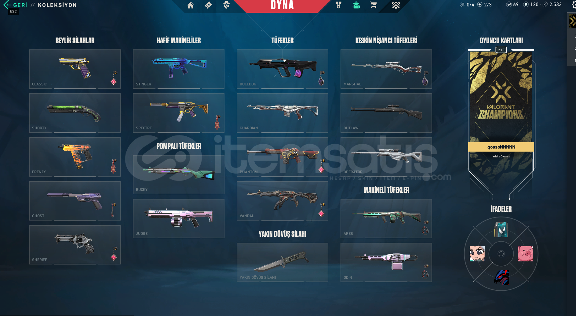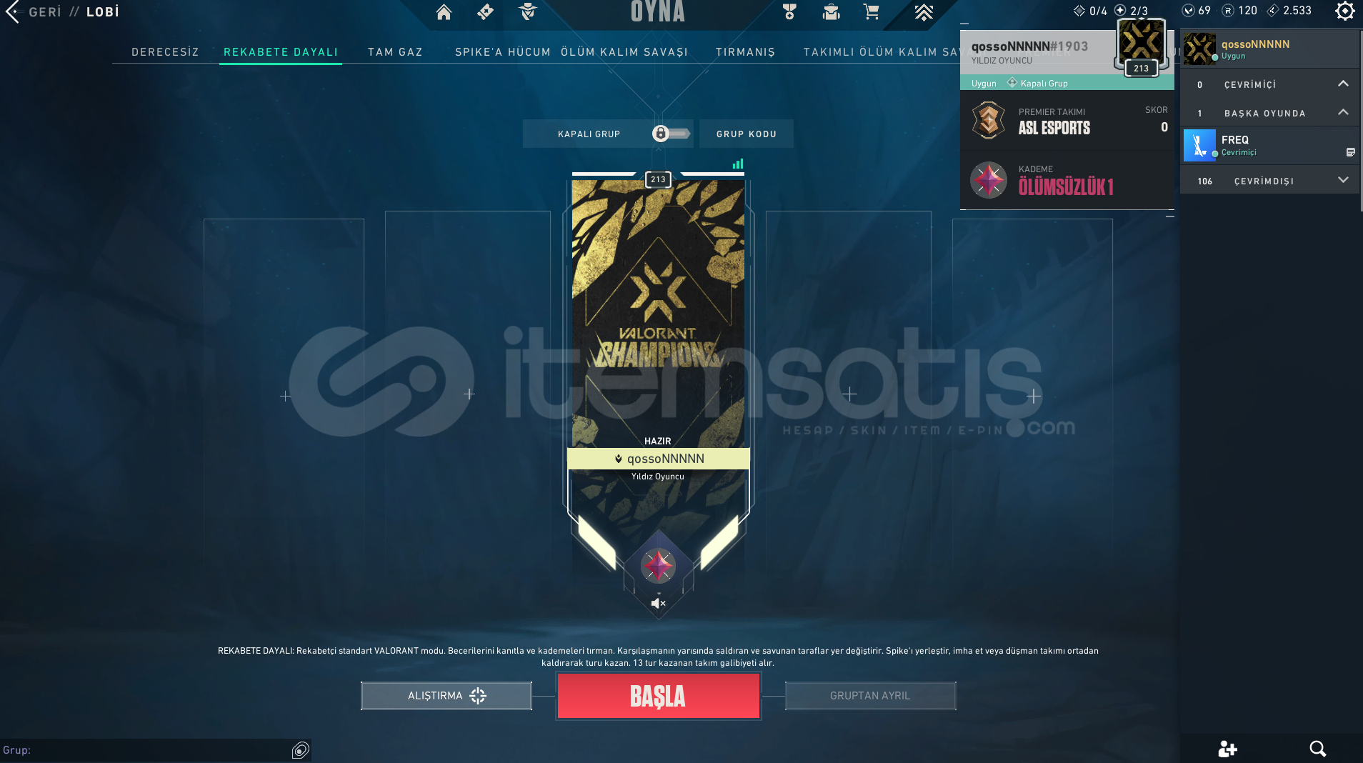 Bölüm 2'den beri oynadığım hesabım satılık. toplam 13 sezon boyunca immortal rankında bitirilmiştir(1-2-3 karışık), şu anda immortal 1'dir aktif 2 tane kalkanı vardır, geçen sezon immortal 2 bitirildi. Toplamda 75 tane skin vardır ve 2 tane battle pass vardır. Tüm ajanlar açıktır. Çıtırdan Espor geçmişi vardır. Hesap 213 LEVELDİR. Pek girme...