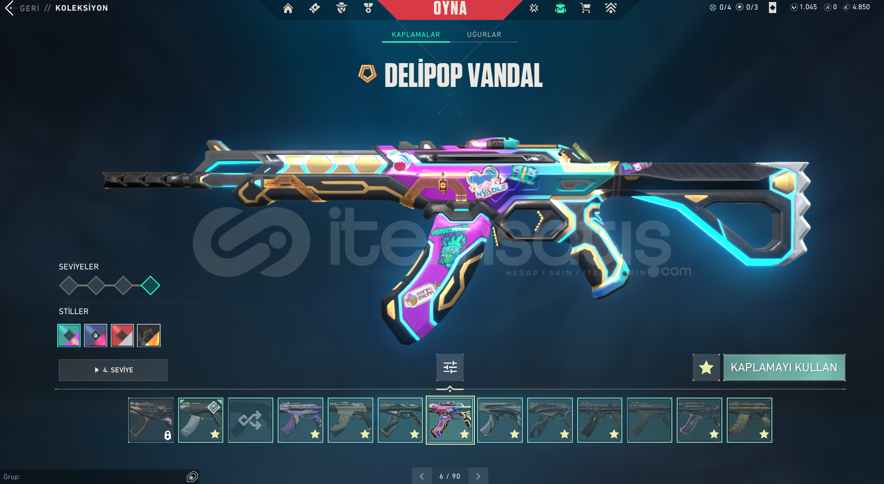 hesabımda vandallardan yağmacı , delipop , asil , evrim , champions , yıldız belası, felaketin kalbi , kaos vandal var , operatörde ejder op var , classicde asil classic var