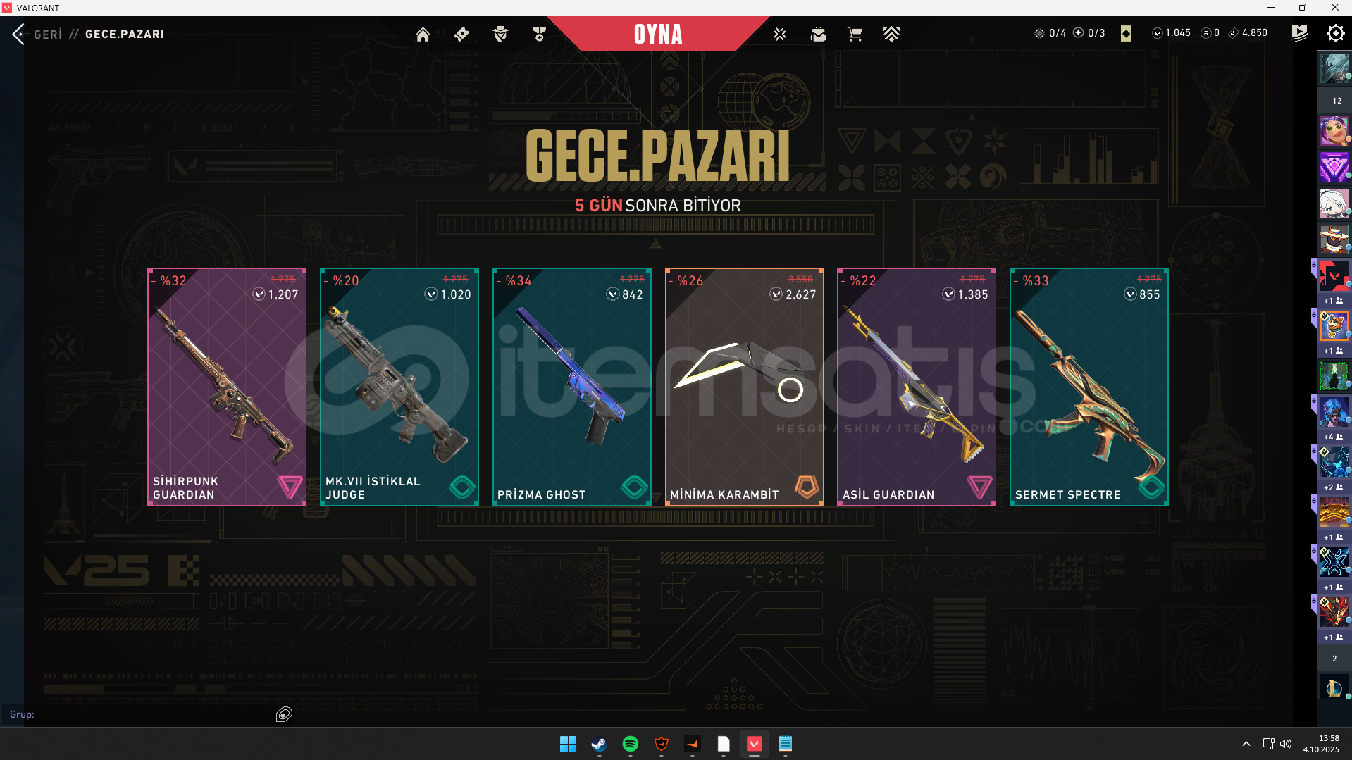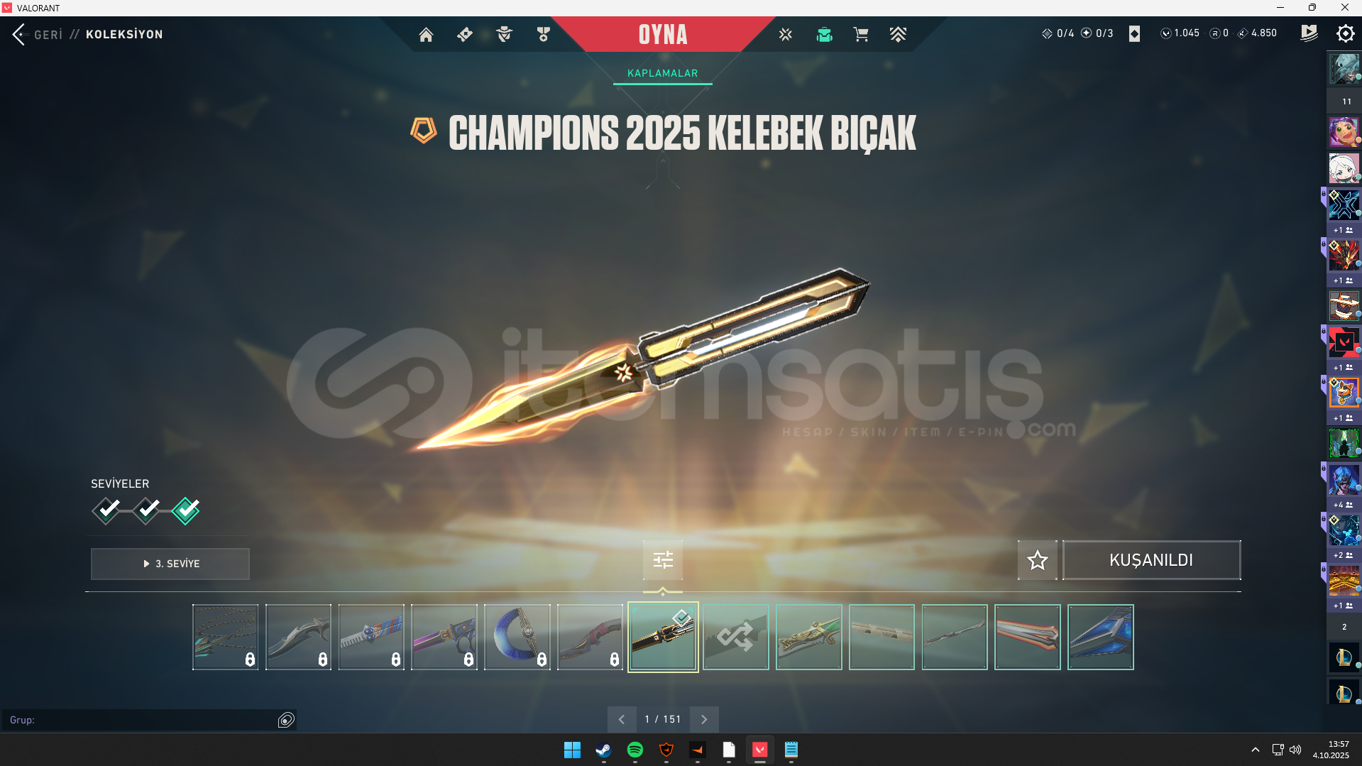 hesabın sahibi benim hesabı oluşturan da benim öğrenciyim ve artık oyunlardan keyif almıyorum hesabımı satmaya karar verdimhesabımda vandallardan yağmacı , delipop , asil , evrim , champions , yıldız belası, felaketin kalbi , kaos vandal var , operatörde ejder op var , classicde asil classic varghostta fatih var sherifde kaos var phantomda kaos var championsun 2025 seti var evrimin bıçağı v...