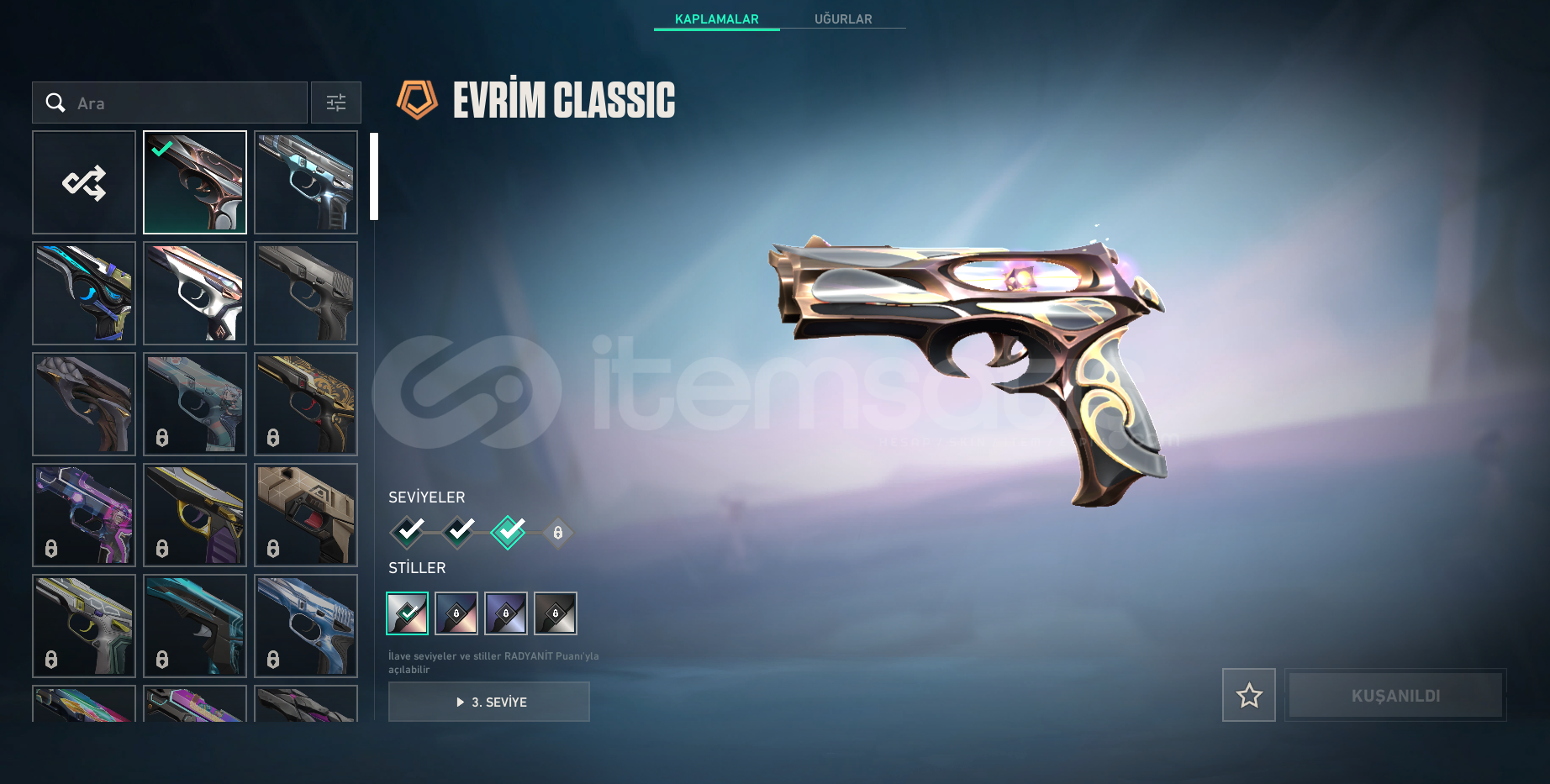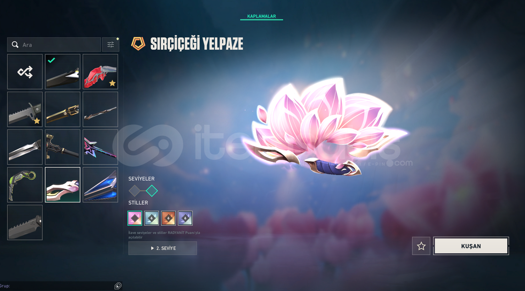 İçinde oyunun en güzel silahlarının, bıçaklarının bulunduğu hesabımı satıyorum. Karambit, kelebek, yelbaze, bayonet, faz koruyucu,ora bıçağı gibi mükemmel bıçaklar, kuronami, kaos, faz koruyucu, ora, champions 2025, champions 2023, gaia, cyrax, dolmir, sırçiçeği gibi sayısız vandal... zifiri, protokol, spectrum, sırçiçeği, kaos phan...