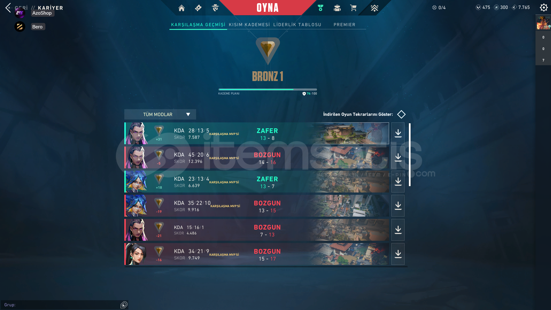 Ürün Hakkında Bilgi;İLANI SATIN ALDIĞINIZDA 7/24 OTOMATİK OLARAK TESLİM EDİLİR.RANK - BRONZ 3HESAP SEVİYESİ - 65SKİN SAYISI - 8VP SAYISI - 650+ 100.000 BAŞARILI İŞLEM İLE GÜVENLE ALIŞVERİŞ YAPABİLİRSİNİZ