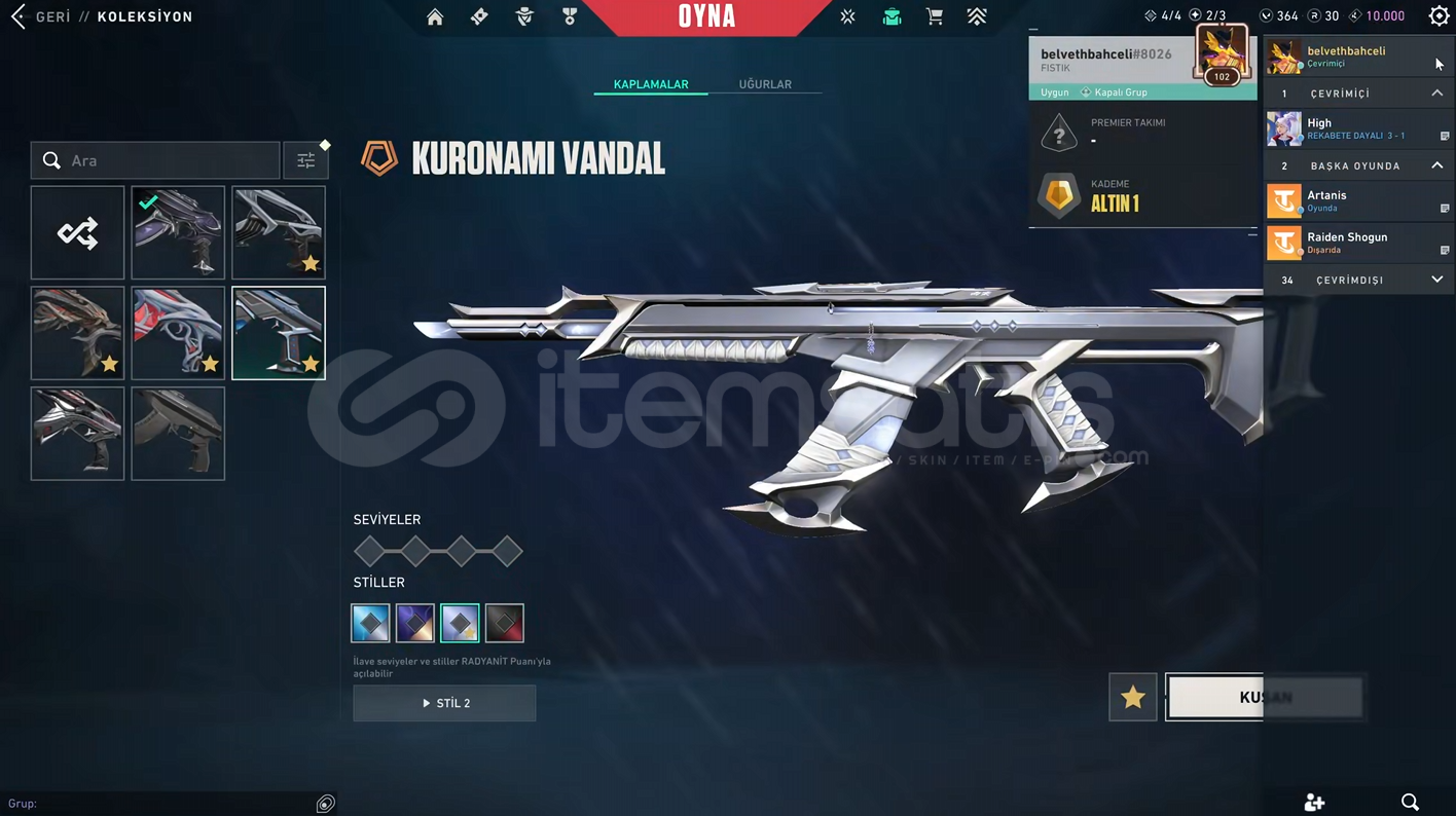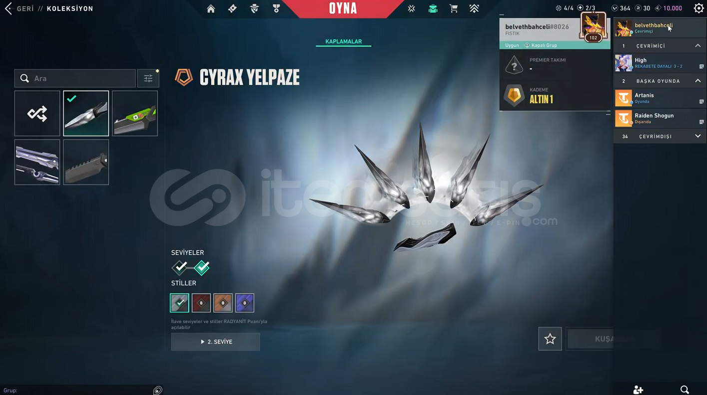 İÇİNDE 76 ADET SKİN BULUNMAKTADIR FİYATTA PAZARLIK MEVCUTTUR.