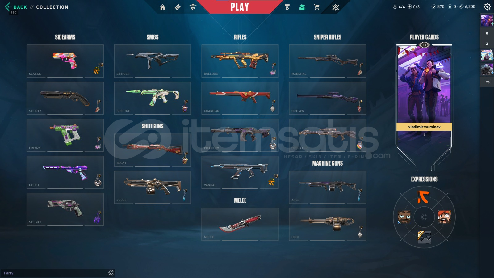 Tüm Silahlarda En İyi Skinler Vardır Herkesin Beğendiği Skinlerle Dolu Bir HesapSv:53Rank:BronzVct ClasicKaos ShortyBlastx FrenzyRES ghost $$$Protokol SheriffCyrax StingerEVori SpectreSürat Manyagı BuckyZamanın Ötesi JudgeZifiri MarshallDelipop BulddogZED Guardian $$$Afet PhantomZifiri PhantomSır Çicegi PhantomEXO OutlawEjder Ateşi Operatör $$$Anomali AresSeri Tetik OdinKaos VandalKuronami VandalEvrim Vandaloni vandal5 ye...