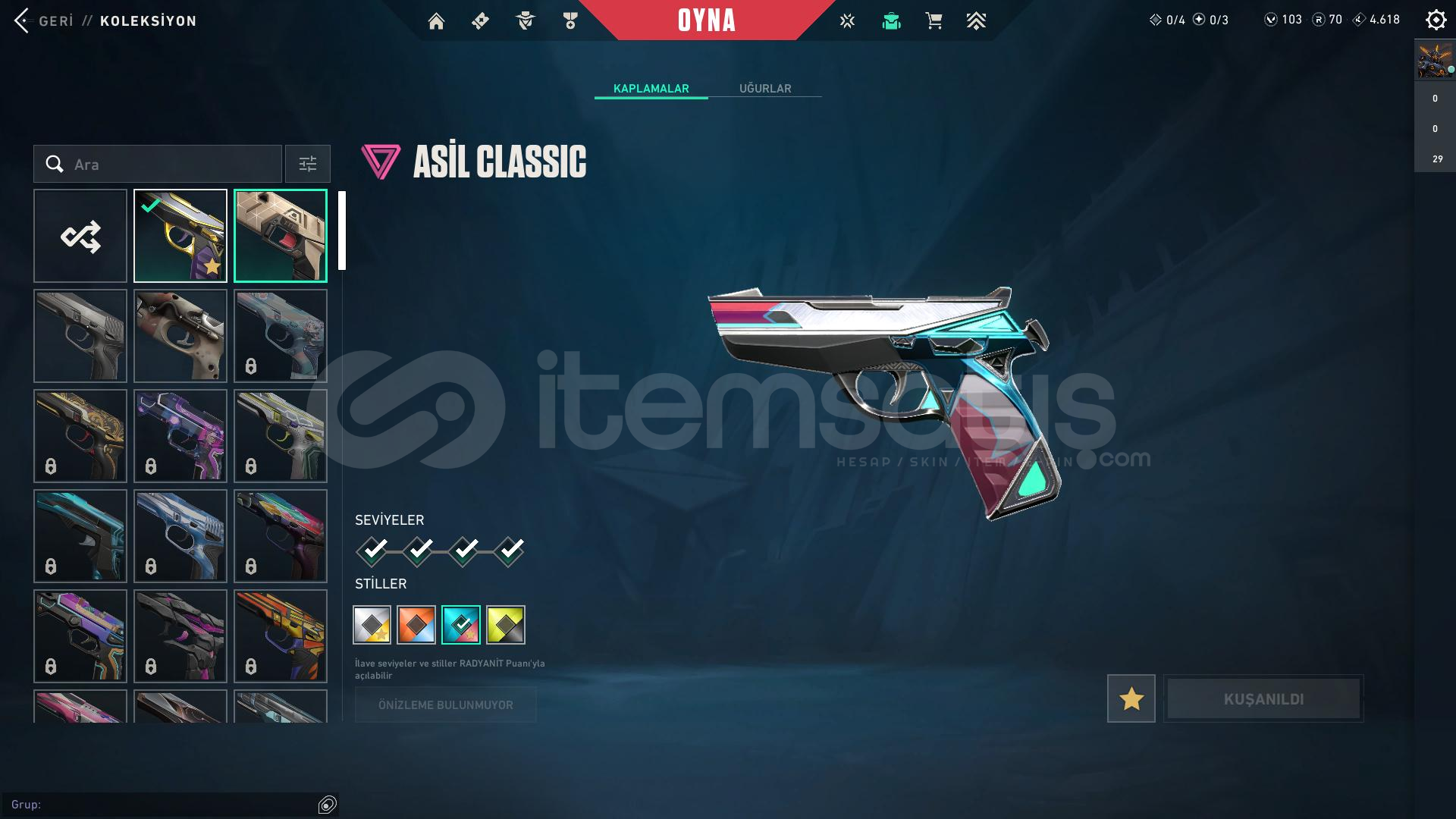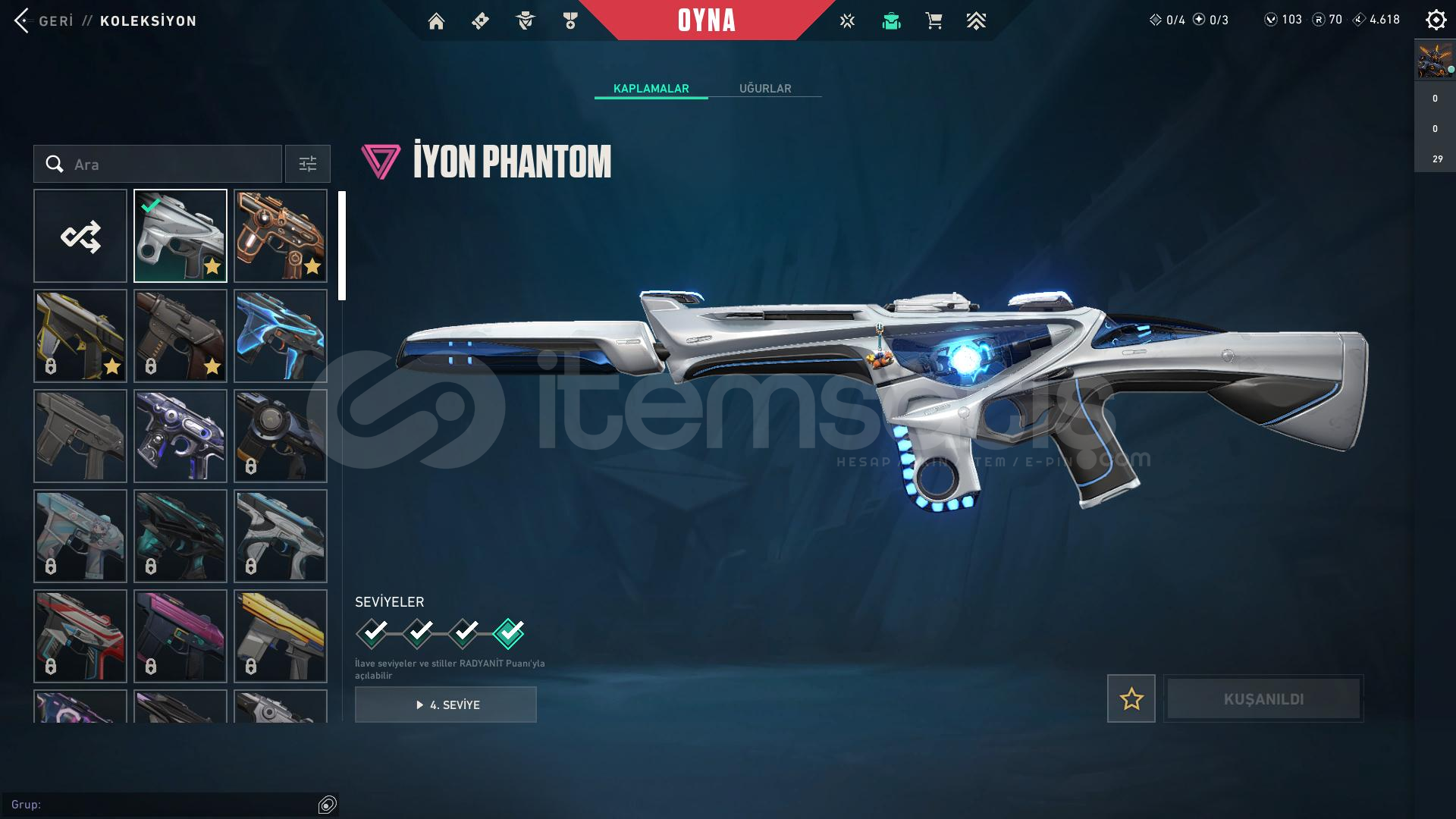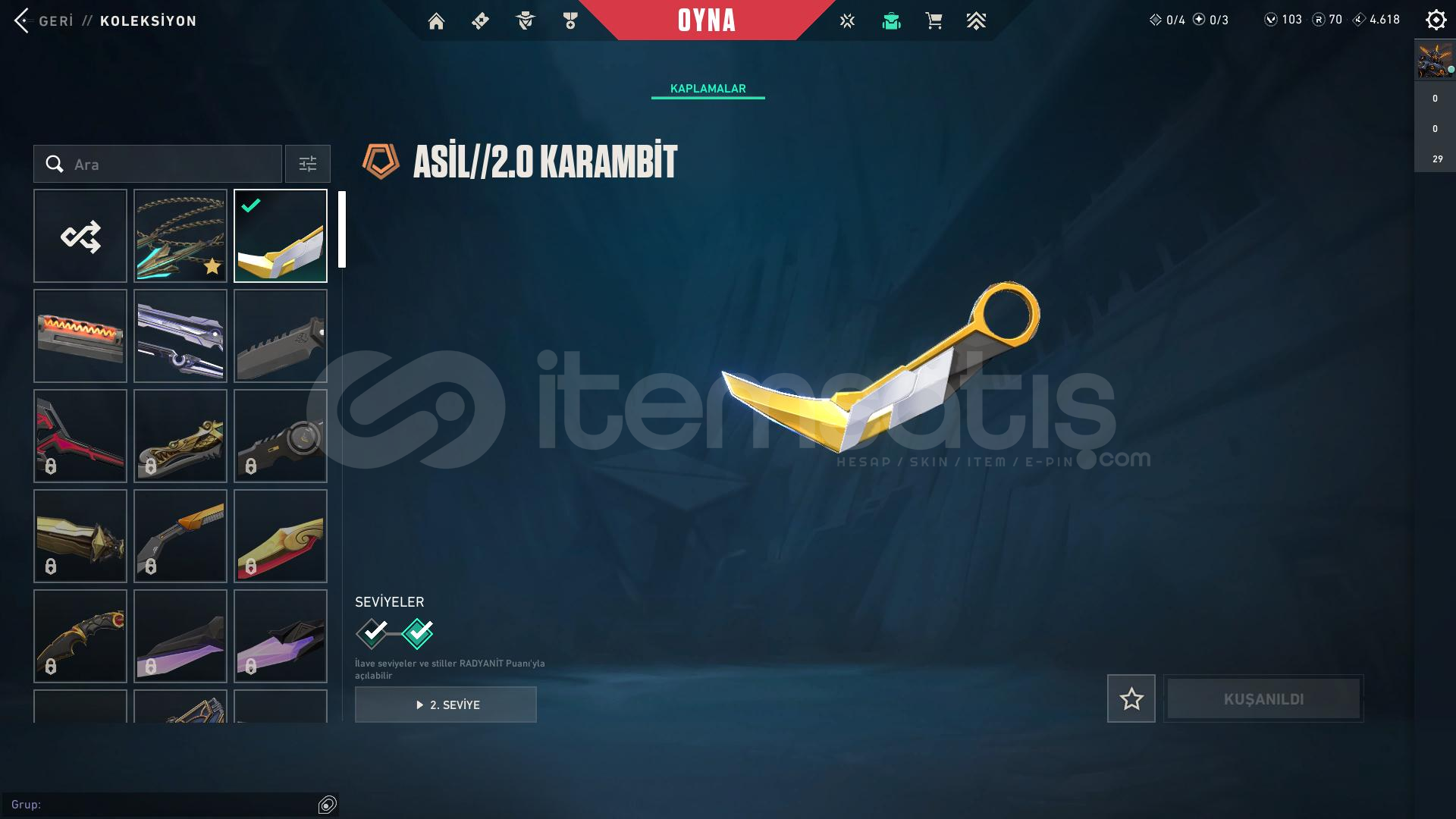 Hesap TR serveri, Ban yok, mail şifre değişir, fiyatta pazarlık vardır, hesap içerisinde 103 VP vardır, rank gümüş3, Sorularınız için mesaj atınız, hesap içerisindeki skinler :Vandal: Arcane Vandal, Yağmacı Vandal, Kuronami Vandal, Ejderin Buyruğu Vandal, Soğuk Çelik VandalPhantom: İyon Phantom, Sihirpunk Phantom, Uzay Geçidi PhantomBıçak: Asil Karambit, Yı...