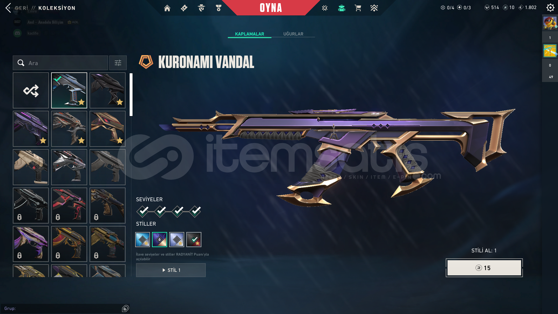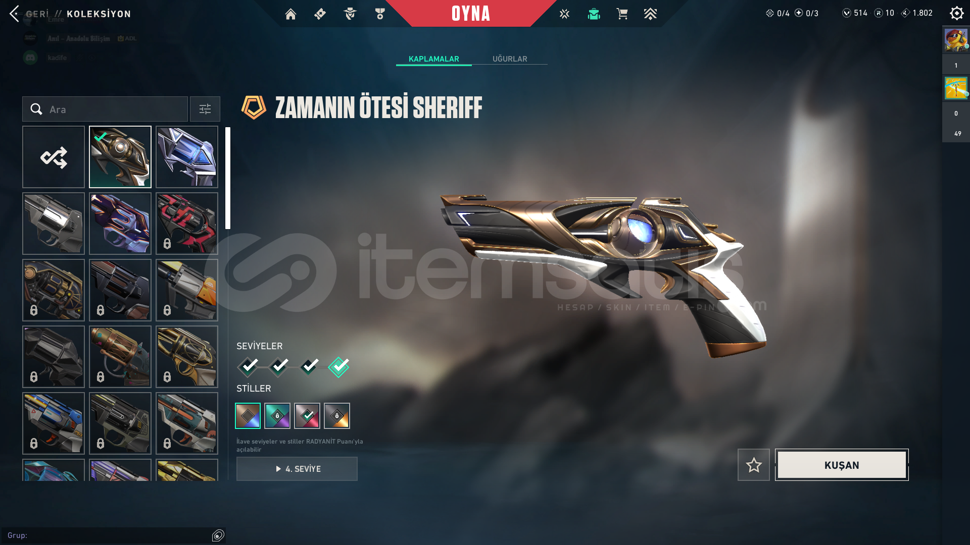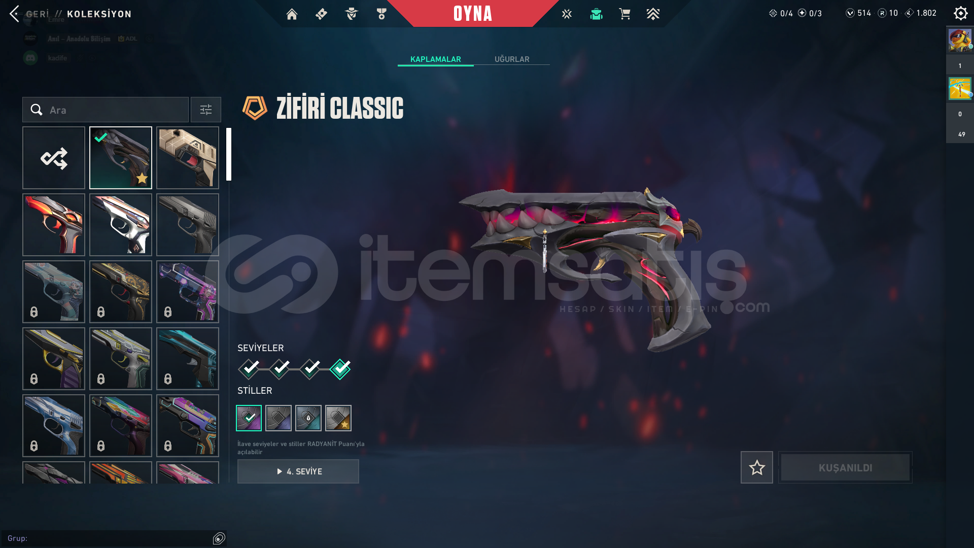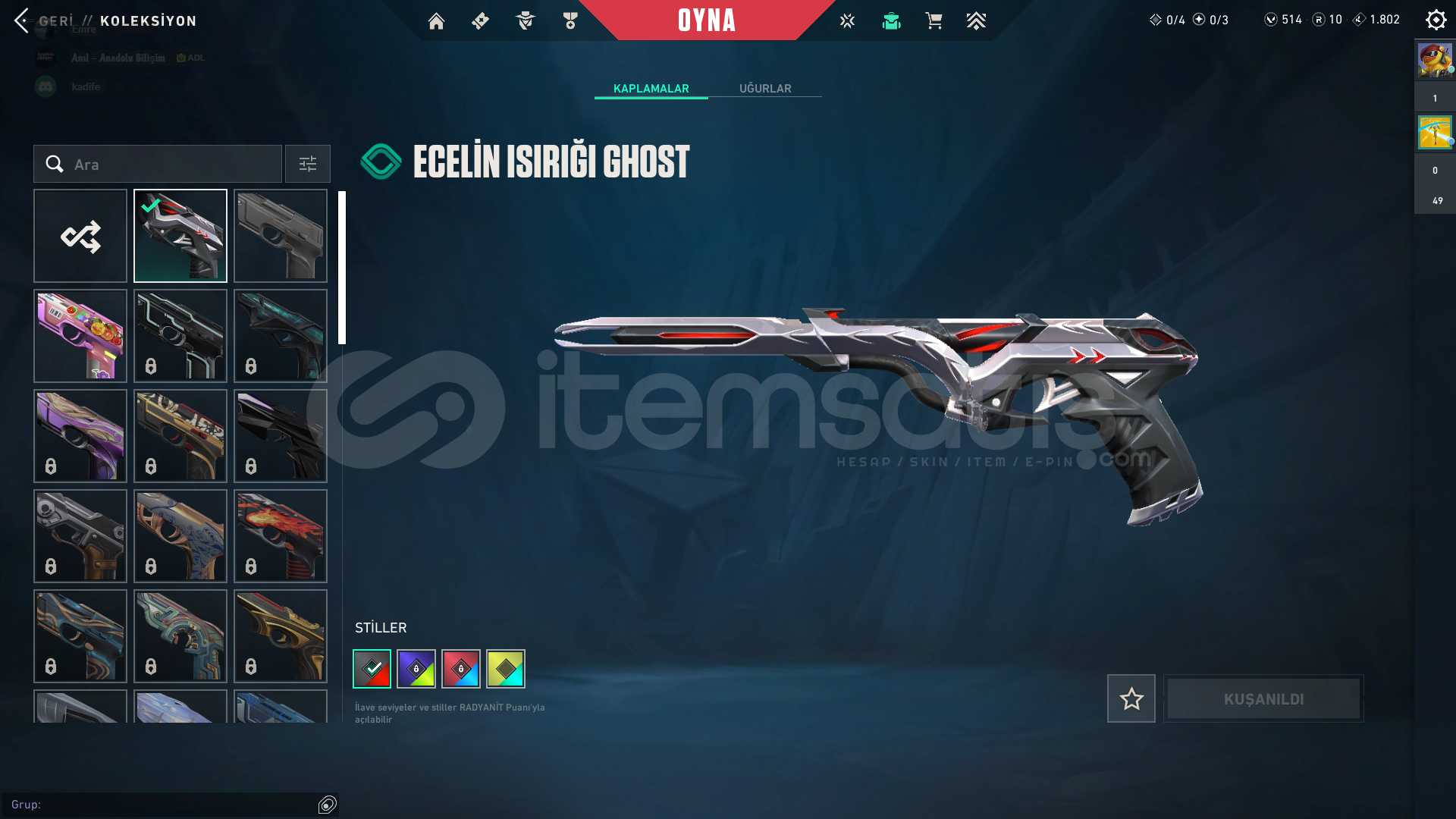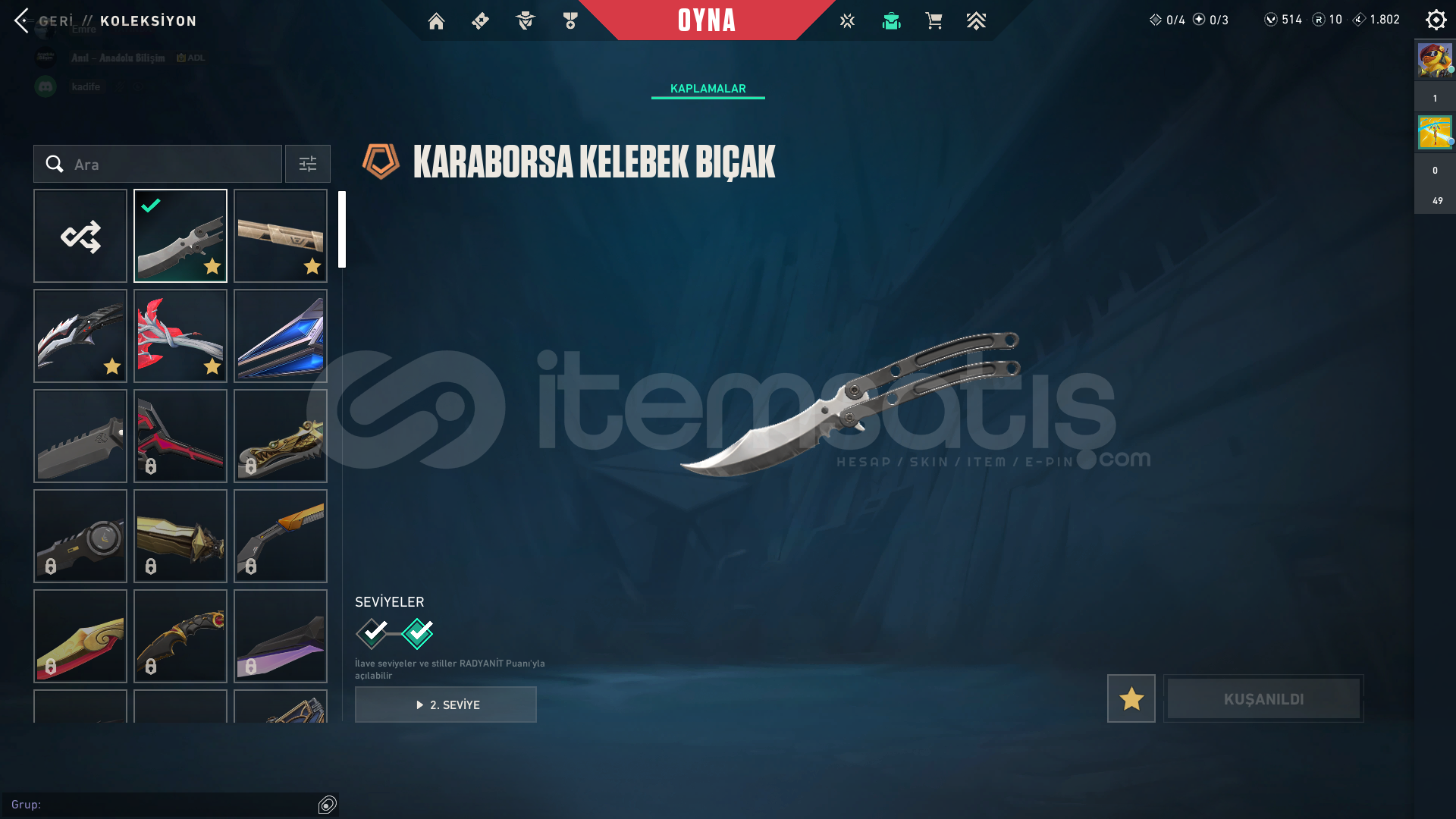 ve parasız skinler ile full doludur hesap