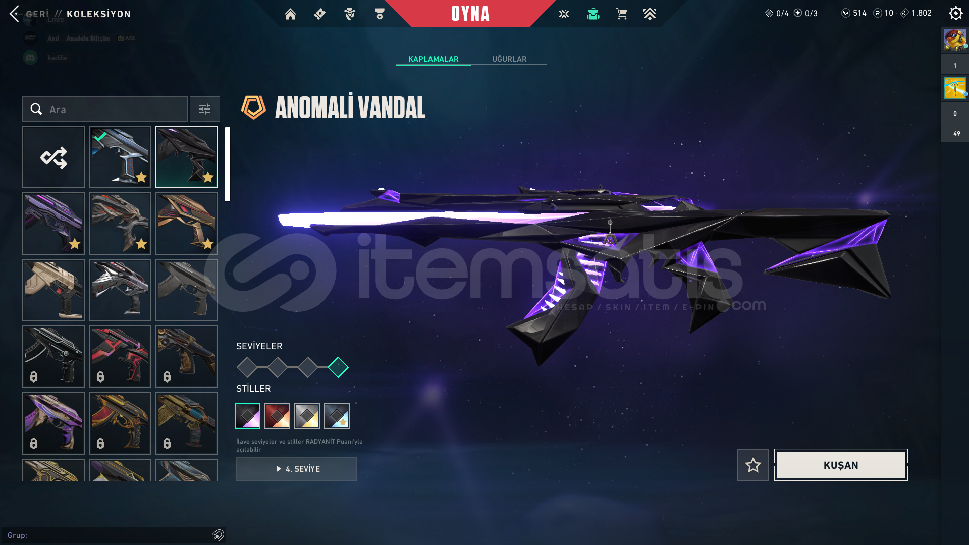 Vandal → Kuronami Vandal - Anomali Vandal - Ex.o Vandal - Felaketin Kalbi Vandal - Ulupençe Vandal - Atlas Vandal - Ecelin Isırığı Vandal | 7x Skins