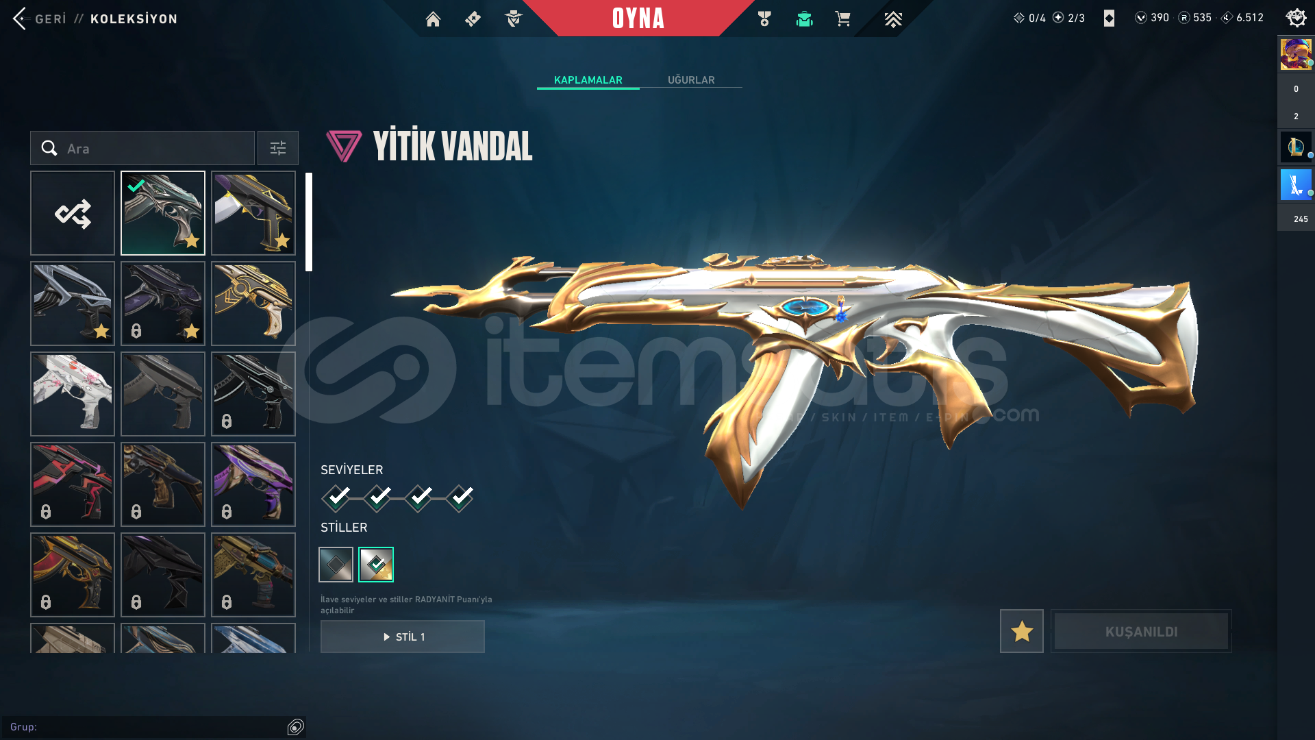 • Hesabın Envanter Değeri 2850 TL DİR, Ve Ekstradan Harcanabilir 390 VP Ve 535 Radyanit Mevcuttur.