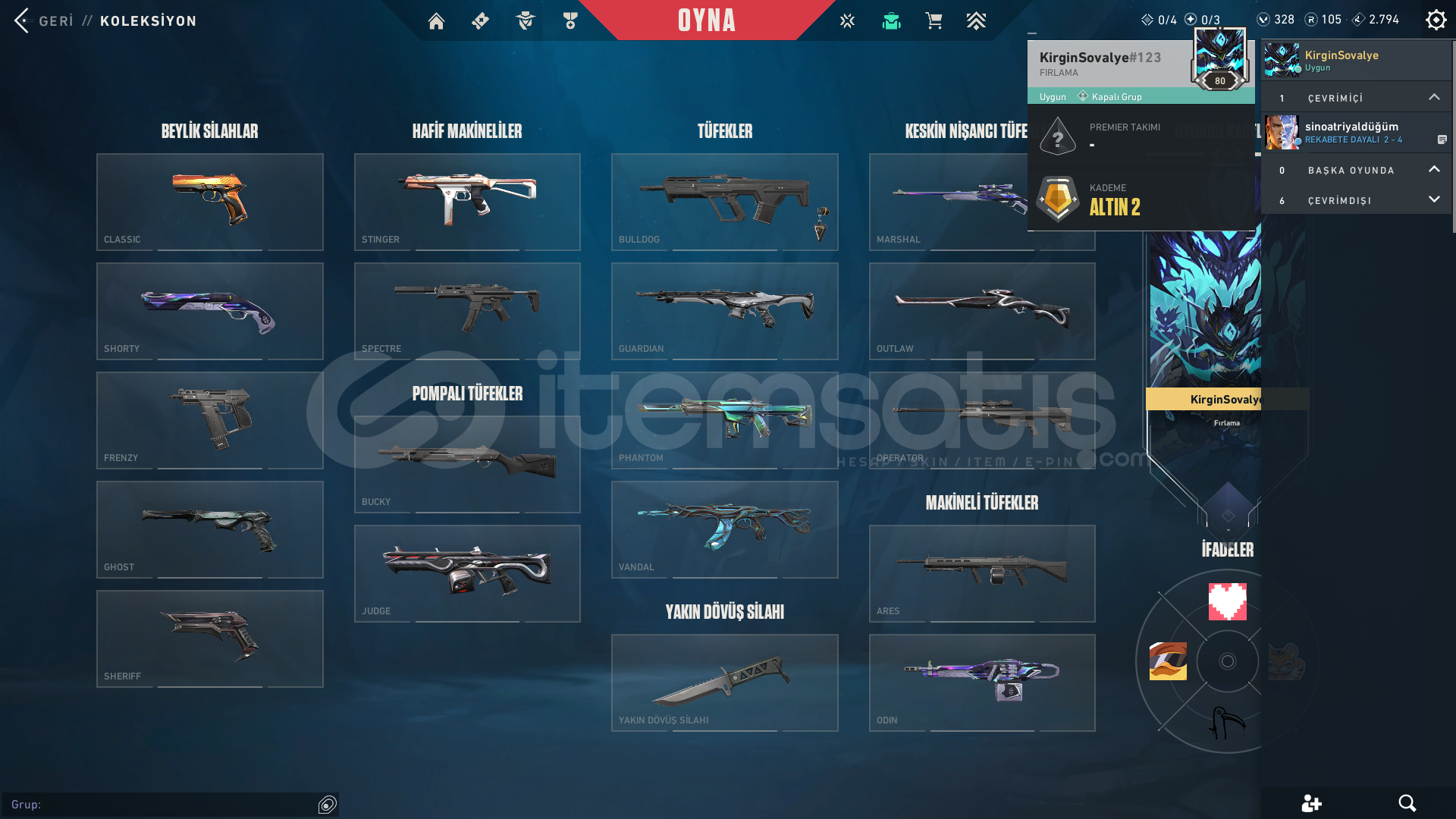 Hesabımda genelde oynanılan silahlarda skinler mevcuttur.