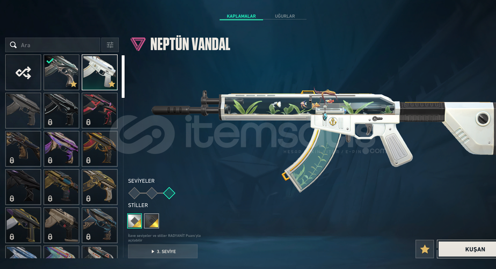 BIRAKTIĞIM İÇİN SATILIK🌟SKİNLER🌟 ONİ PHANTOM🌟 NEPTUN VANDAL🌟 YİTİK VANDAL🌟 GAİANIN GAZABI🌟 CATRİNA🌟 2 BATLE PASS TAMAMLAMADIM AMA 🌟 RANK PLAT 1🌟 TR SUNUCUSU🌟