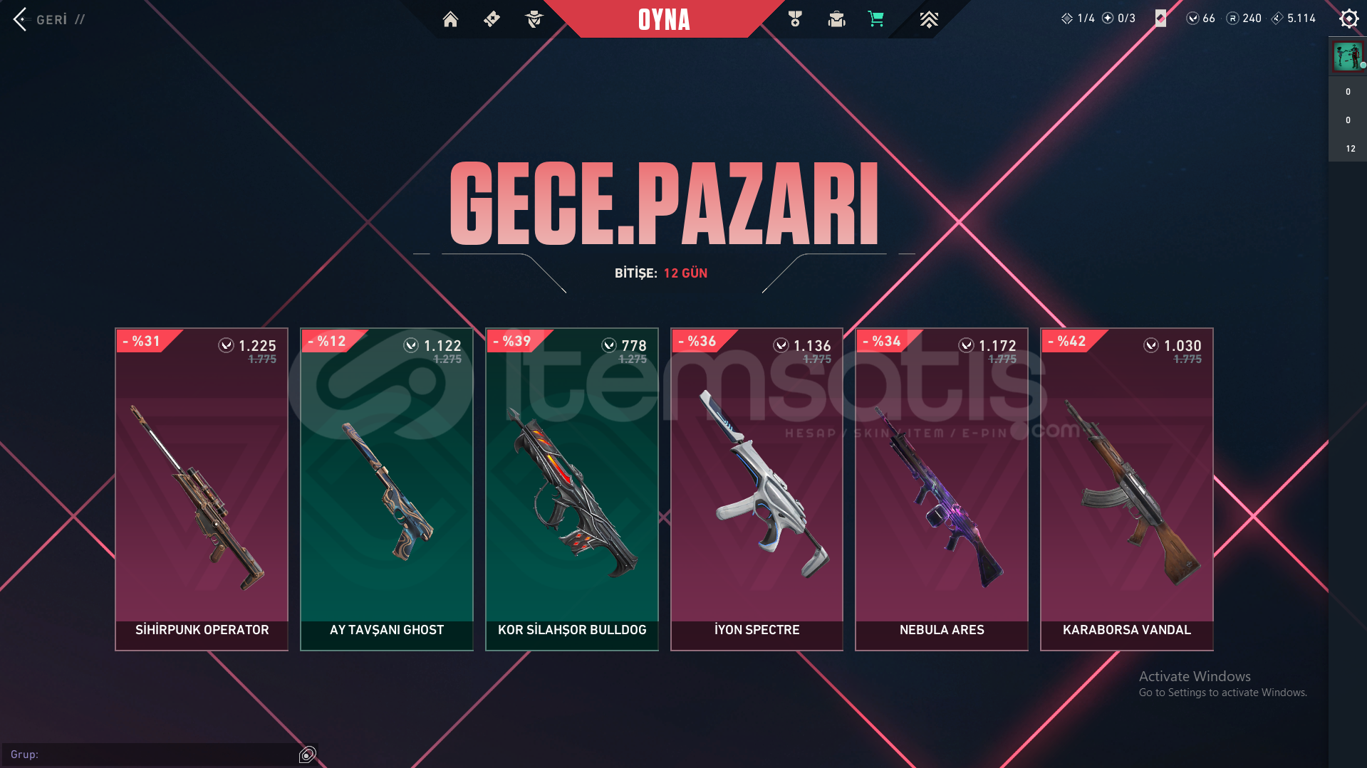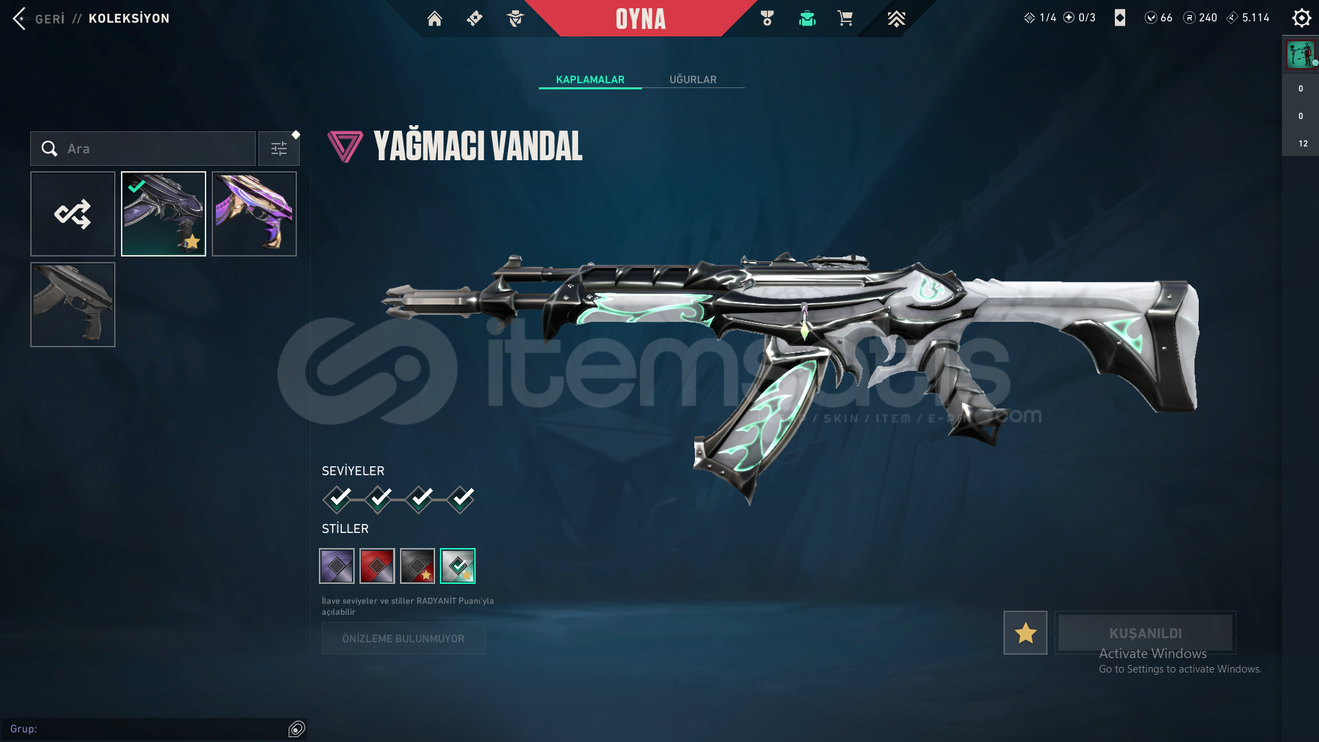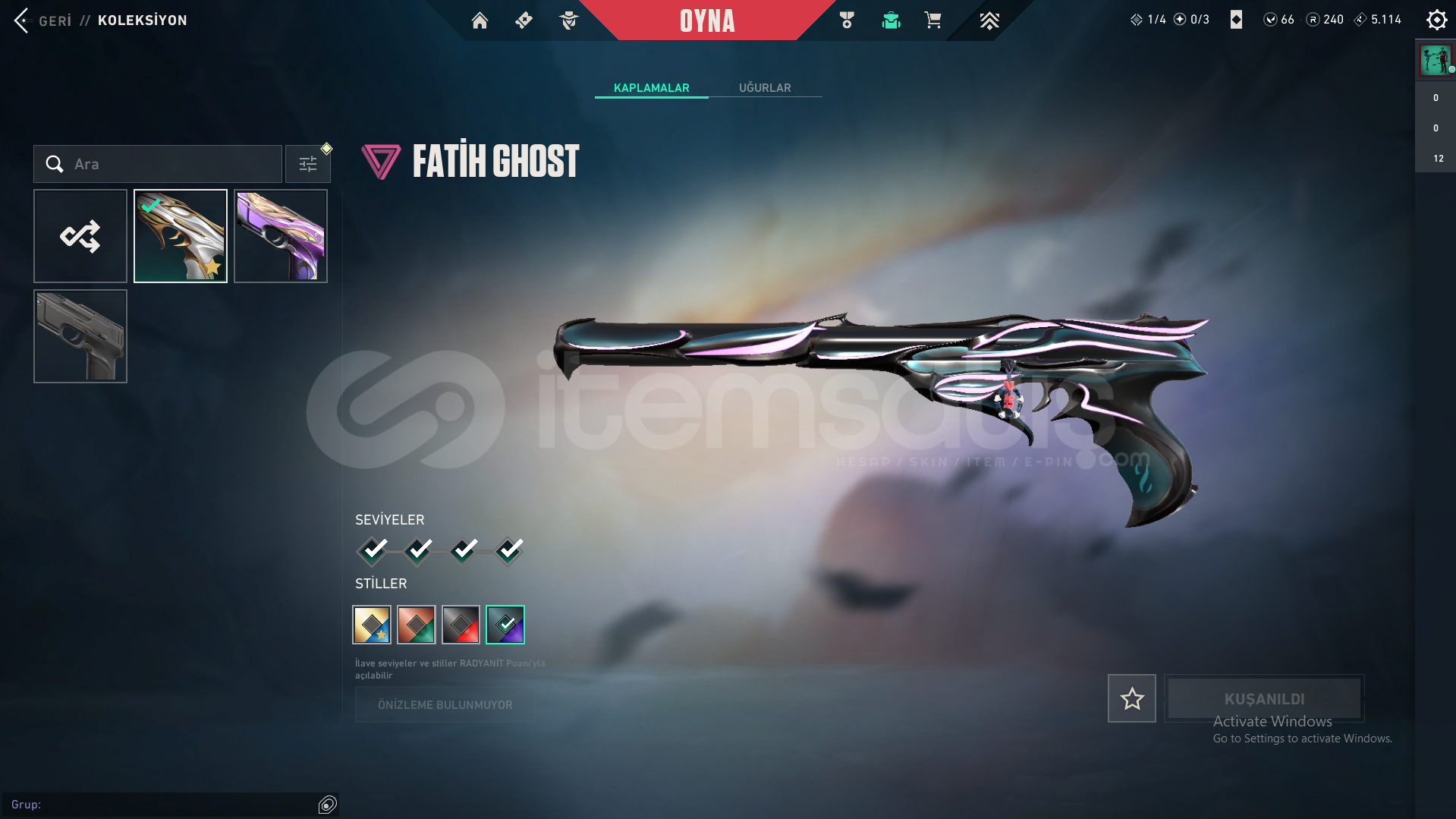 HESAPTA YAĞMACI VANDAL, FATİH GHOST VE 1 ADET BATTLEPASS BULUNMAKTADIR