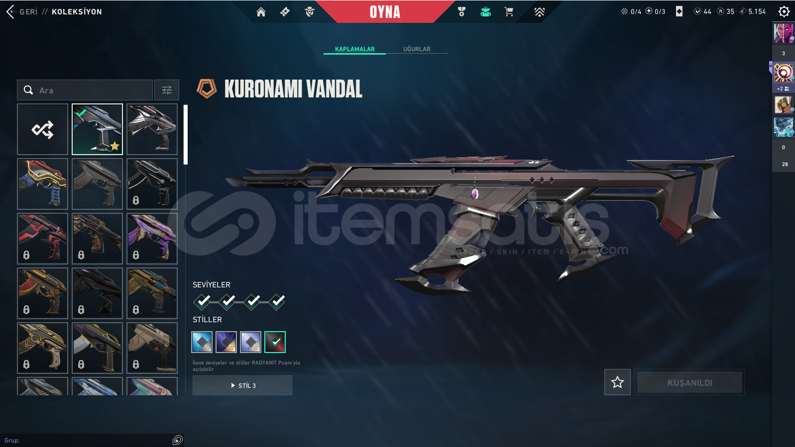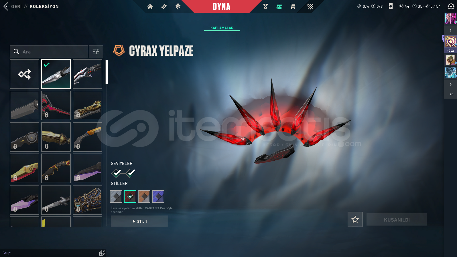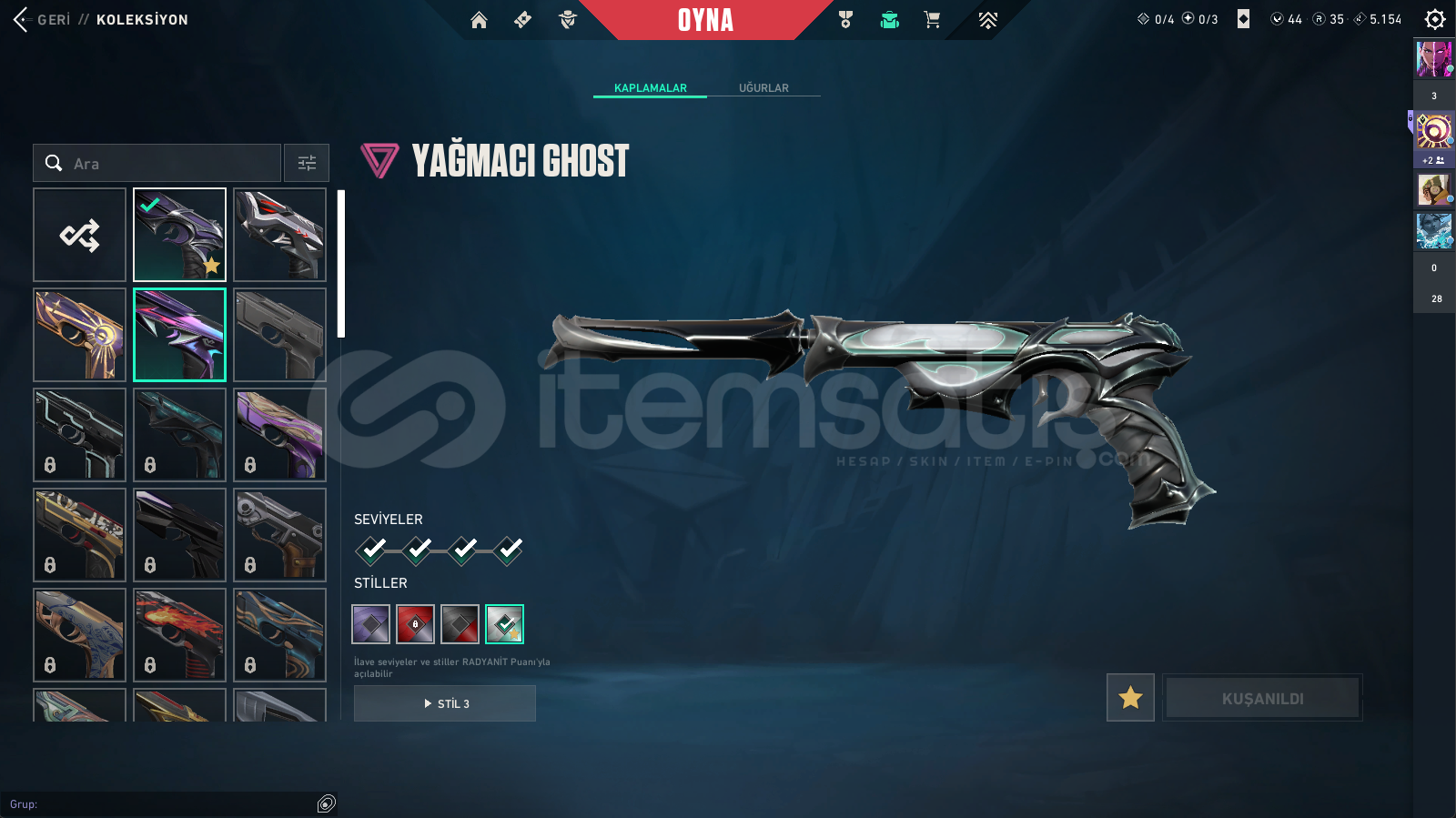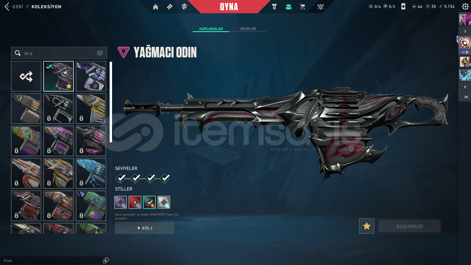 hesapta:kuranami vandal,oni vandal,neptün phantom,yağmacı ghost,yağmacı odin,cyrax yelpaze ve battel pass skinleri mevcuttur gold elodur peek rankı dia1