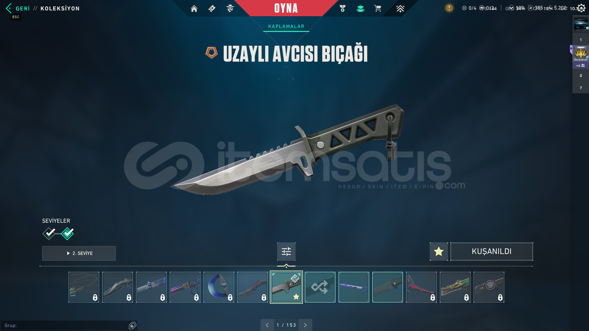 Hesabın İçinde Kuronomi VandalChampions 2024Uzaylı Avcısı Bıçak1 Adet BattlepassHesab 105 seviyeHızlı Olan Alır