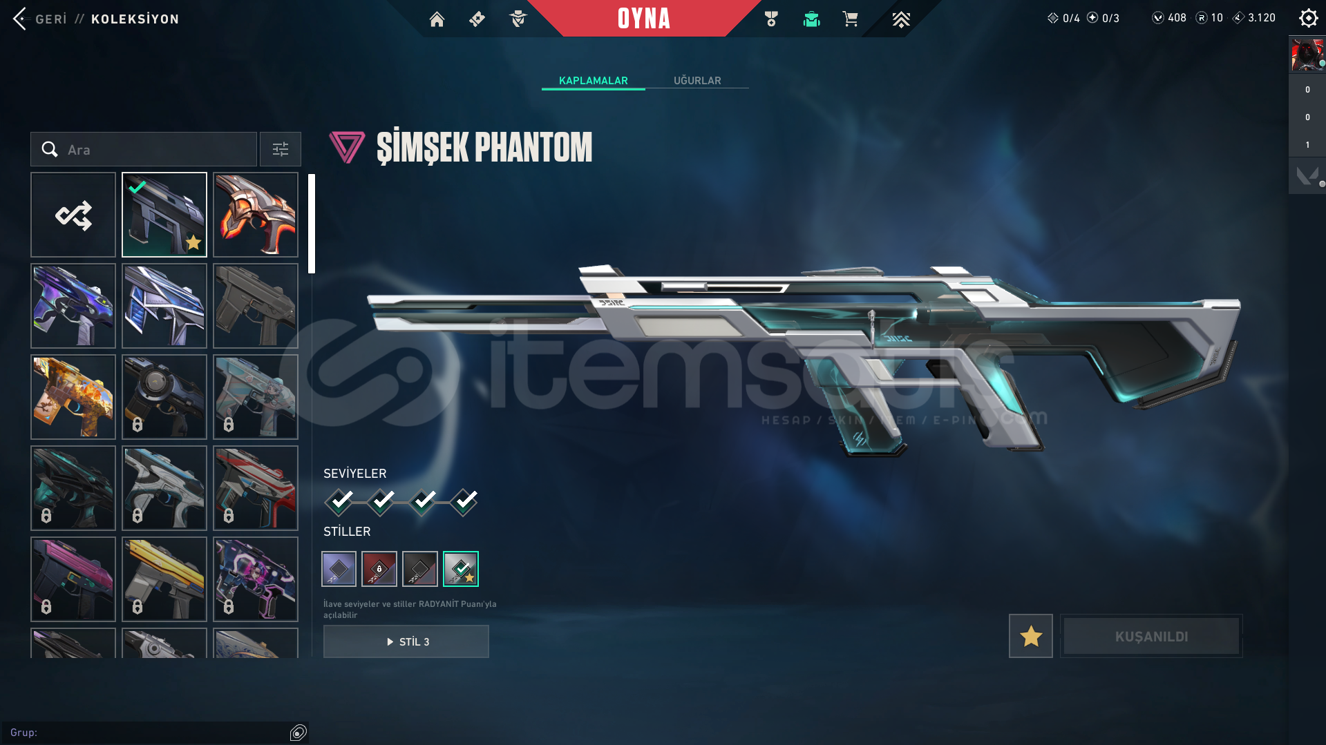 HESAP TANITIMI: https://youtu.be/-o8uBwyuSX0​🎮SKİN İÇERİĞİ:🩵​TABANCA:ALTŞEHİR CLASSİCFAZ KORUYUCU GHOST​💚BIÇAK:SIRÇİÇEĞİ KUNAİ BIÇAĞIFAZ KORUYUCU BIÇAĞIGAİA'NIN GAZABI BIÇAĞI❤️​VANDAL:GAİA'NIN İNTİKAMI VANDALFAZ KORUYUCU VANDALYAĞMACI VANDAL🩷PHANTOM:ŞİMŞEK PHANTOM&#...