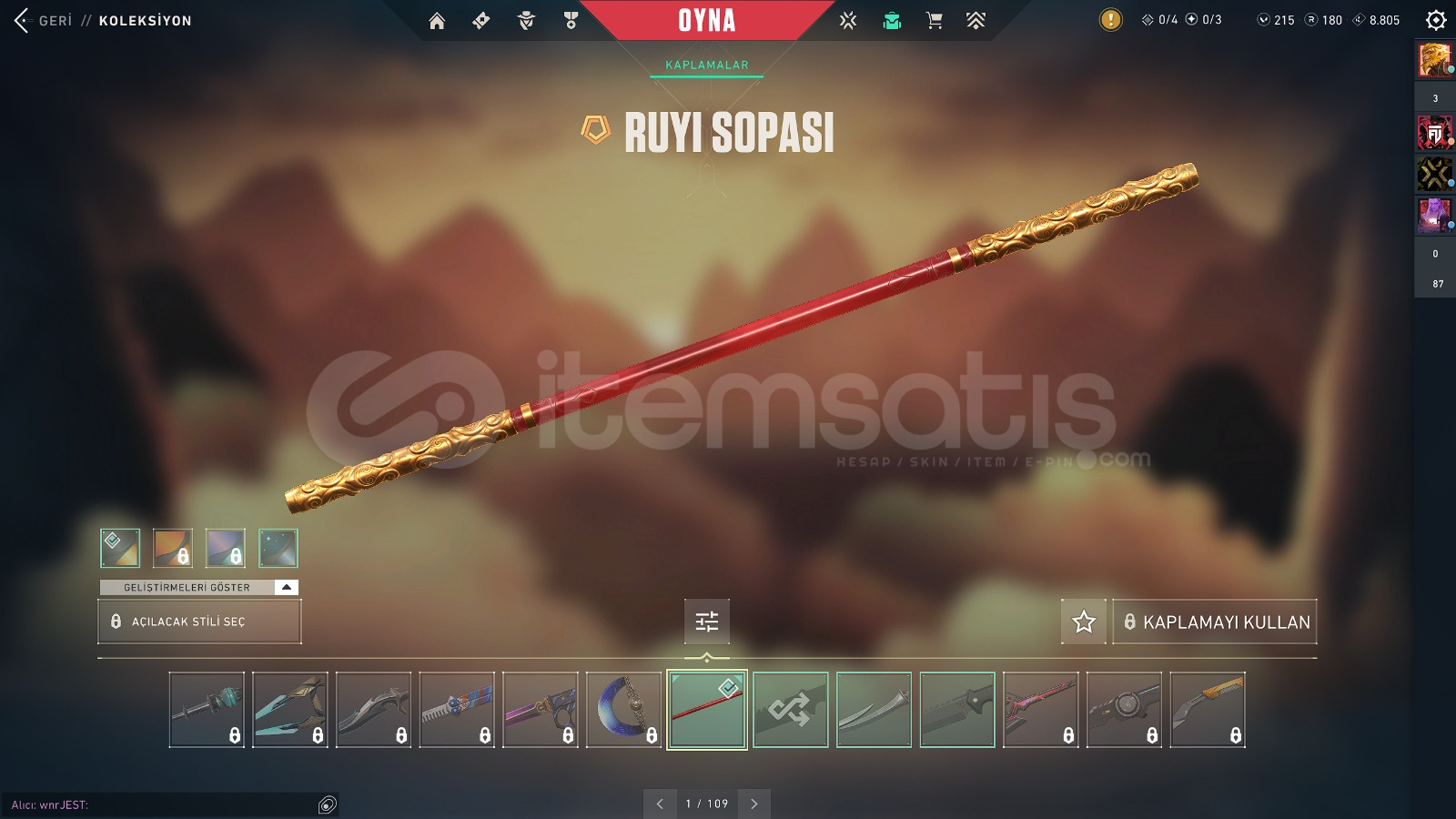 HESABIN İÇİNDE GÜNCEL OLARAK 215 VP 180 RP BULUNMAKTADIR.