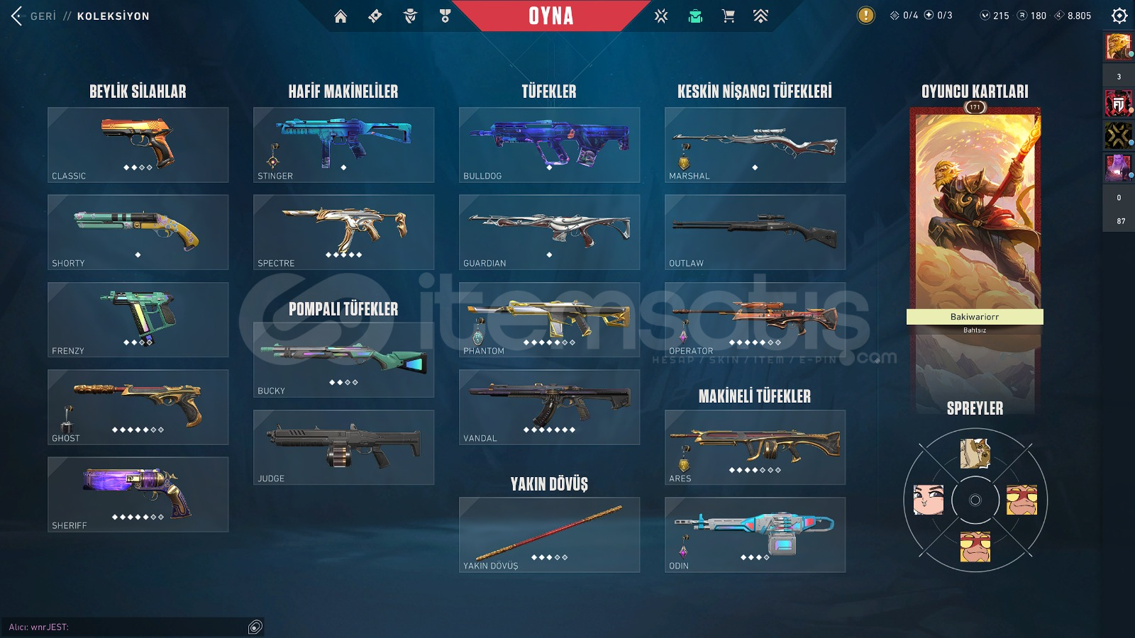 Hesap 178 Leveldir E-Posta Değişimi Yapılacaktır. _-İÇERİĞİ-_Cesur Yürek Full SetKaos VandalAsil 2.0 PhantomSeri Tetik SheriffYağmacı GhostYitik Spectre2. Bölüm 3. Kısım Battle Pass Tüm Skinleri Mevcuttur----------------------SKİN YÜKSELTMELERİ FULL'DÜR HESAP ESKİ PLATİN HESABIDIR UĞURLUKLARI MEVCUTTUR.Şansı Boldur Marketi Gece Pazarı vs. Genelde Üzmez.HES...