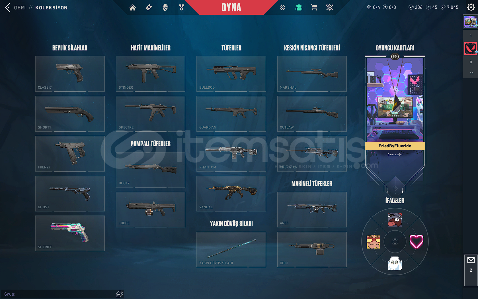 Hesapta 236 Vp 45 Radyanit Puanı Mevcuttur.Hesabı Satın Alan Kişiye Hesabın Maili Devredilecek, Mail'i Değiştirebilirsiniz.Hesabın Telefon Numarası Kayıtlıdır Premier Oynayabilirsiniz.Hesap Level'i 174tür ve Peak Rankı Yüceliktir.Hesapta Toplam 8 Silah 1 Bıçak Skini Mevcuttur .Temiz Hesaptır Alıcısına Hayırlı Olsun.İyi Oyunlar, İyi Eğlenceler!
