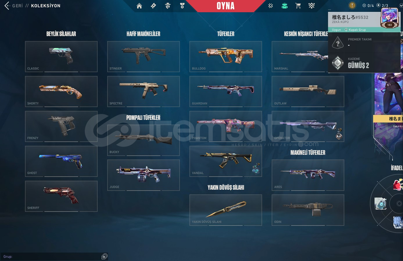 #Fırsat HesabıHesap Hakkında Bilgi;Mail Teslim |Champions 2025 Set + Yağmacı Vandal + Anomali Sheriff + Işık Muhafızı Op + Yağmacı Karambit + Hesap Gümüş 2Hesap 183 LevelHesapta 630 Radiant Puanı VarHesapta 540 VP VarHesabı dilediğiniz gibi kullanabilirsinizSatın alırken video kayıdı açmayı unutmayın