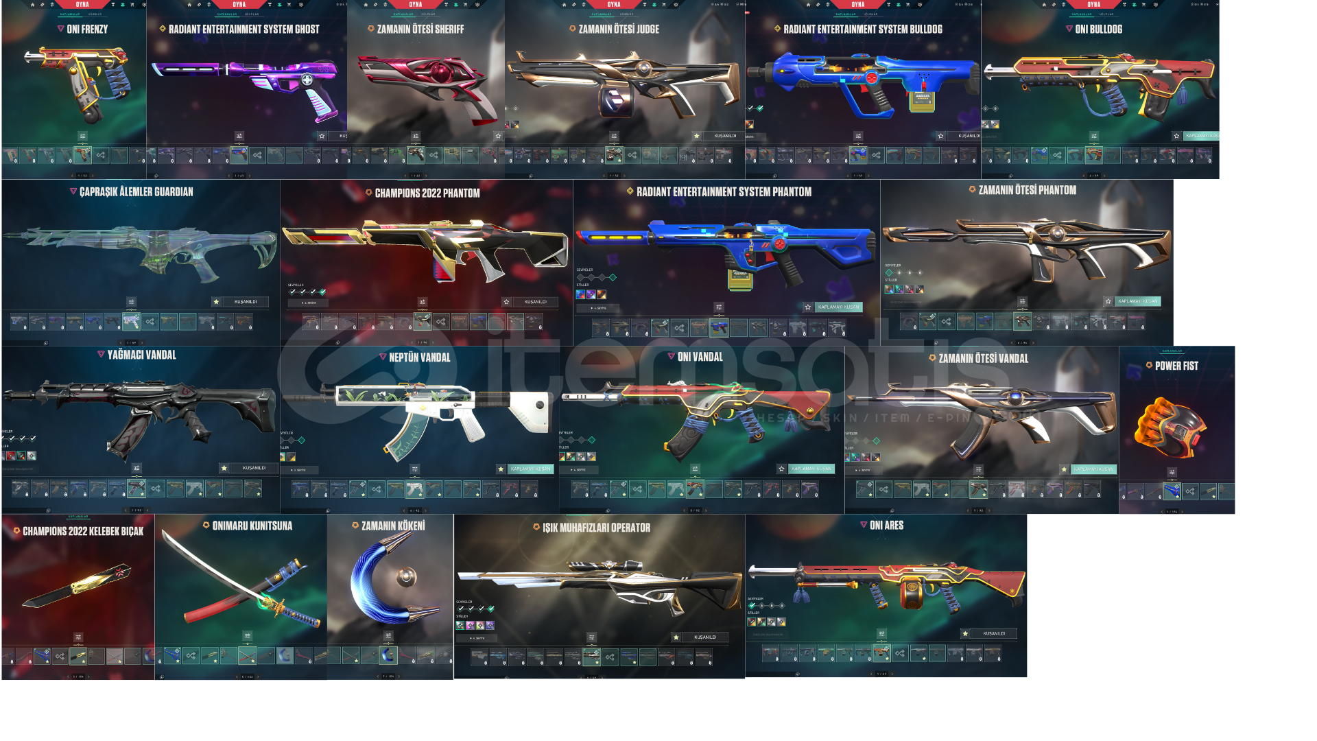 Champ 22 SET R.E.S SET CHRONOVOİD SET ONİ SETHESAPTA4 set bulunur ve ekstra skinler vardır çok değerli olan champions 2022 seti vardır mainlemeliktir