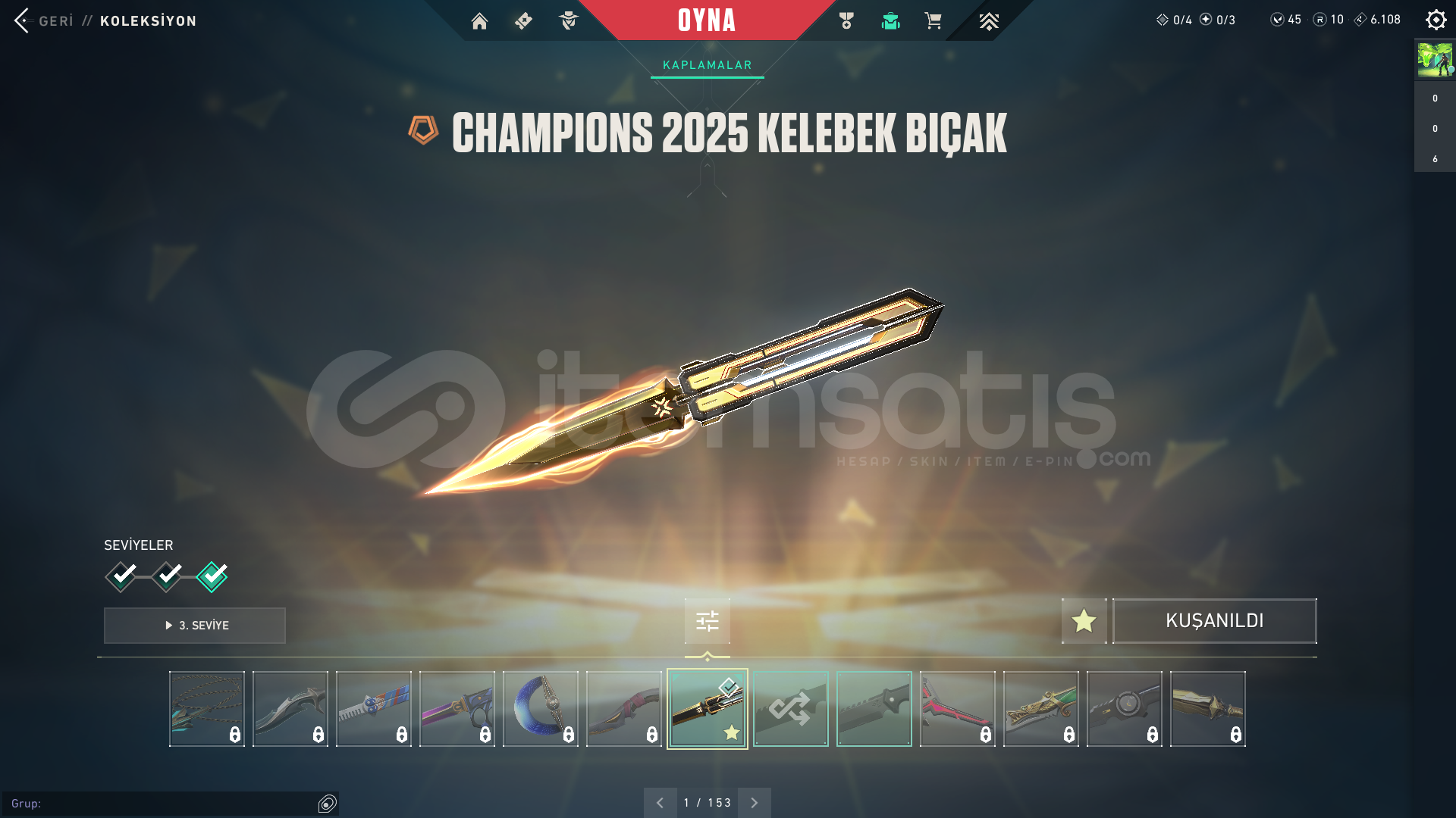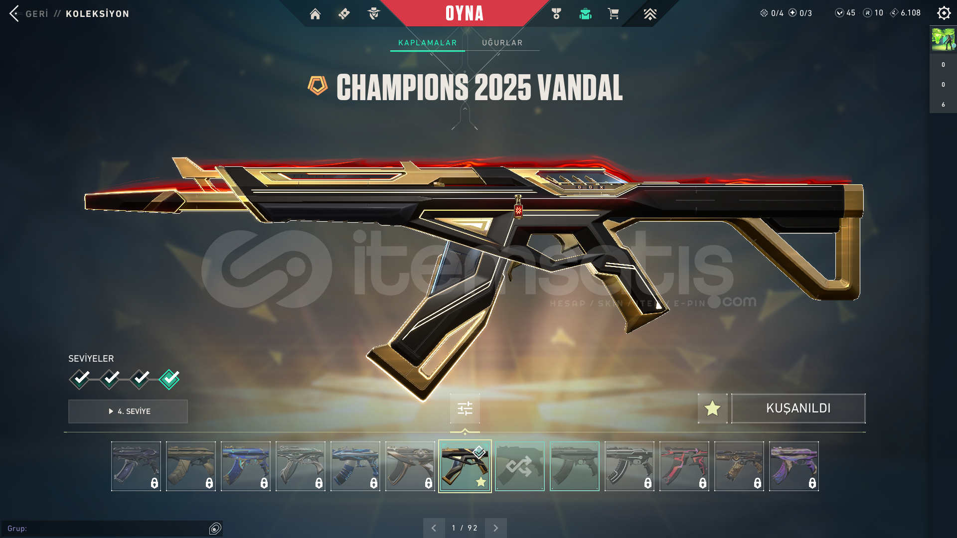 HESAP RESİMDEKİ GİBİDİRHesaptaki ÜCRETLİ Skinler:ㅤChampions 2025 KelebekChampions 2025 VandalGaia PhantomFatih GhostYağmacı Sheriff Erişim ve E-Posta Bilgileri:Satın alma işlemi tamamlandıktan sonra, tarafınıza sağlanan kullanıcı adı şifre giriş yapabilir ve ardından kendi e-posta adresinizle güncelleme yapabilirsiniz.ㅤGüvenlik ve Kontroller:Tüm hesaplar, tes...