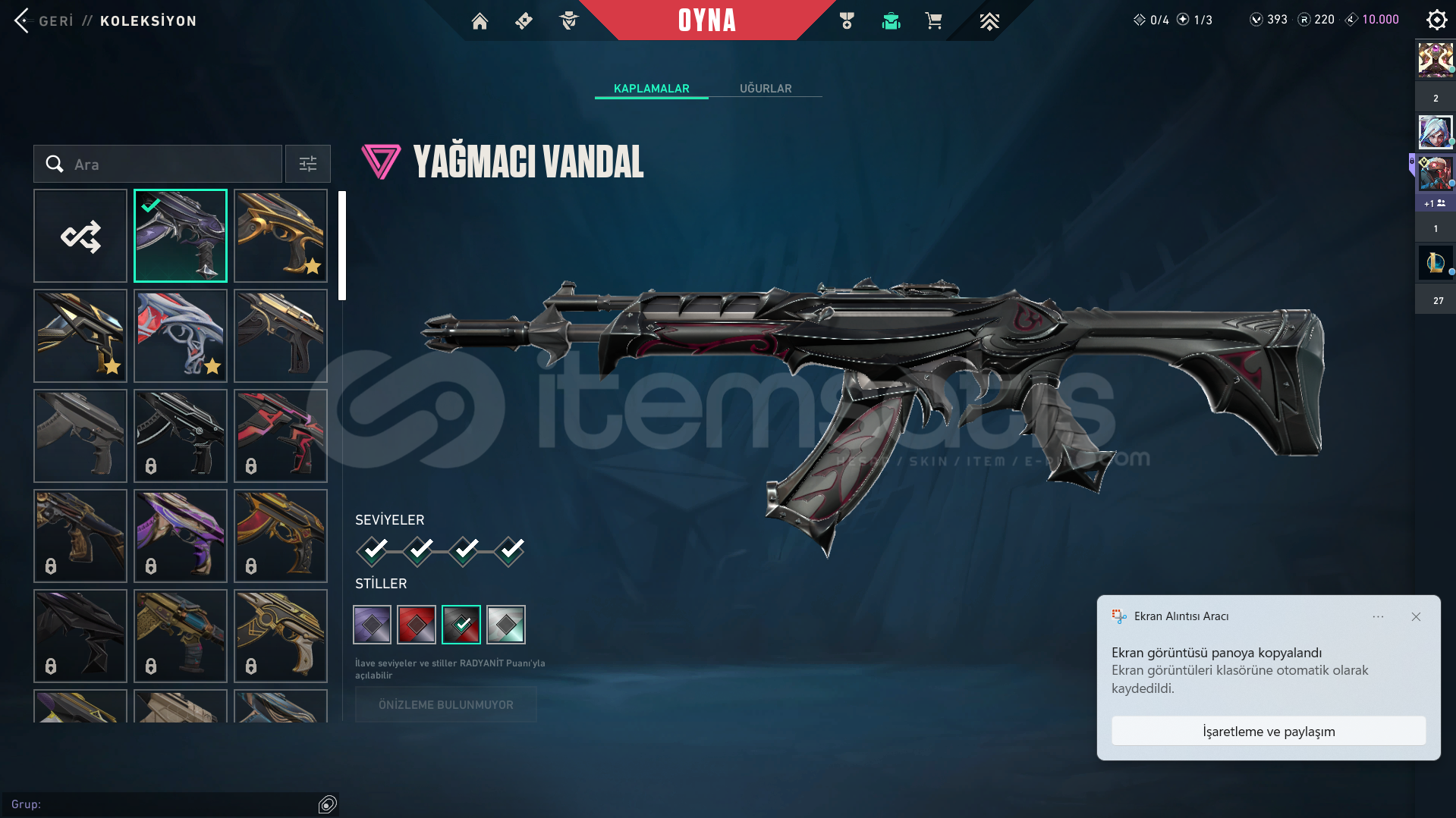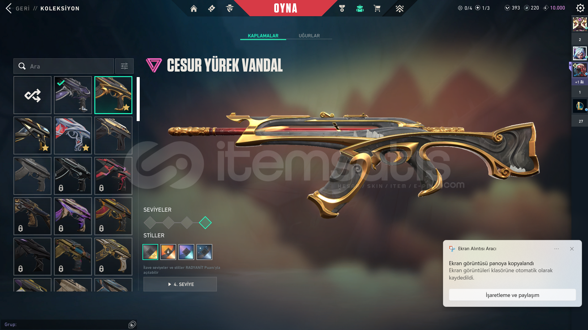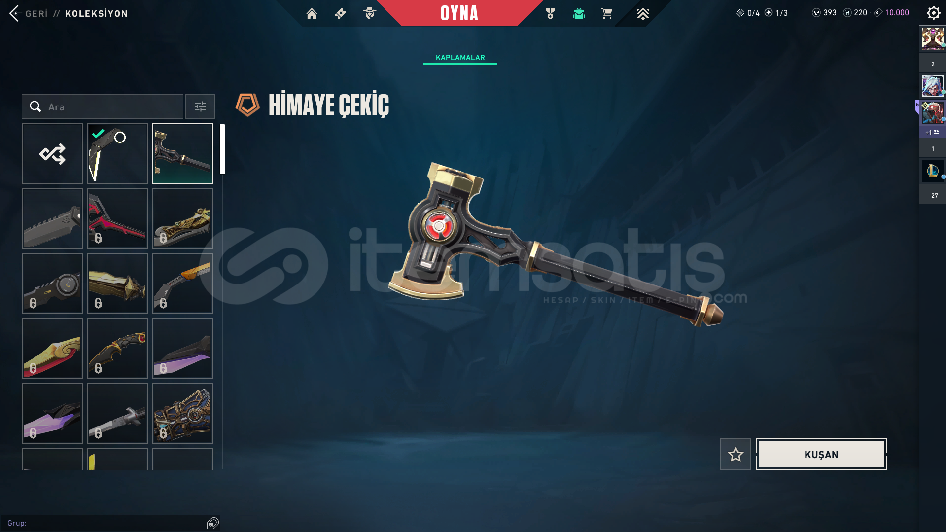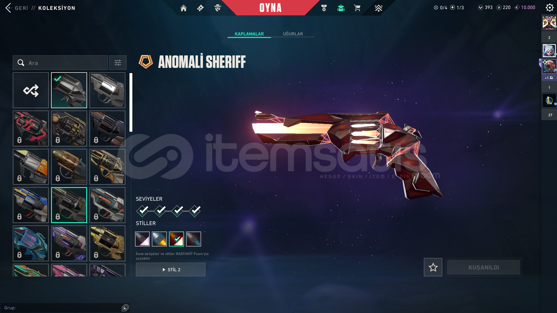 SKİNLER: CHAMPİONS 2025 YAĞMACI GAİA CESUR YÜREK VANDAL ÖZEL HAREKAT PHANTOM ANOMALİ SHERİFF MİNİMA KARAMBİT HİMAYE ÇEKİÇ
