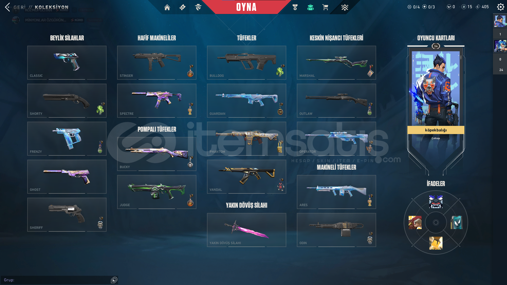 Valorant hesabı Bronz 3 rankta. Champ 25 Vandal, Oni Phantom ve Dolmur’un Adaleti mevcut. ban riski yok. Mail değişimi yapılacak, güvenli teslimat sağlanır ✅