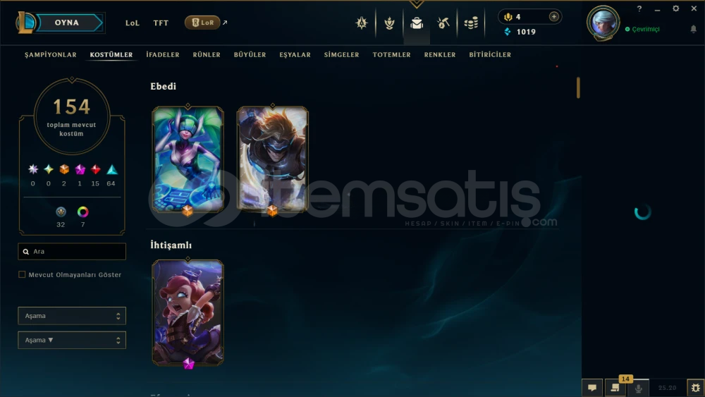 LOL HESABI +150 KOSTÜM DOLU DOLUDUR.