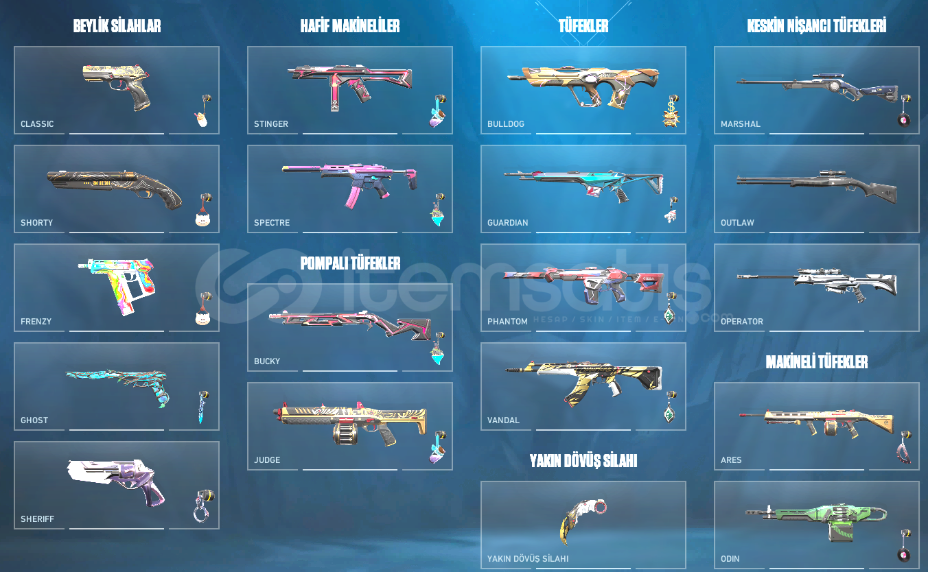 FOTOĞRAFLARDA TÜM SKİNLER GÖZÜKMEKTEDİR EKSTRA OLARAK ÇAPRAŞIK ALEMLER GHOST BULUNMAKTADIR KALANLARI BATTLEPASS ANİMASYONLARINDAN OLUŞMAKTADIR.