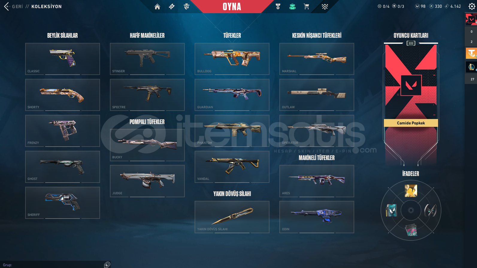 Hesabım dolu olup güzel skinler mevcuttur. 6.355TL 'lik hesapdır. SS i mevcuttur. Evrim full seti mevcuttur. Champion 2025 Seti mevcuttur. Classic: Asil ile Evrim Ghost: Yağmacı ile Ulupençe Sheriff: RGX Judge: Evrim Phantom: Gaia ile Yıldız Belası Vandal: Asil, Evrim ile Soğuk Çelik, Champion 2025 Operatör: Evrim Bıçak: BP Bıçakları , Asil Karambit, Yoru Kelebek Tarak, Champion 2025 Kelebek ile Evrim As...