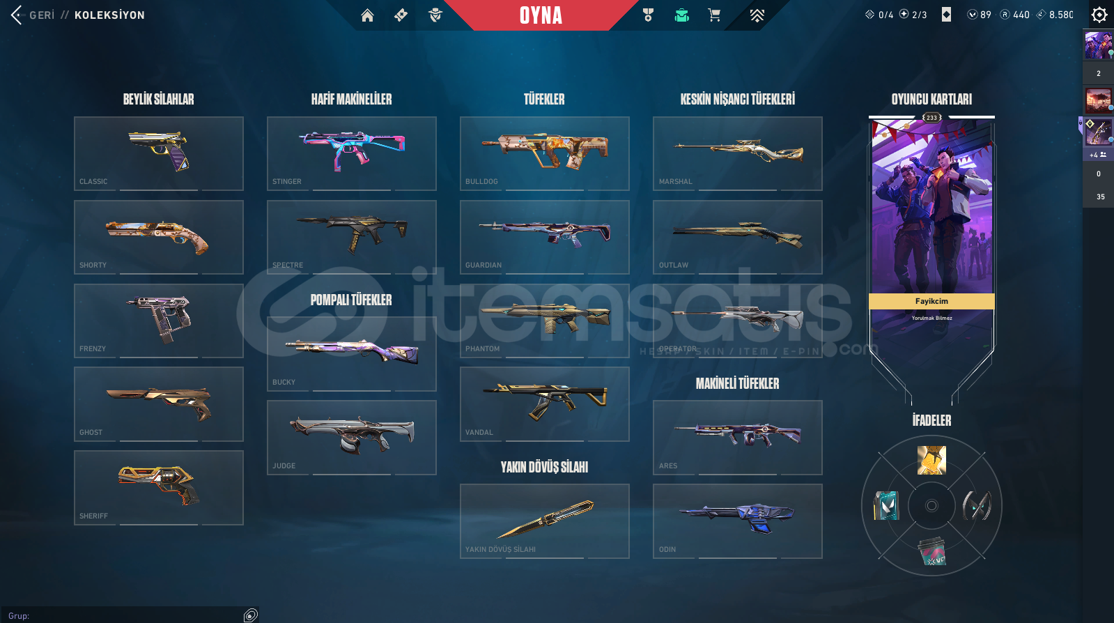 Hesabım dolu olup güzel skinler mevcuttur.