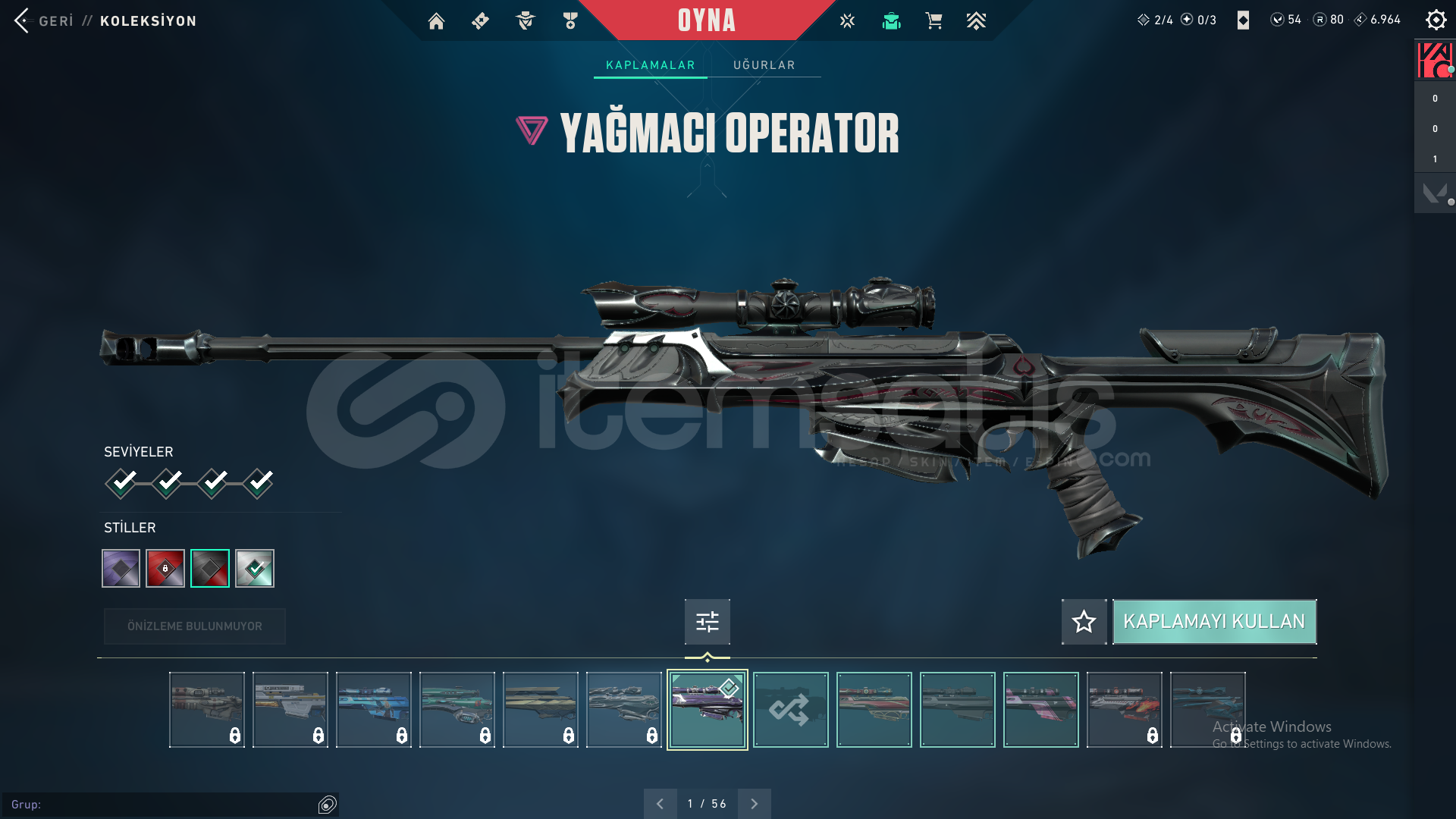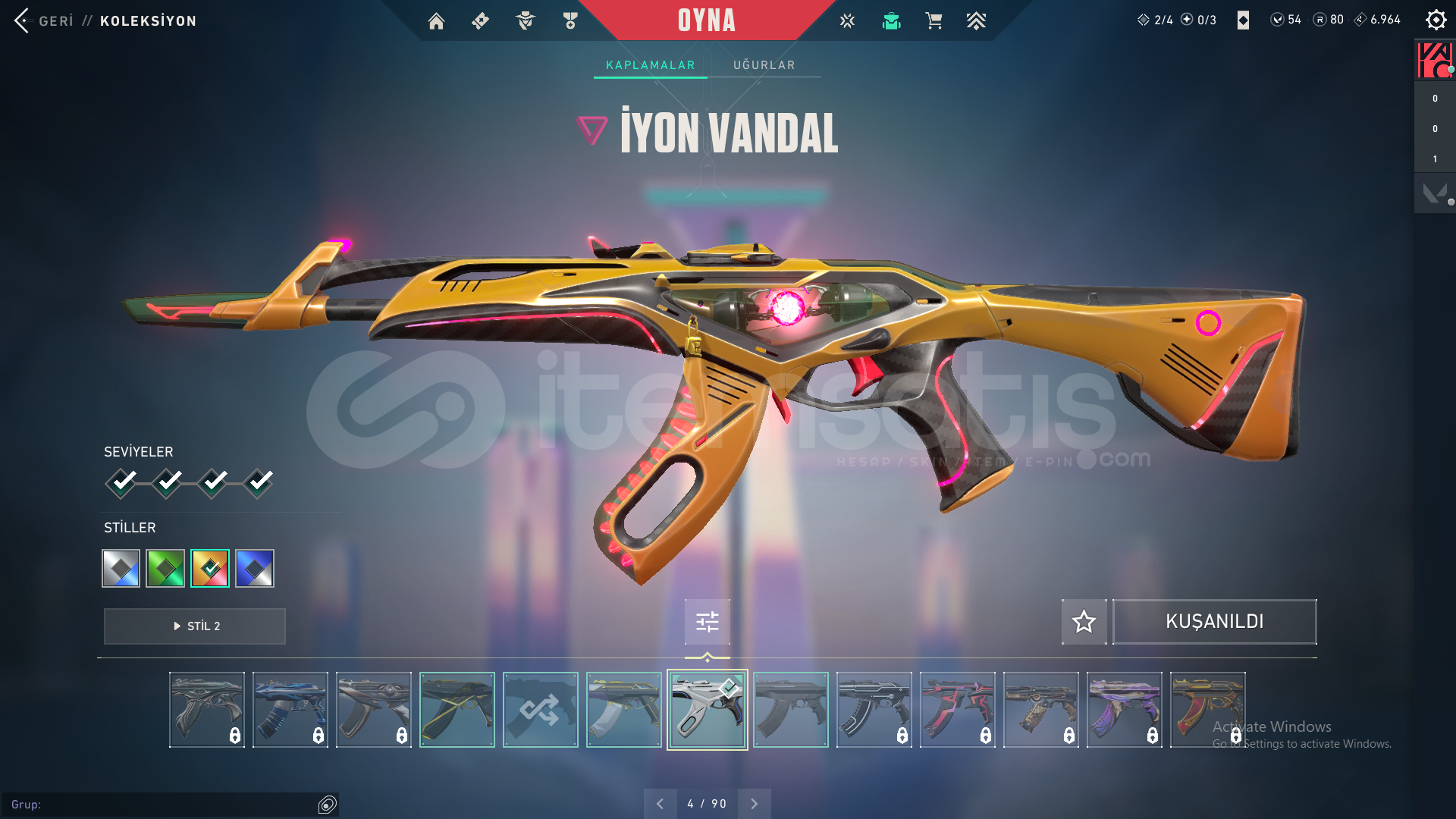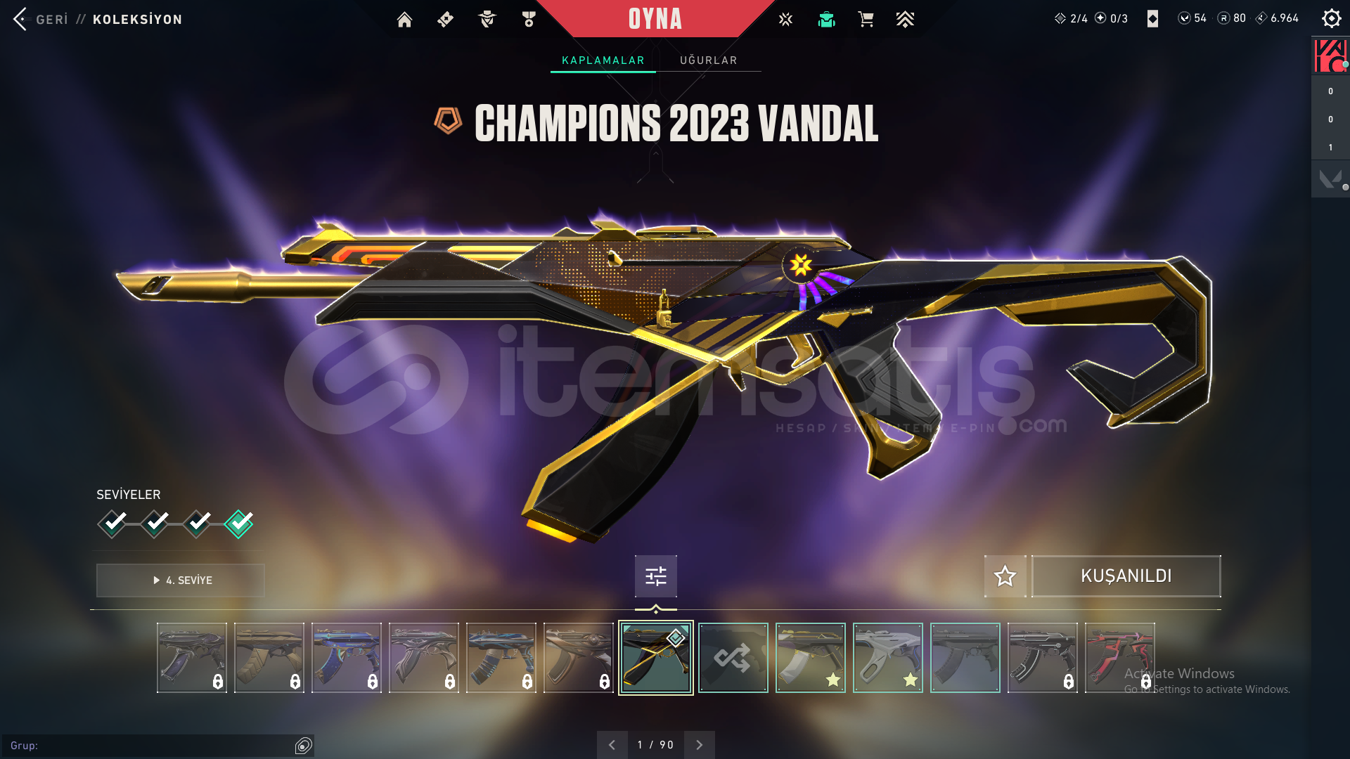 -Champions 2023 Vandal-Asil Vandal-İyon Vandal-SihirÇakı-Champions 2023 Kunai-Uzaylı Avcısı Bıçağı-Yağmacı Operatör-Yapmacı Sheriff-Oni Phantom-Altşehir PhantomHesap 97 leveldir.Fiyatt kesinlikle son fiyattır herşey hesaplıdır pazarlığa indirime kapalıdır.