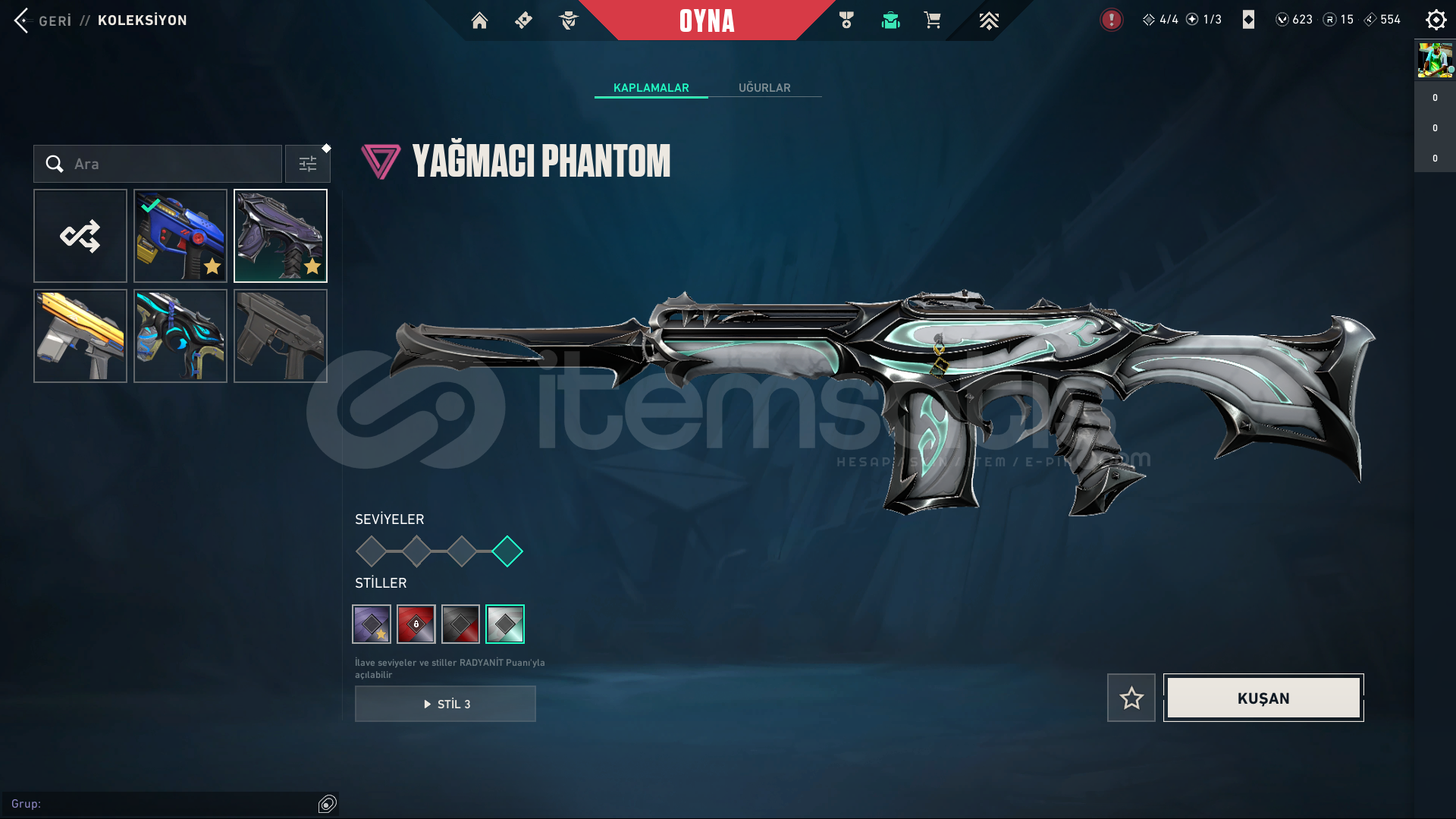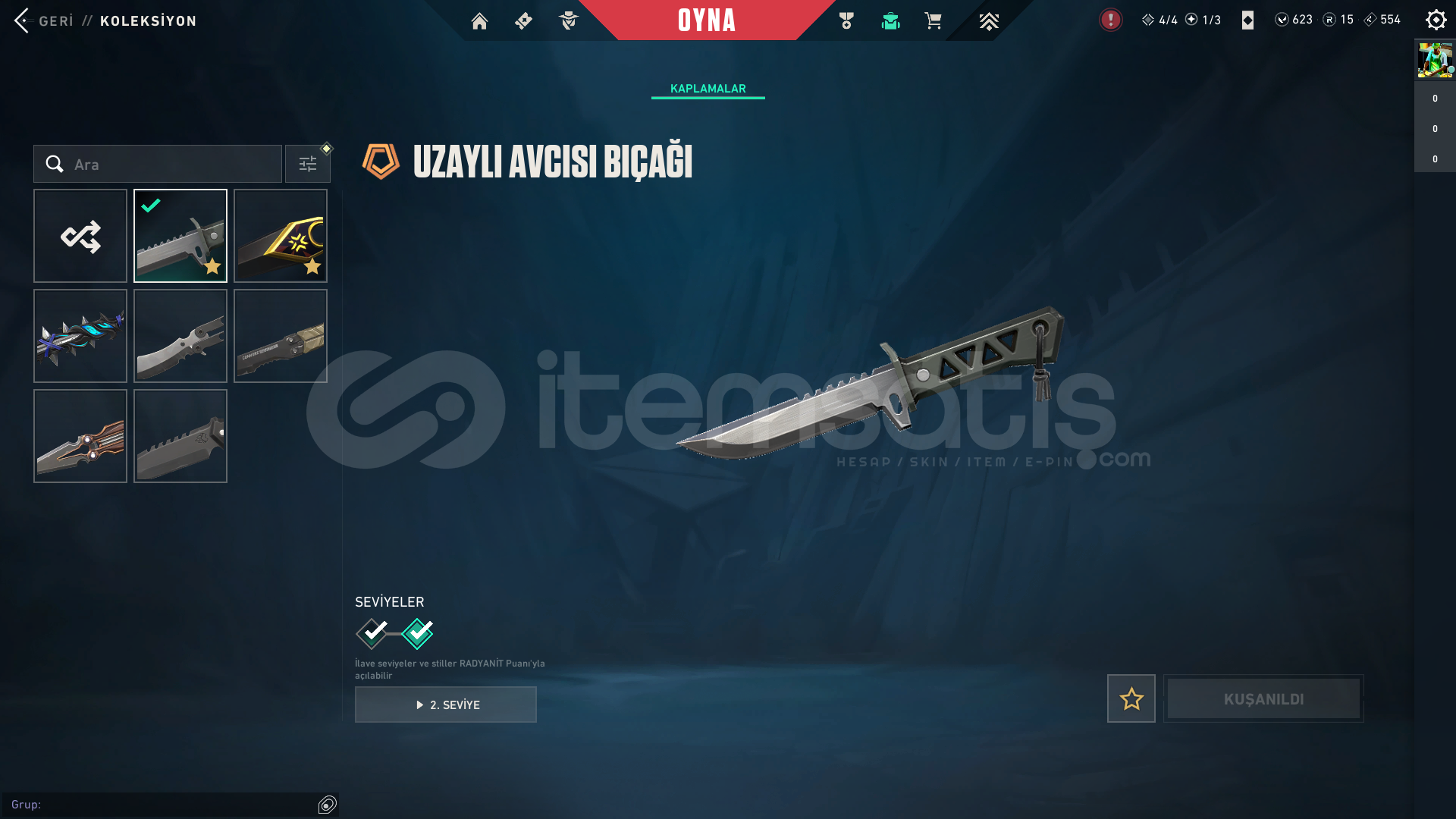 2023 CHAMPİONS KUNAİ + UZAYLI AVCISI BIÇAĞI + KARABORSA KELEBEK + ÖZEL HAREKAT KELEBEK +SİHİRÇAKI MAX SEVİYEDİR HEPSİ.2023 CHAMPİONS VANDAL + ASİL VANDAL + RGX 11 PRO VANDAL + IŞIK MUHAFIZLARI VANDAL + MAX SEVİYEDİR HEPSİ ÇOĞU RENKLERİ AÇIKTIR.YAĞMACI PHANTOM + RADİANT ENTERTAİNMENT SYSTEM PHANTOM + MAX SEVİYEDİR ÇOĞU RENKLERİ AÇIKTIRGA...