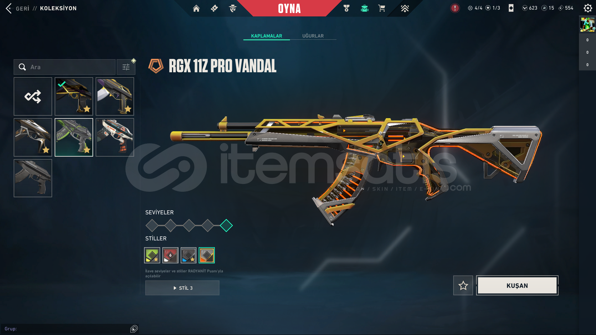 2023 CHAMPİONS VANDAL + ASİL VANDAL + RGX 11 PRO VANDAL + IŞIK MUHAFIZLARI VANDAL + MAX SEVİYEDİR HEPSİ ÇOĞU RENKLERİ AÇIKTIR.