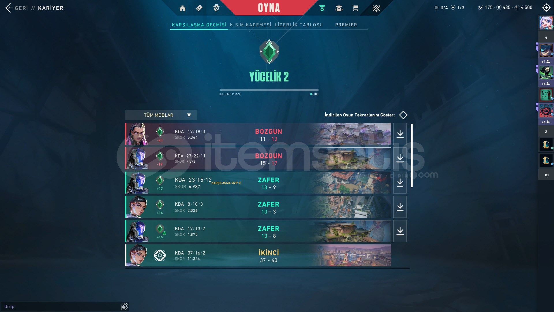 Hesabı kısım 2 bölüm 5'te açmışım. O günden bugüne 54 skin topladım. Hesap Yücelik 2 40kp. İçinde 175vp 435rp var. 2 battlepass ve 14 skin aldım. Motor cezamı ödemek için satıyorum. Mail değişimi yapıcaz yeni sahiine hayırlı olsun.ücretli skinler* spektrum pha radıant entertaıment pha özel harekat pha champ23 vandal zamanın otesı vandal ...