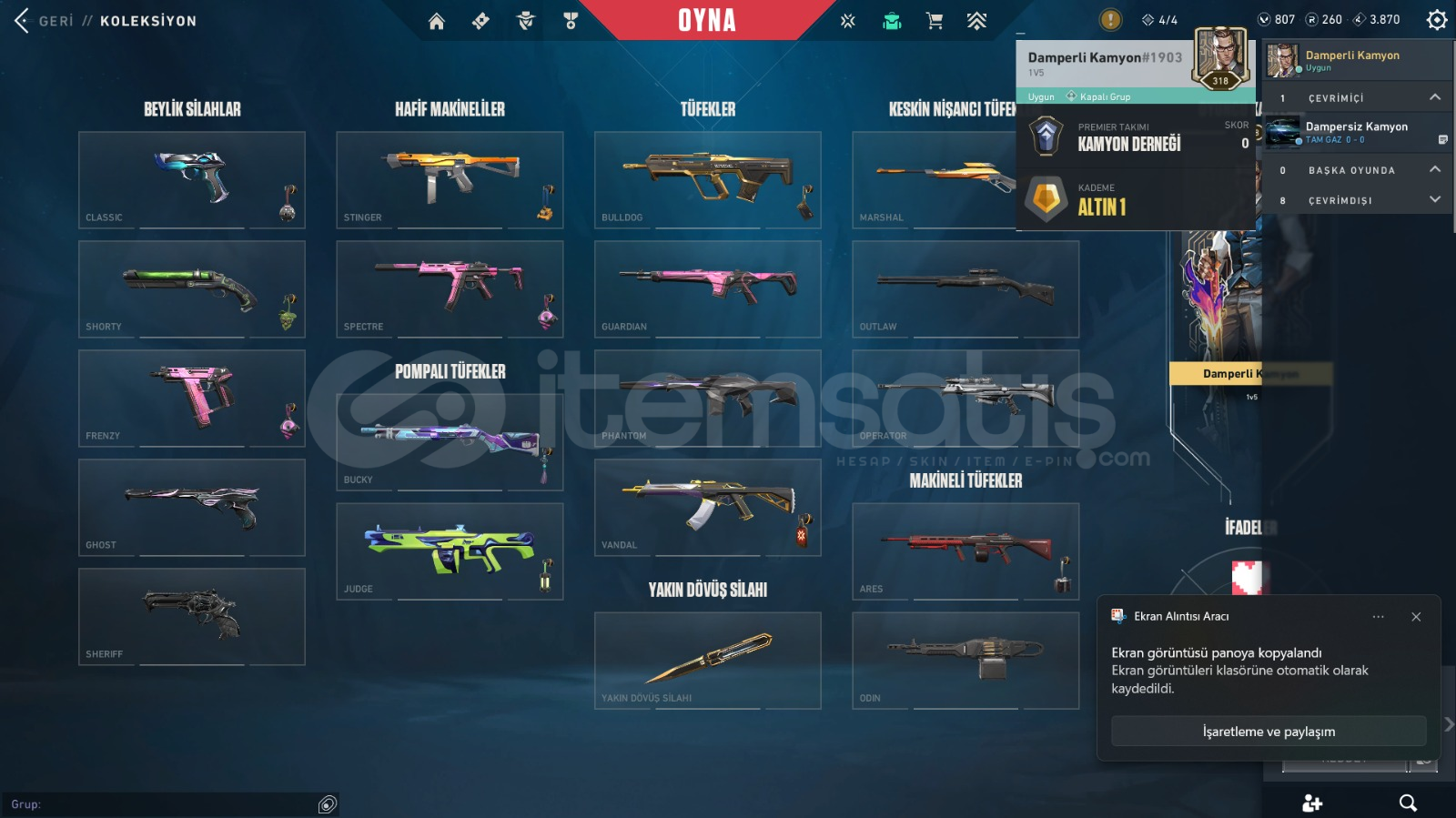 öncelikle merhaba hesabı ihityaçtan dolayı satmaktayım hesabta;Champions 2023 VandalChampions 2025 full setAsil VandalGaia VandalKaos VandalYıldız Belası VandalEjder VandalCesur yürek VandalAnomali PhantomYağmacı OpYağmacı SherifSır çiçeği SherifFatih GhostUzaylı avcısı BıçakChampions 2025 BıçakVe bi kaç tane savaş bileti bulunmaktadır.Ekstra olarak 8...