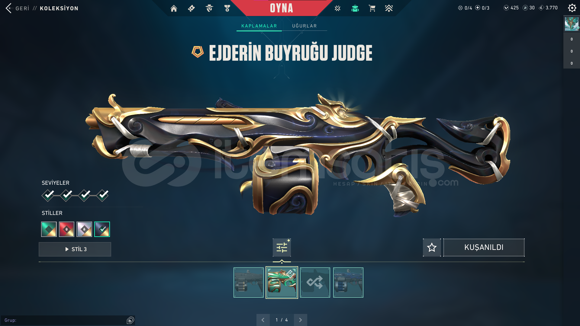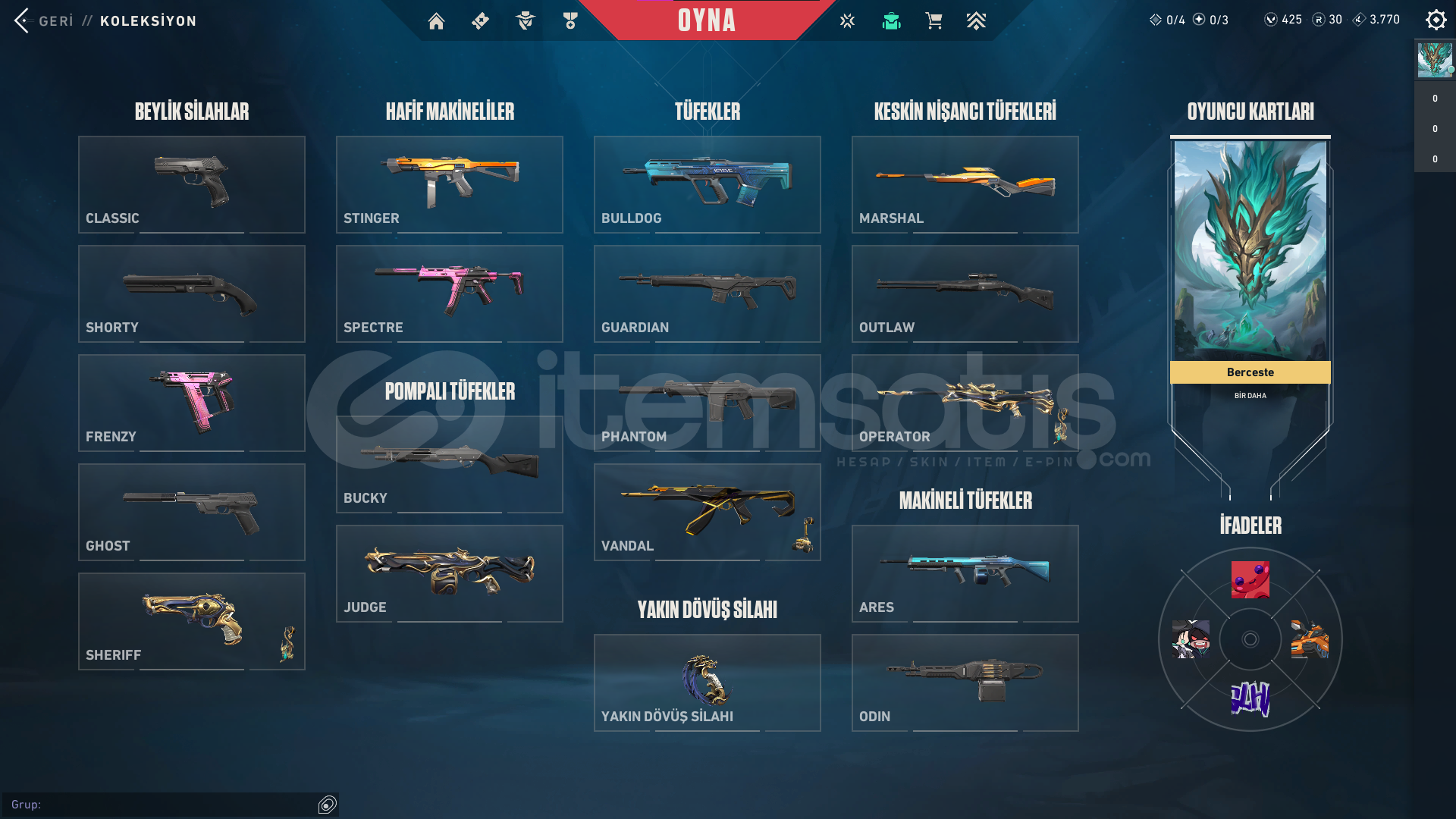 ⭐ Hesabın içinde Ejderin Buyruğu Bıçakları , Champions 2023 Vandal , Ejderin Buyruğu Vandal , Ejderin Buyruğu Sheriff , Ejderin Buyruğu Operator , Ejderin Buyruğu Judge gibi skinlerle toplamda 16 skin bulunmaktadır.