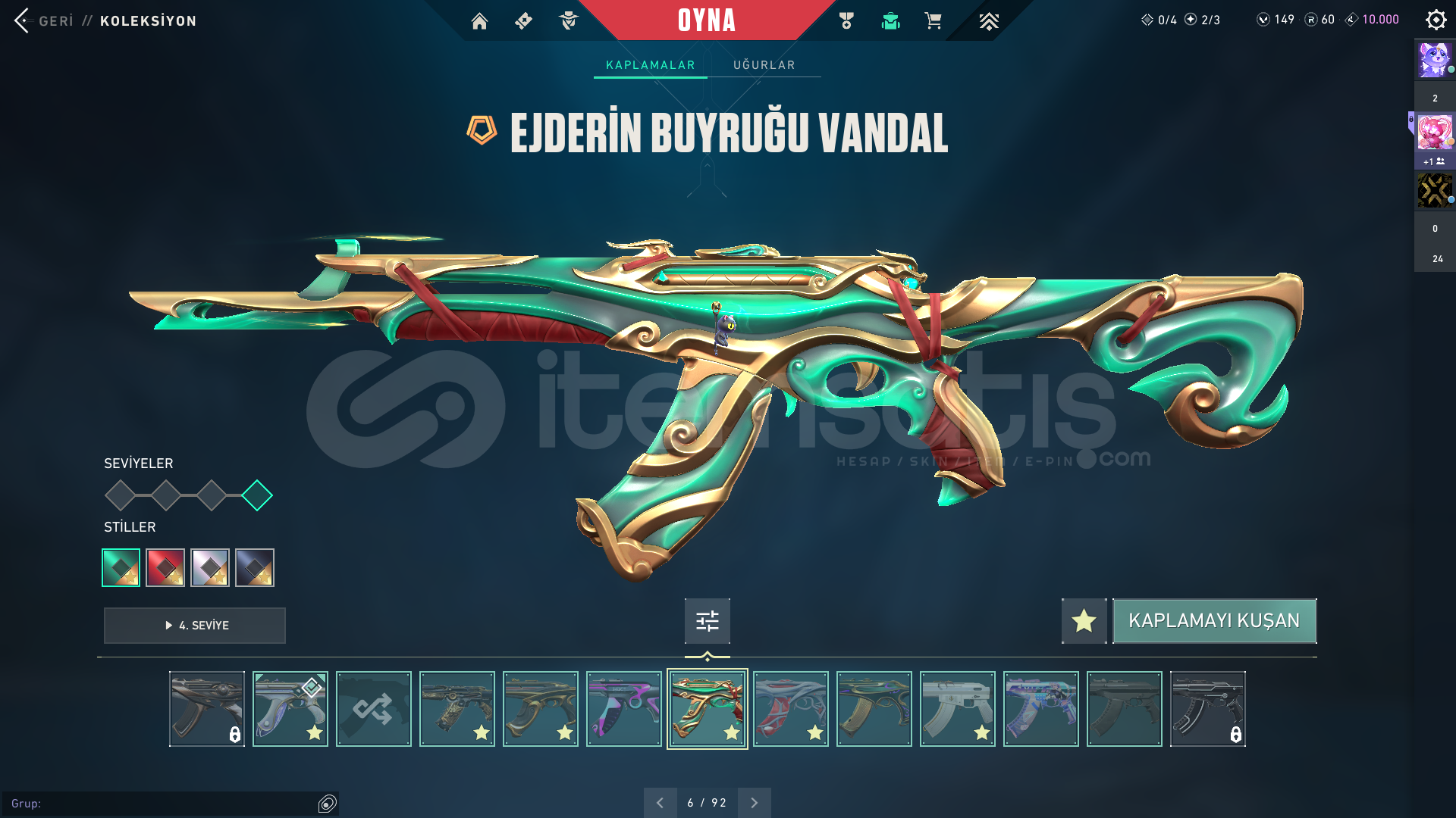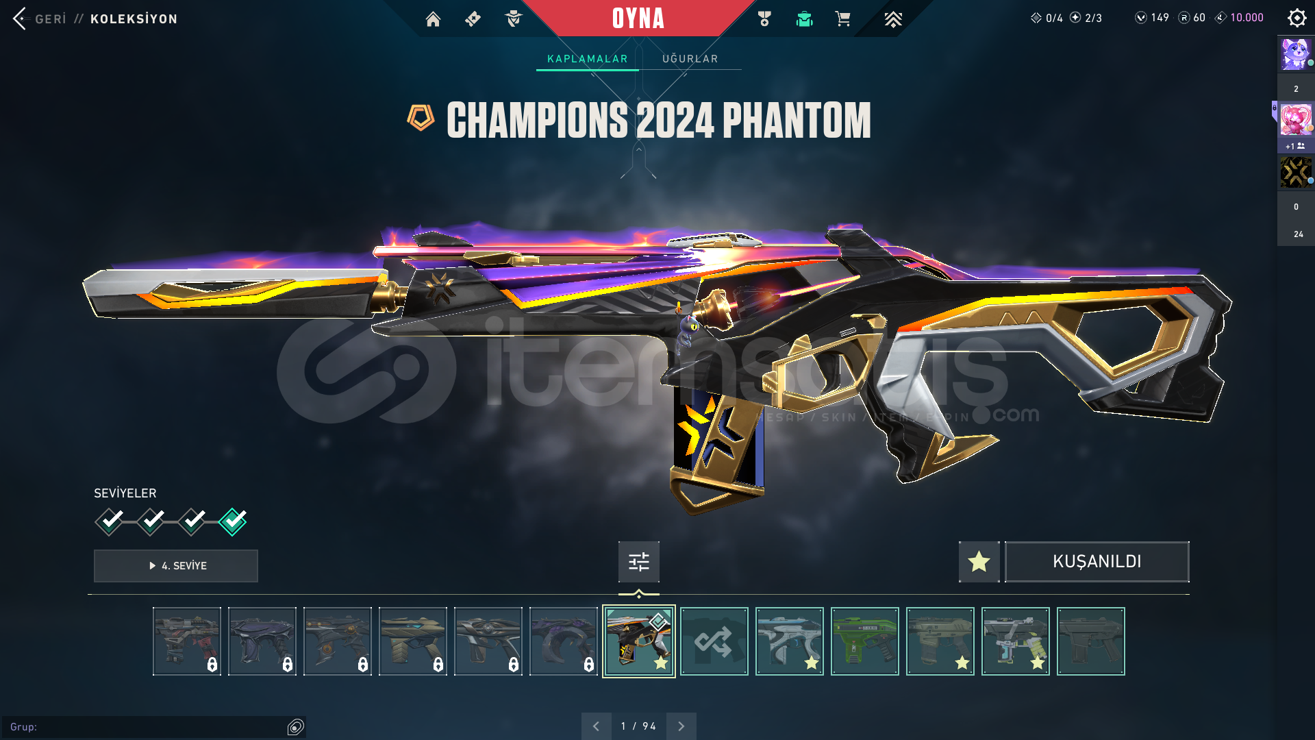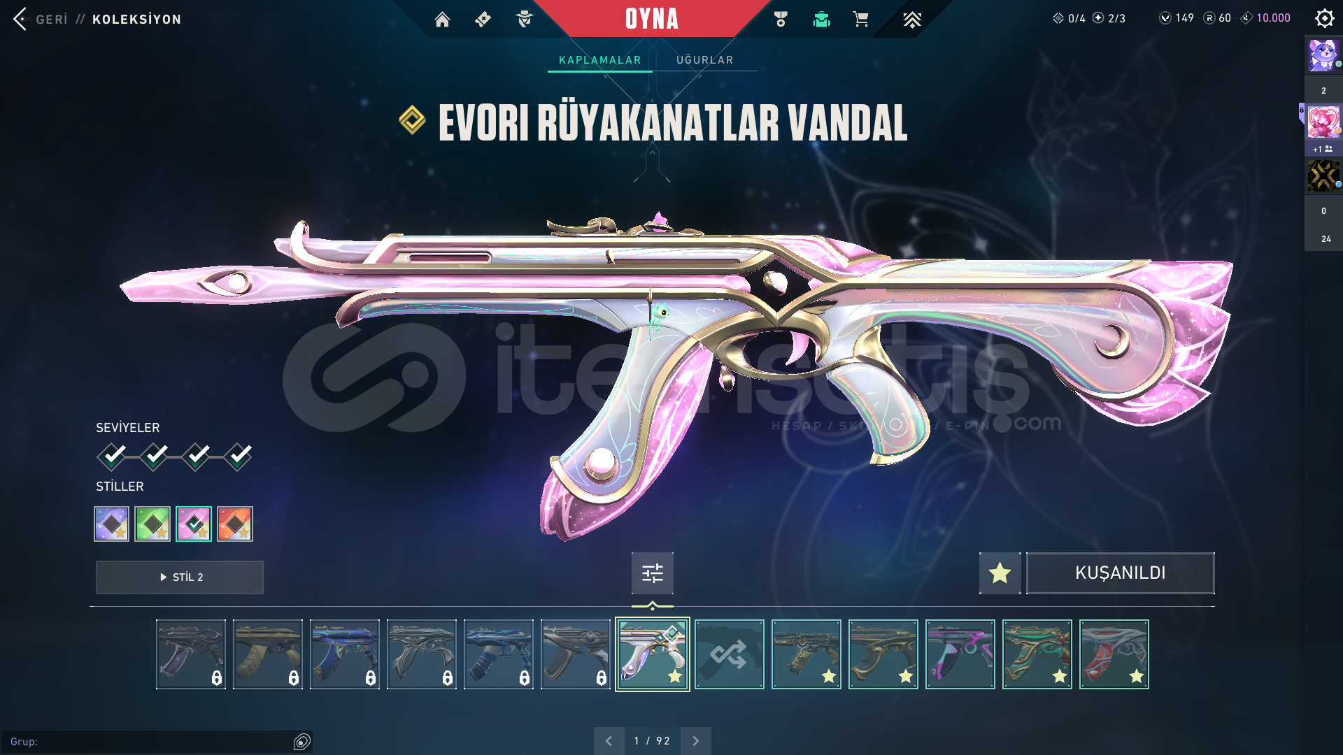 Hesaptaki Önemli Skinler: Evori Dreamwings VandalOverlay DaggerSandswept DaggerImperium VandalChampions 2024 PhantomSentinels of Light OperatorChampions 2024 BladeTransition KnifeBubble Pop Light StickAemondir VandalValiant Hero VandalNeptune VandalGaia's Vengeance VandalGravitational Uranium Neuroblaster OperatorIon SheriffRecon Phantom📌 Teslimat⚡Aktif olmamı beklemenize gerek yok! 7/24 otomatik teslimatla lazım olan tüm bilgilere anında ulaşacaks...