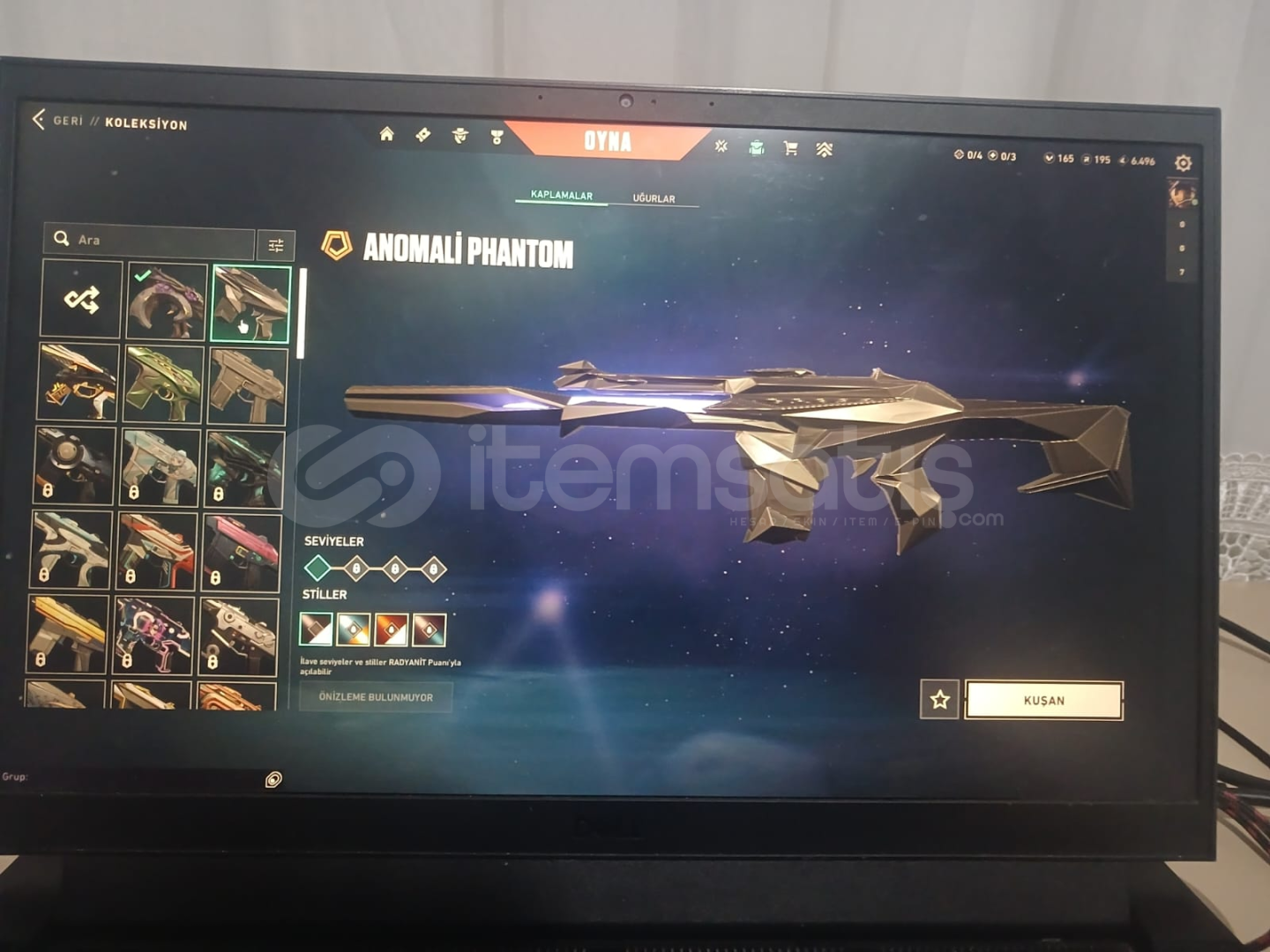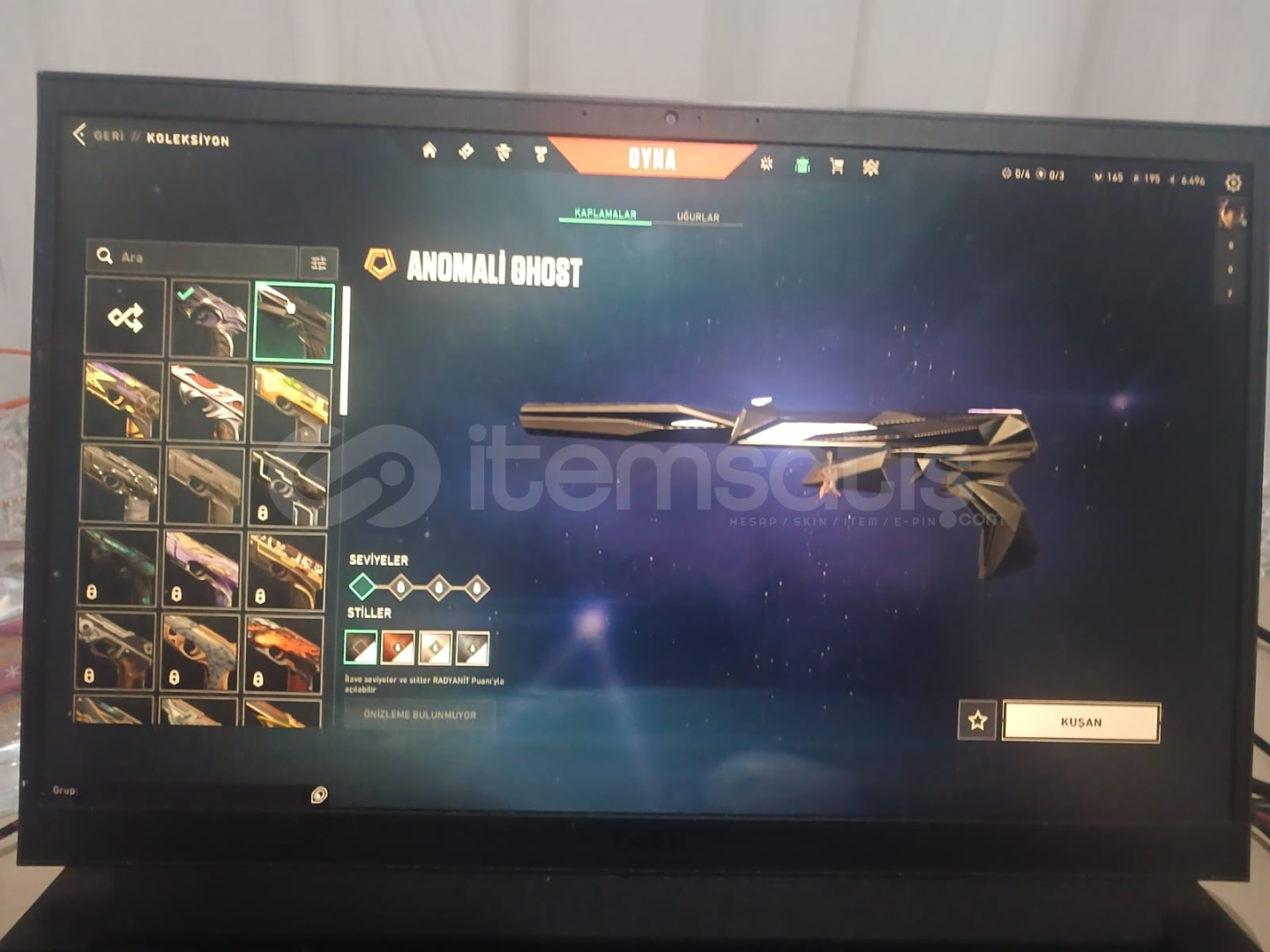 Valorantın sevilen skinleri olan;Asil classicDelipop vandalKaos vandalAnonali vandalÖzel harekat kelebekAnomali kelebekAnomali ghostYağmacı ghostAnomali phantomZifir phantomChampions 2024 phantomAnomali spectreAnomali şerifBulunmaktadır.Peek rank dia3