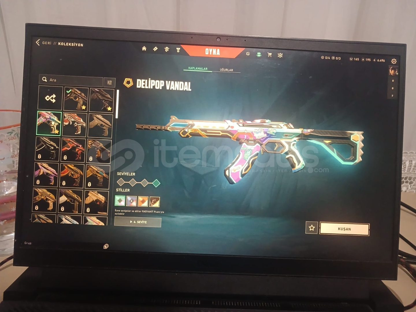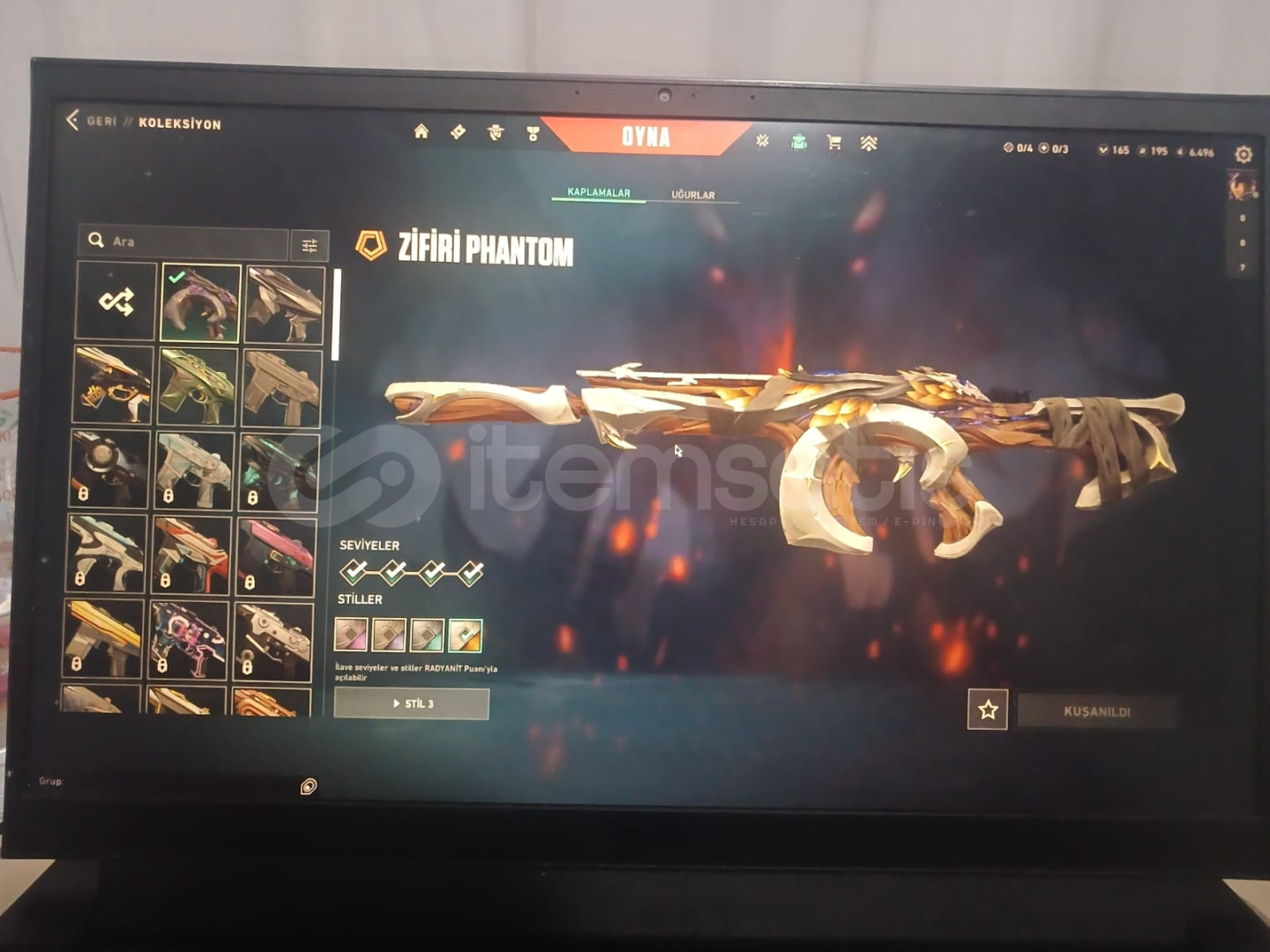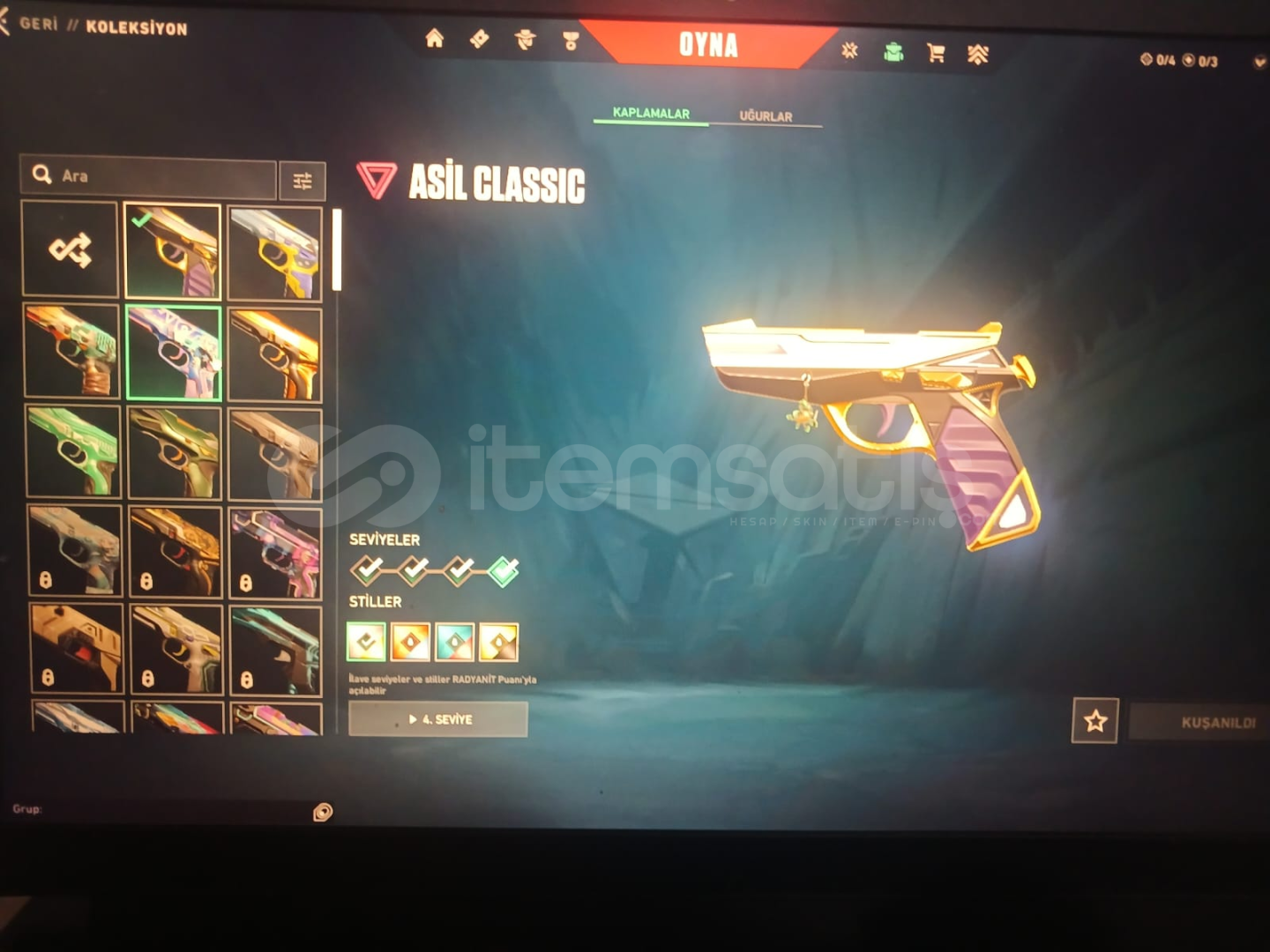 Valorantın sevilen skinleri olan;Asil classicDelipop vandalKaos vandalAnonali vandalÖzel harekat kelebekAnomali kelebekAnomali ghostYağmacı ghostAnomali phantomZifir phantomChampions 2024 phantomAnomali spectreAnomali şerifBulunmaktadır.Peek rank dia3